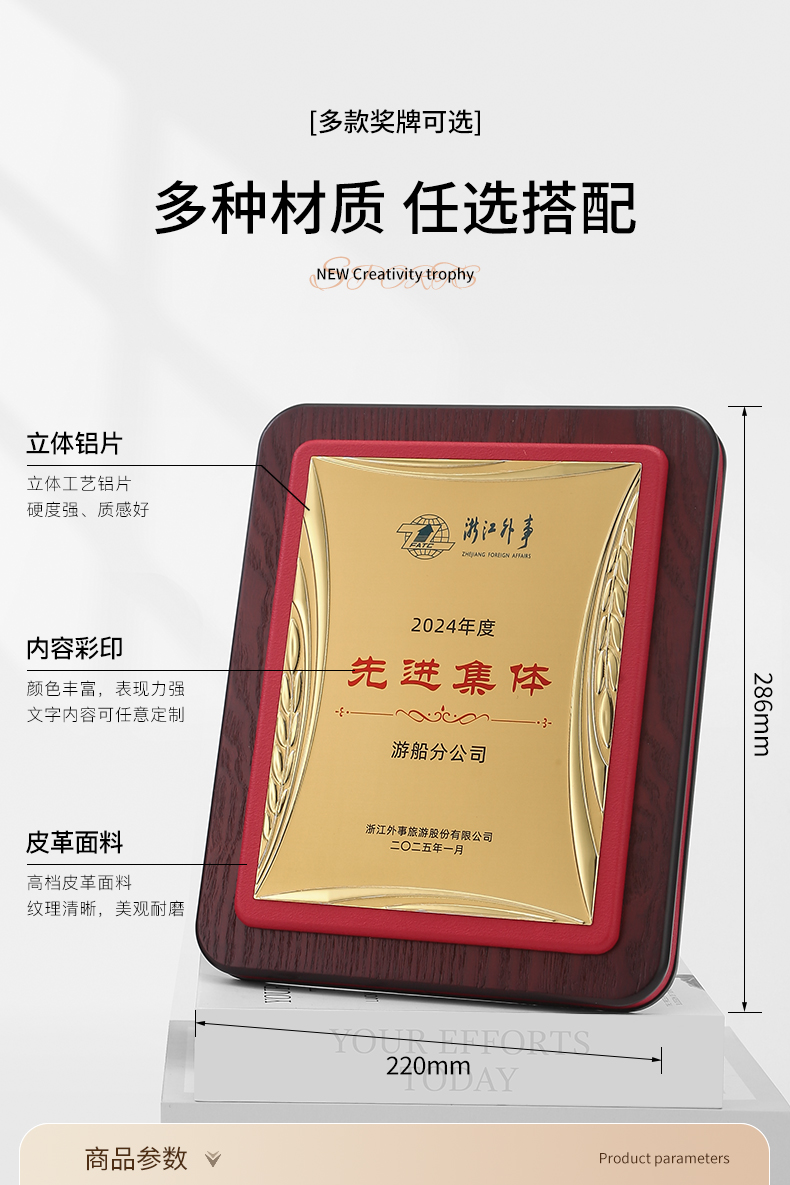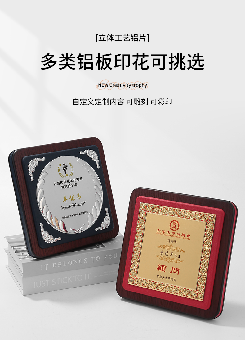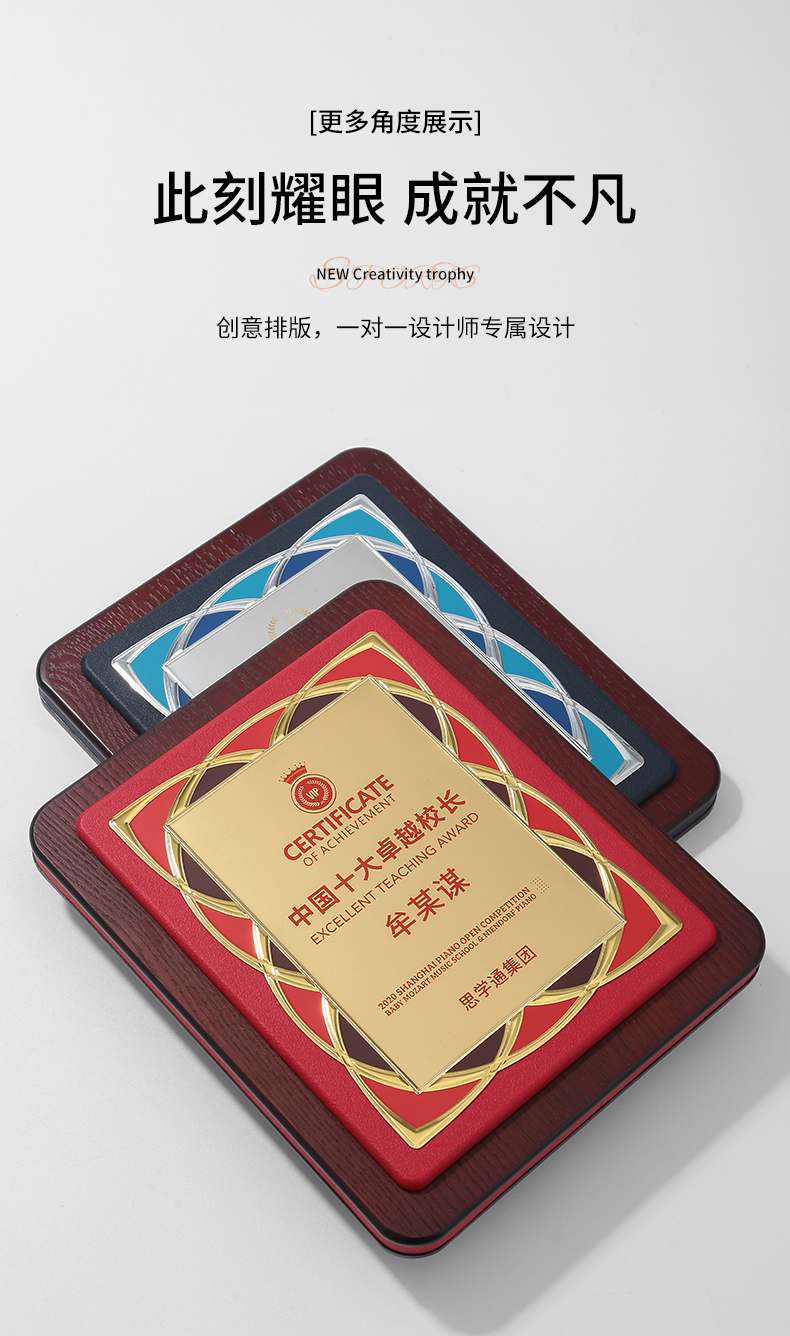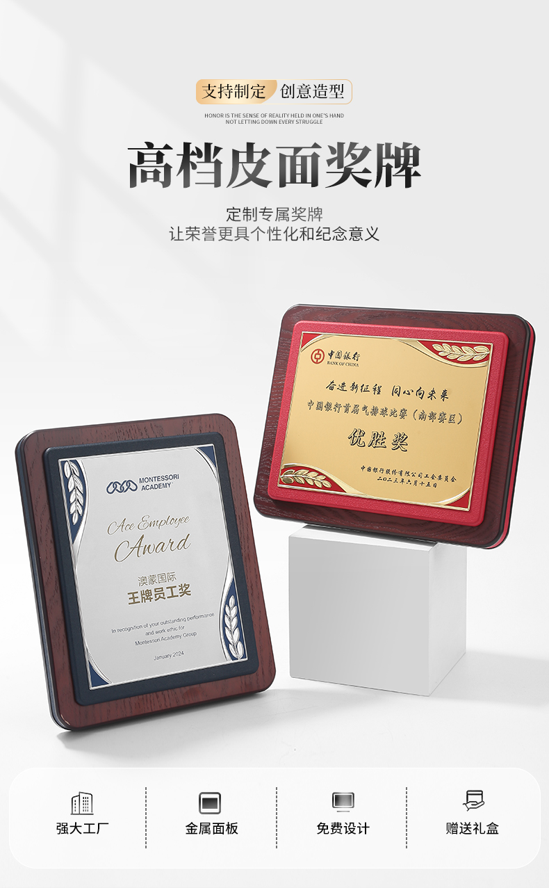 605 / 皮面高档奖牌定制定做授权牌荣誉牌匾定做铜牌实木质代理商金箔授权牌定制