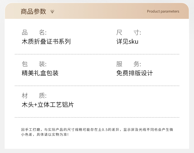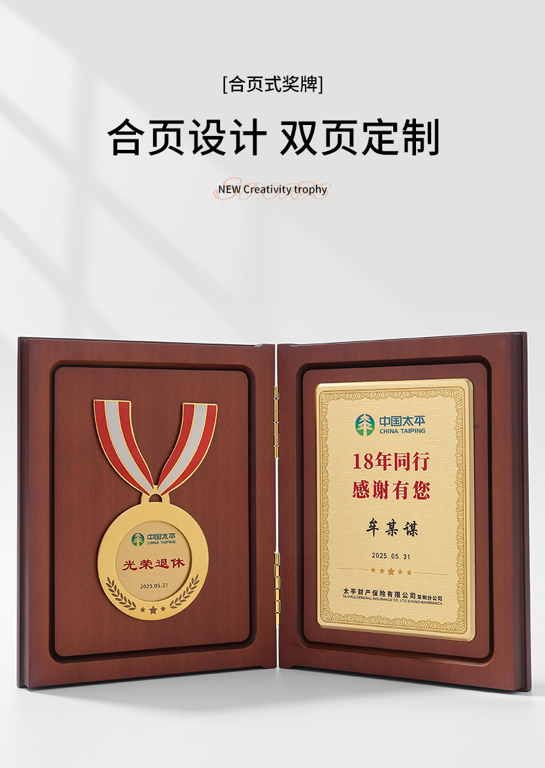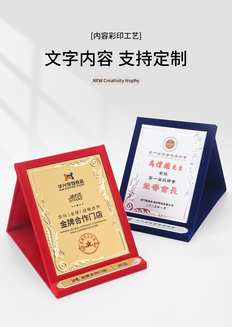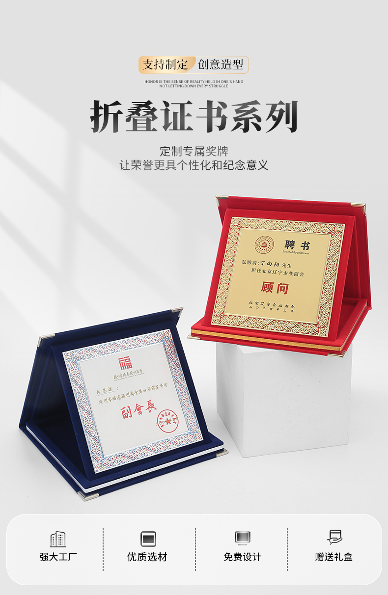 610 / 企业员工荣誉证书定制定做高档聘书授权牌制作折叠盒装奖牌订制