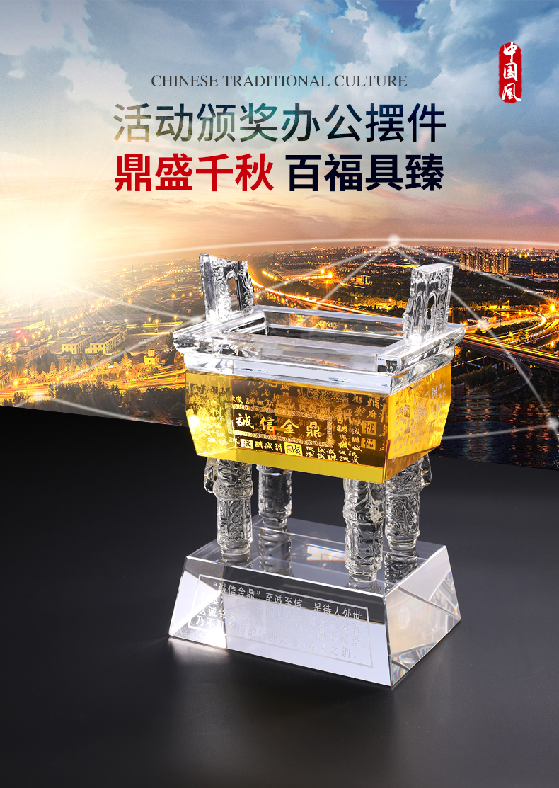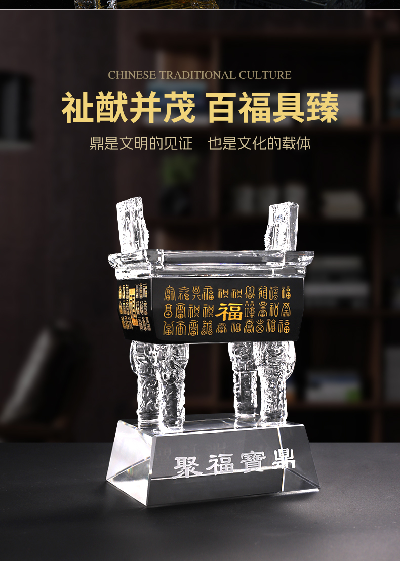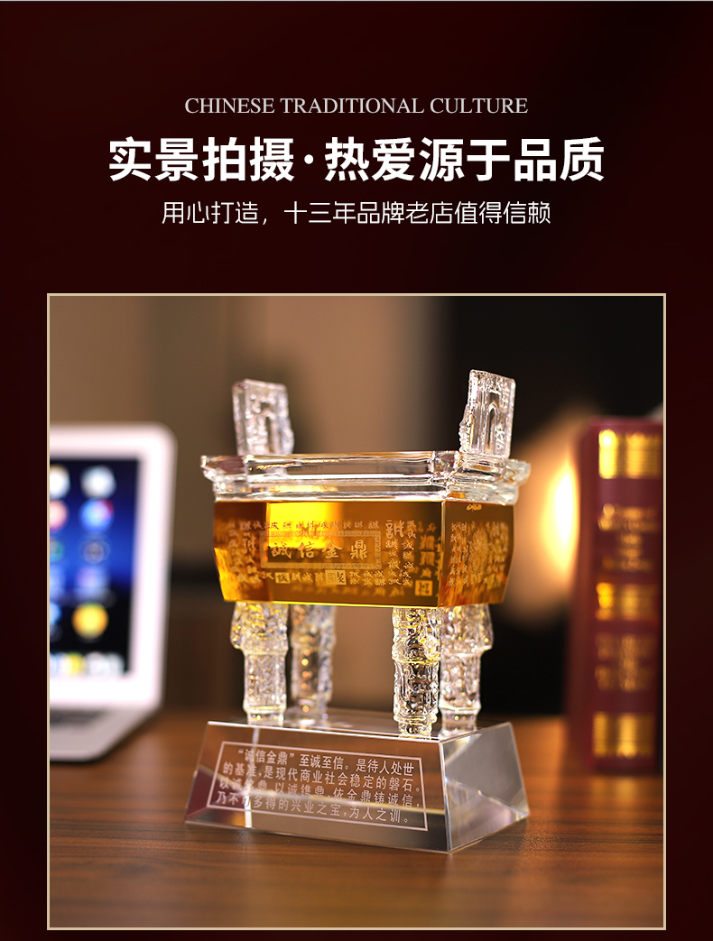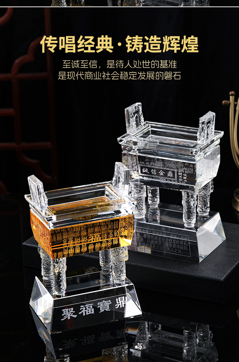 901 / 【水晶鼎】办公室桌面玄关招财装饰摆件开业礼品送公司纪念品工艺定制