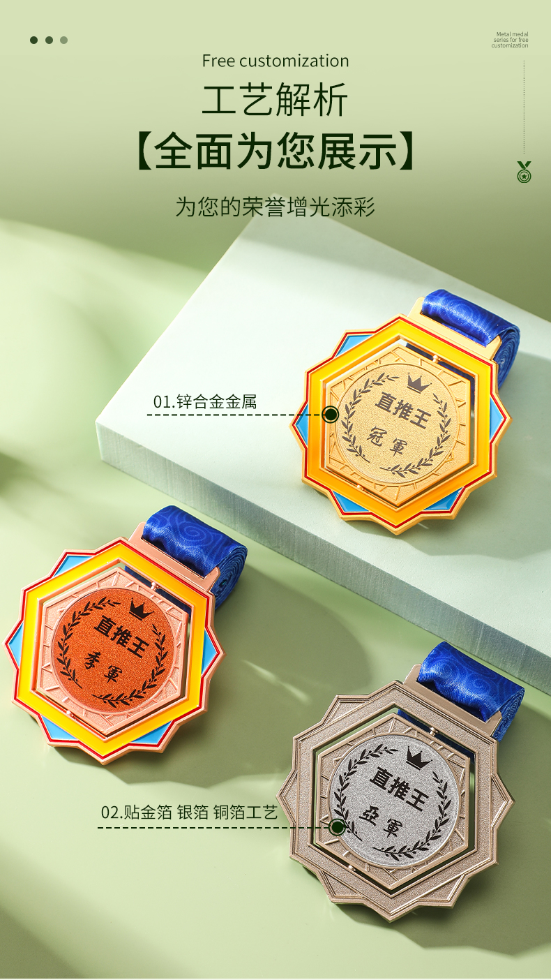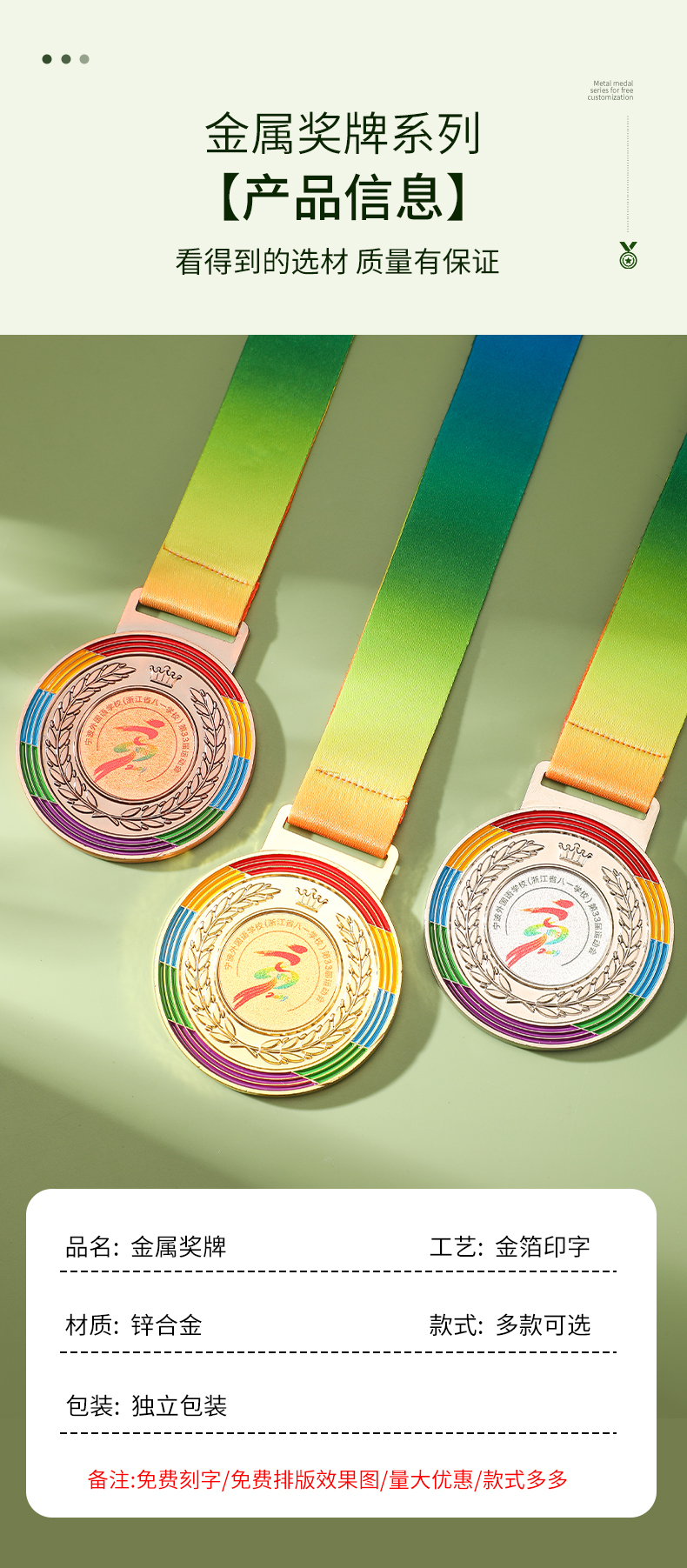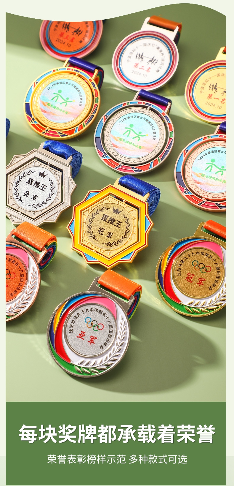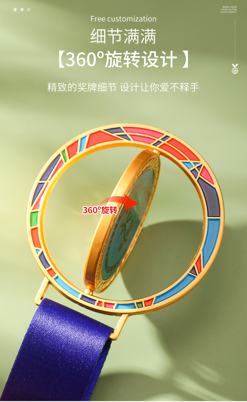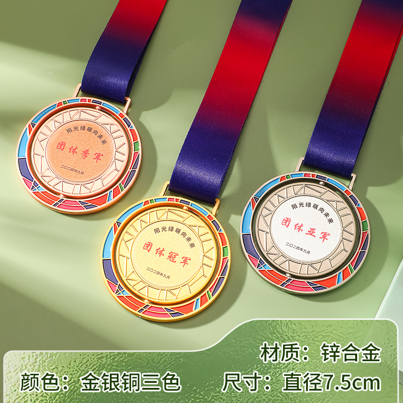 642 / 水晶金属旋转奖牌定制定做运动会马拉松篮球比赛儿童冠军荣誉挂牌