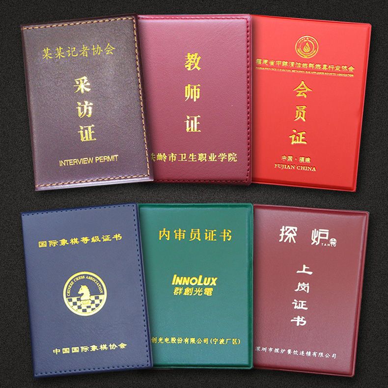 745 / 定制职业培训合格证书保护套现货包邮内芯A5A4纸热压烫金证书皮套定制