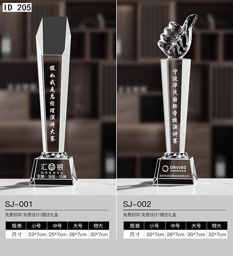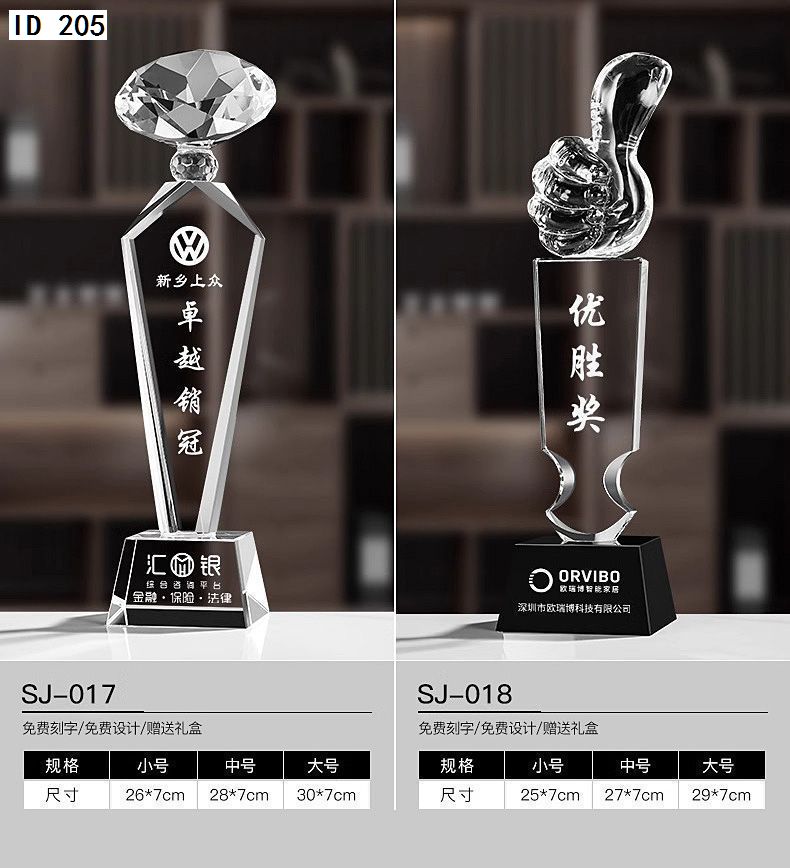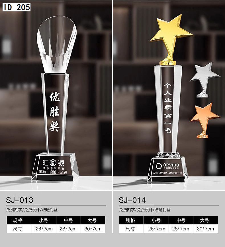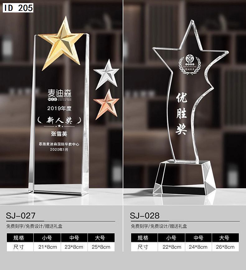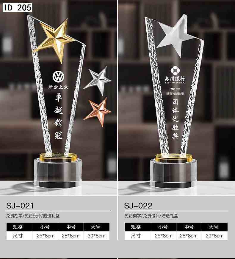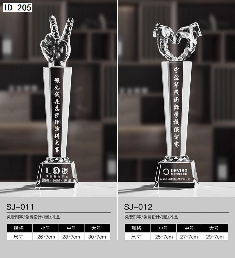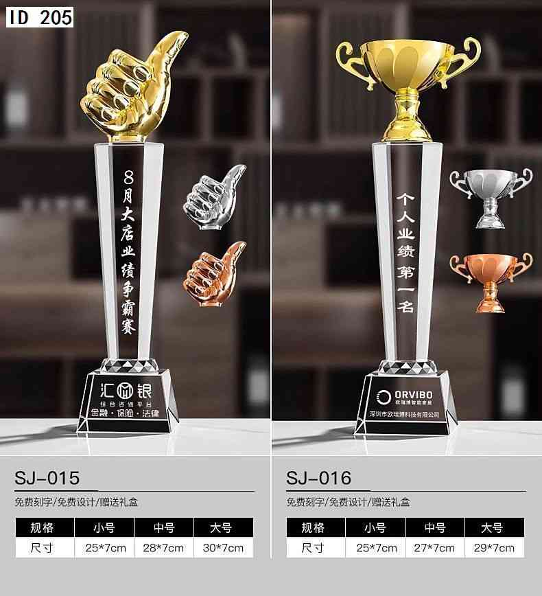 152 / 水晶奖杯创意定制做作大拇指奖牌刻字五角星颁奖企业公司活动纪念