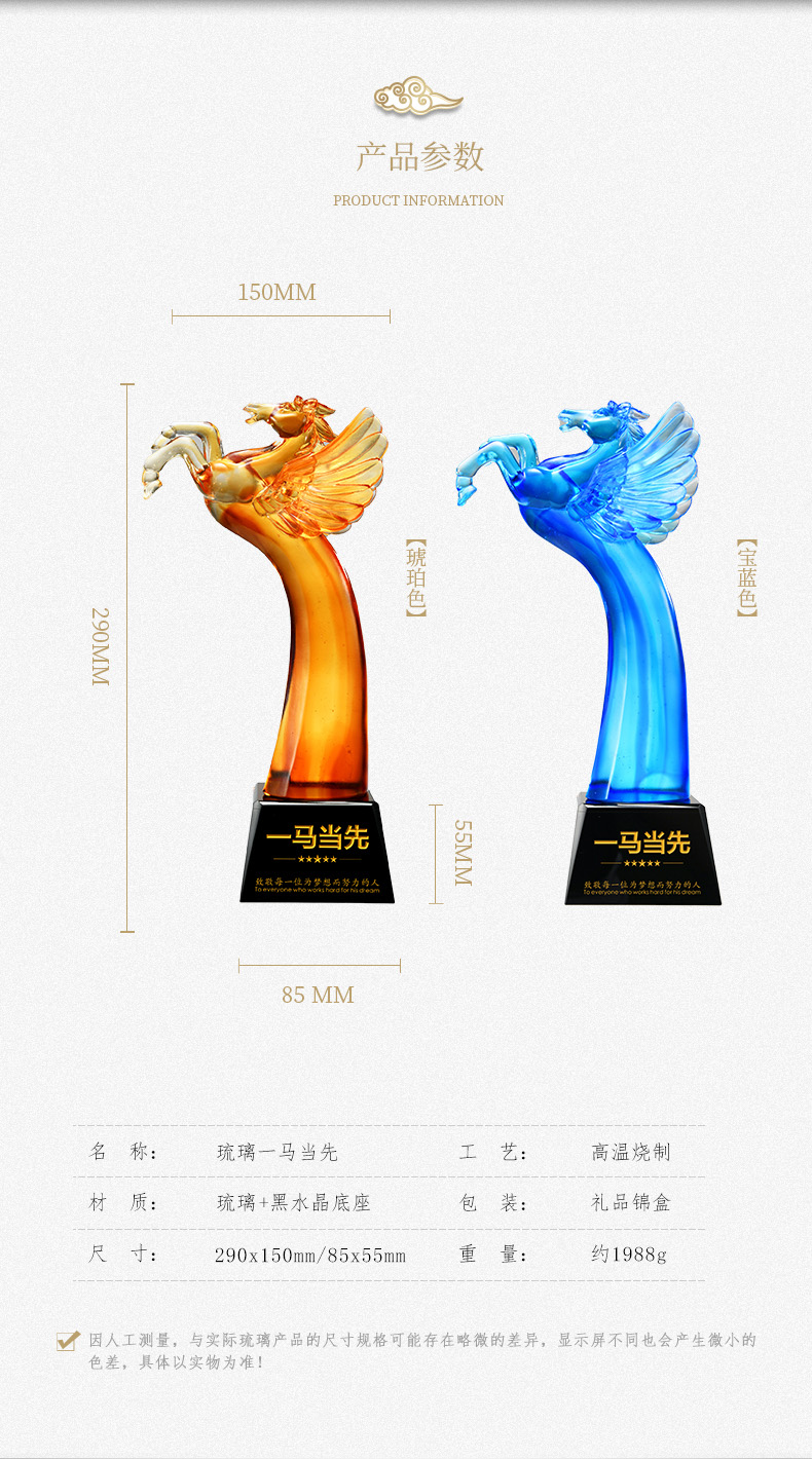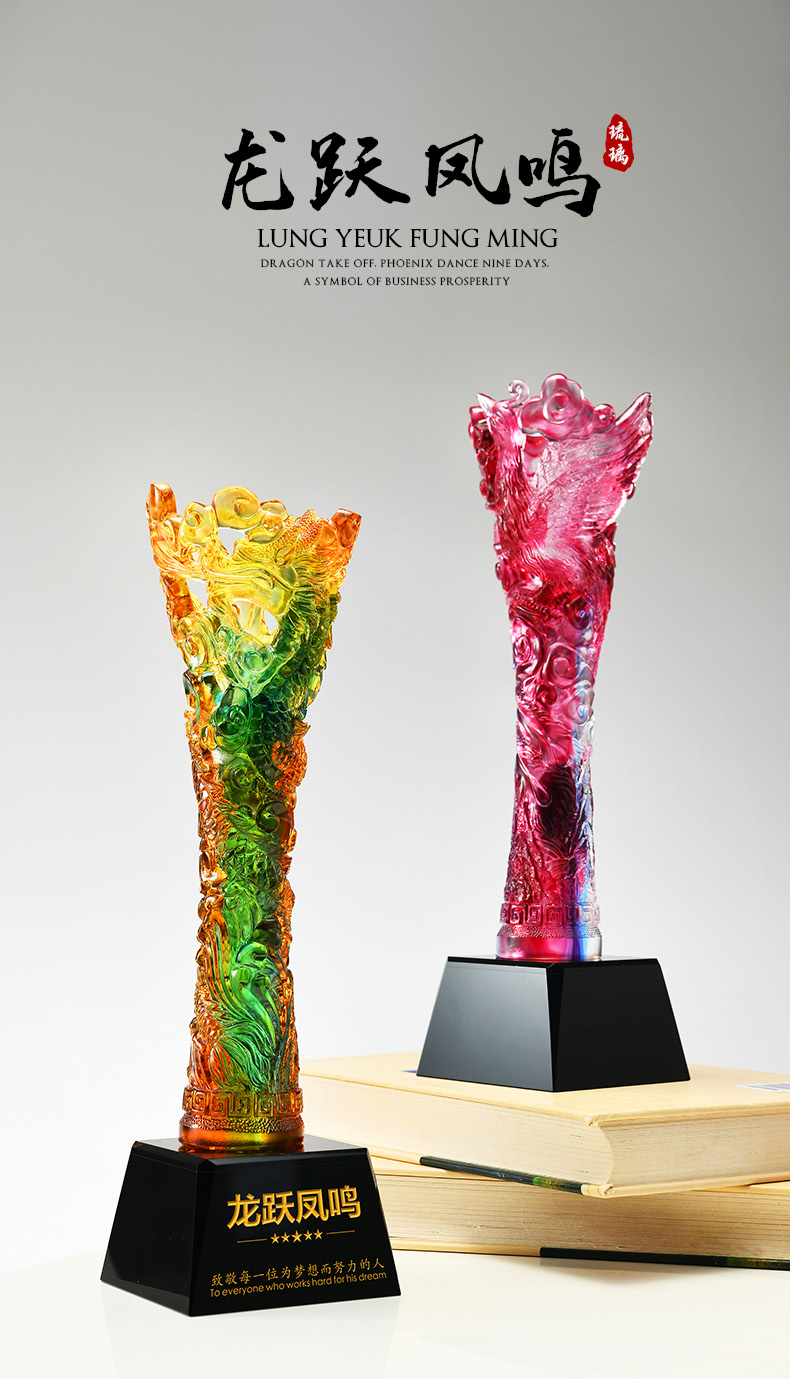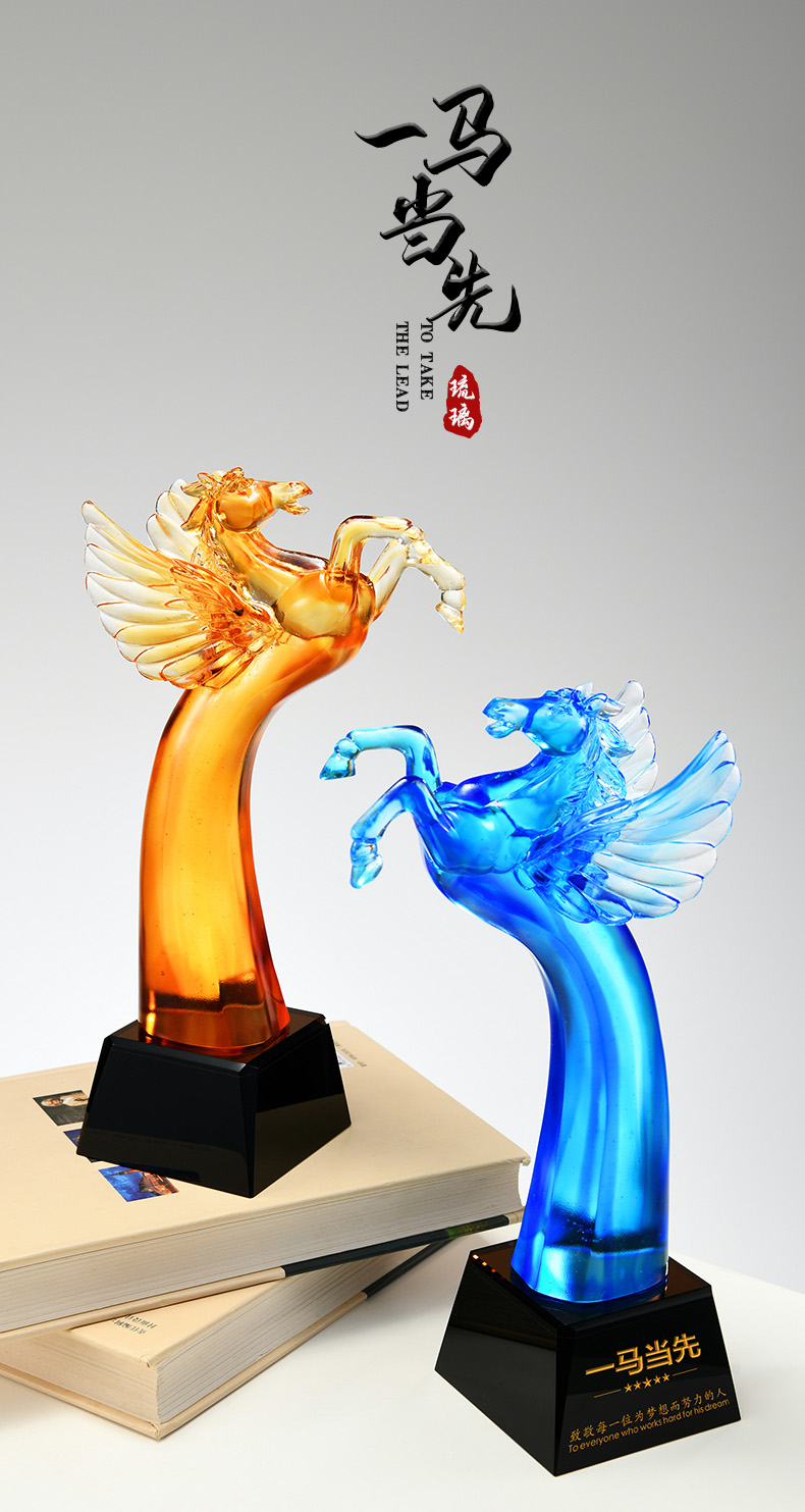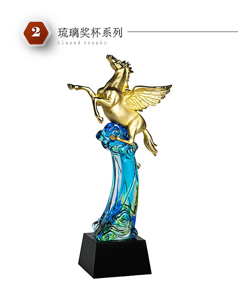 464 / 琉璃奖杯定制高档大气龙马狮子老鹰活动高端颁奖纪念礼品刻字定做