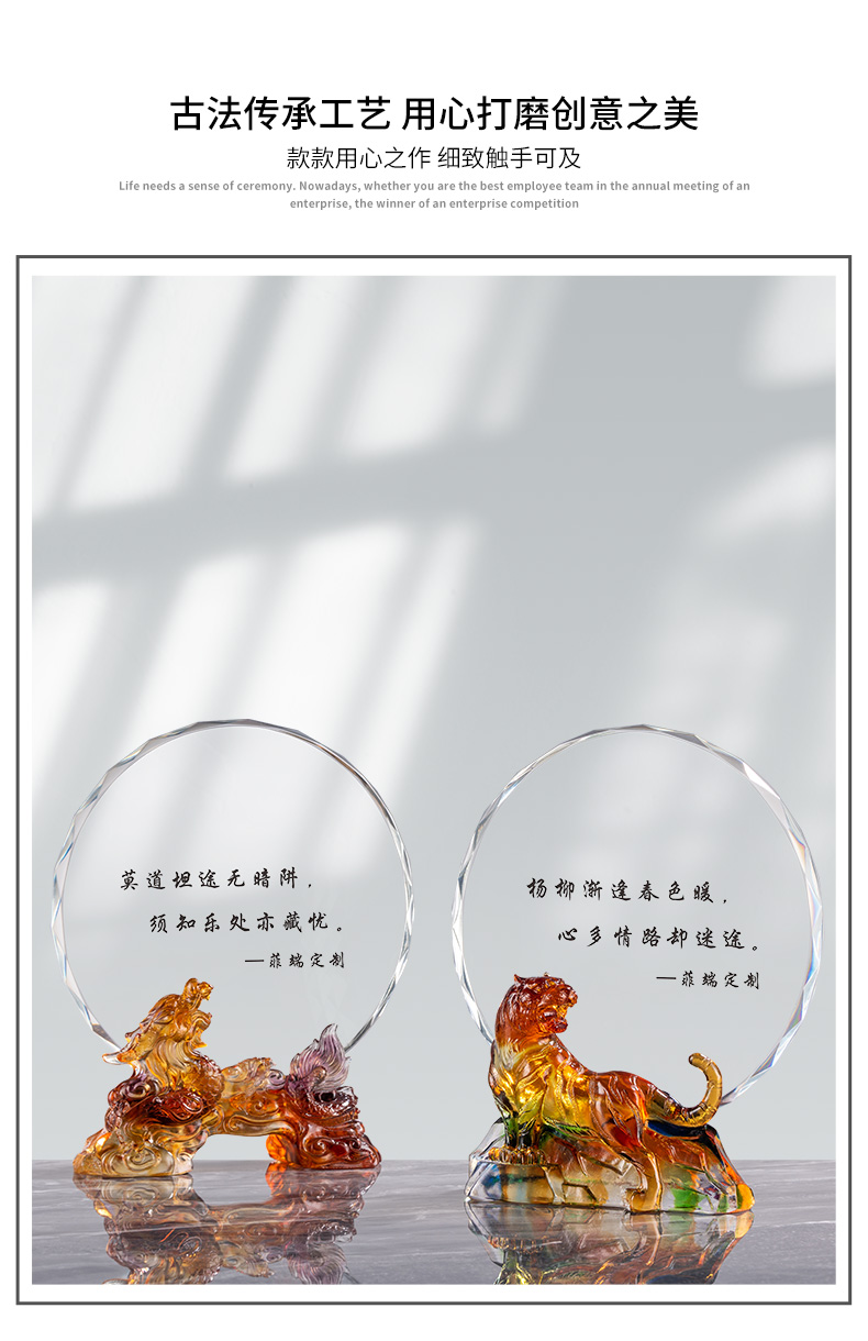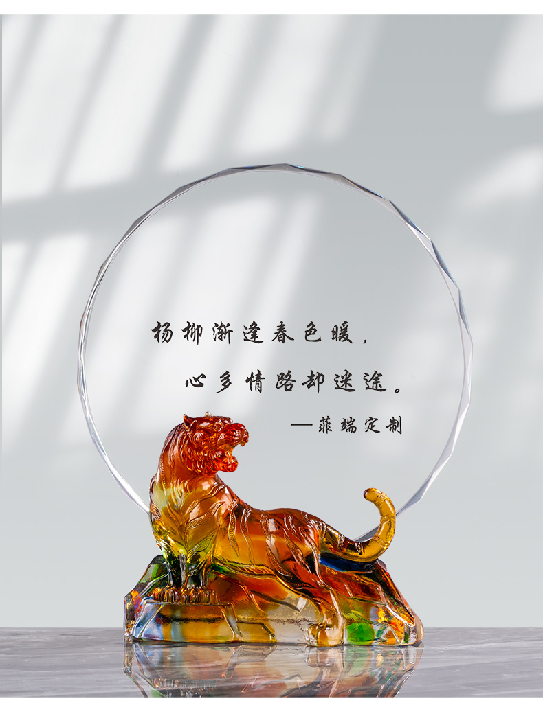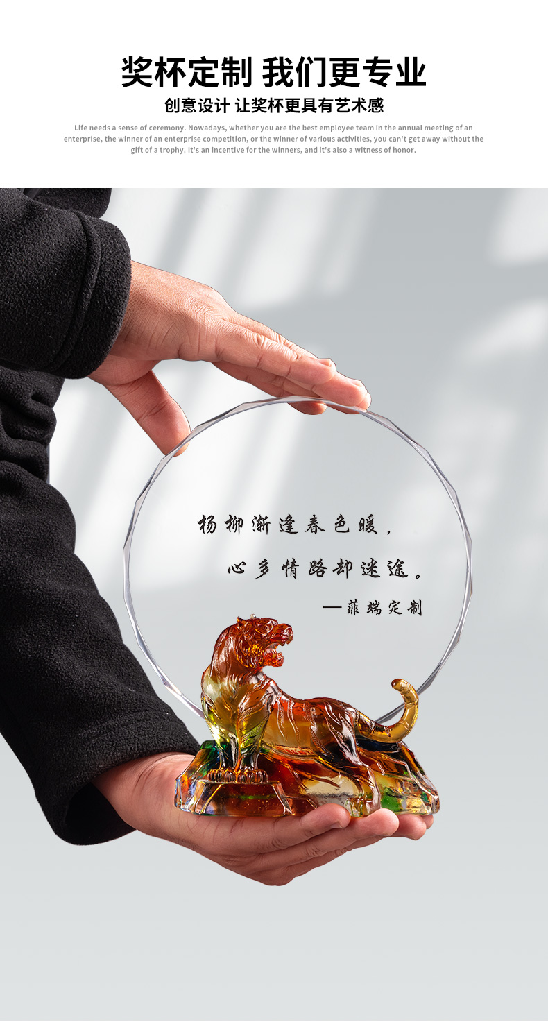 1047 / 新款虎年琉璃奖杯定制创意十二生肖水晶奖牌年会员工奖杯定做