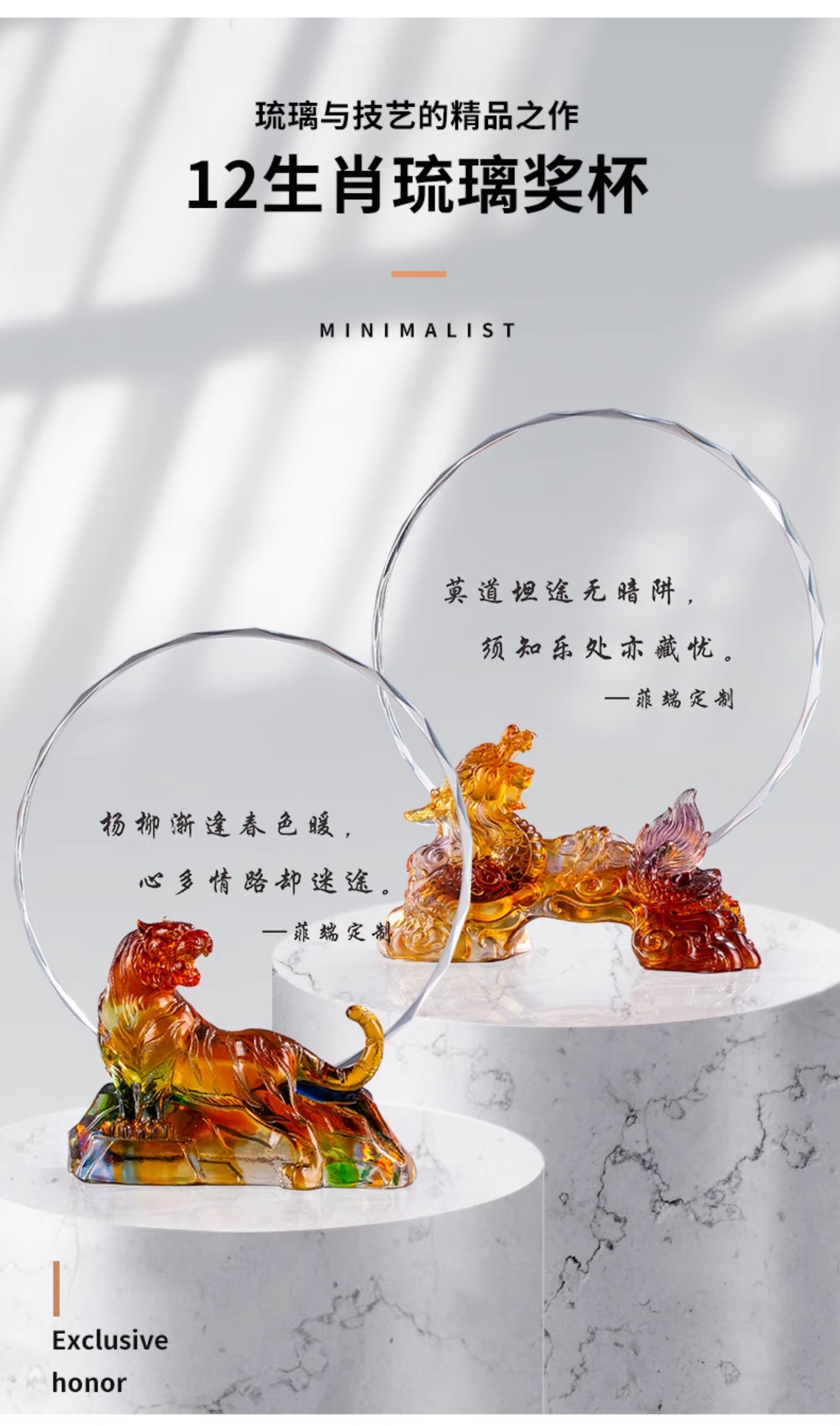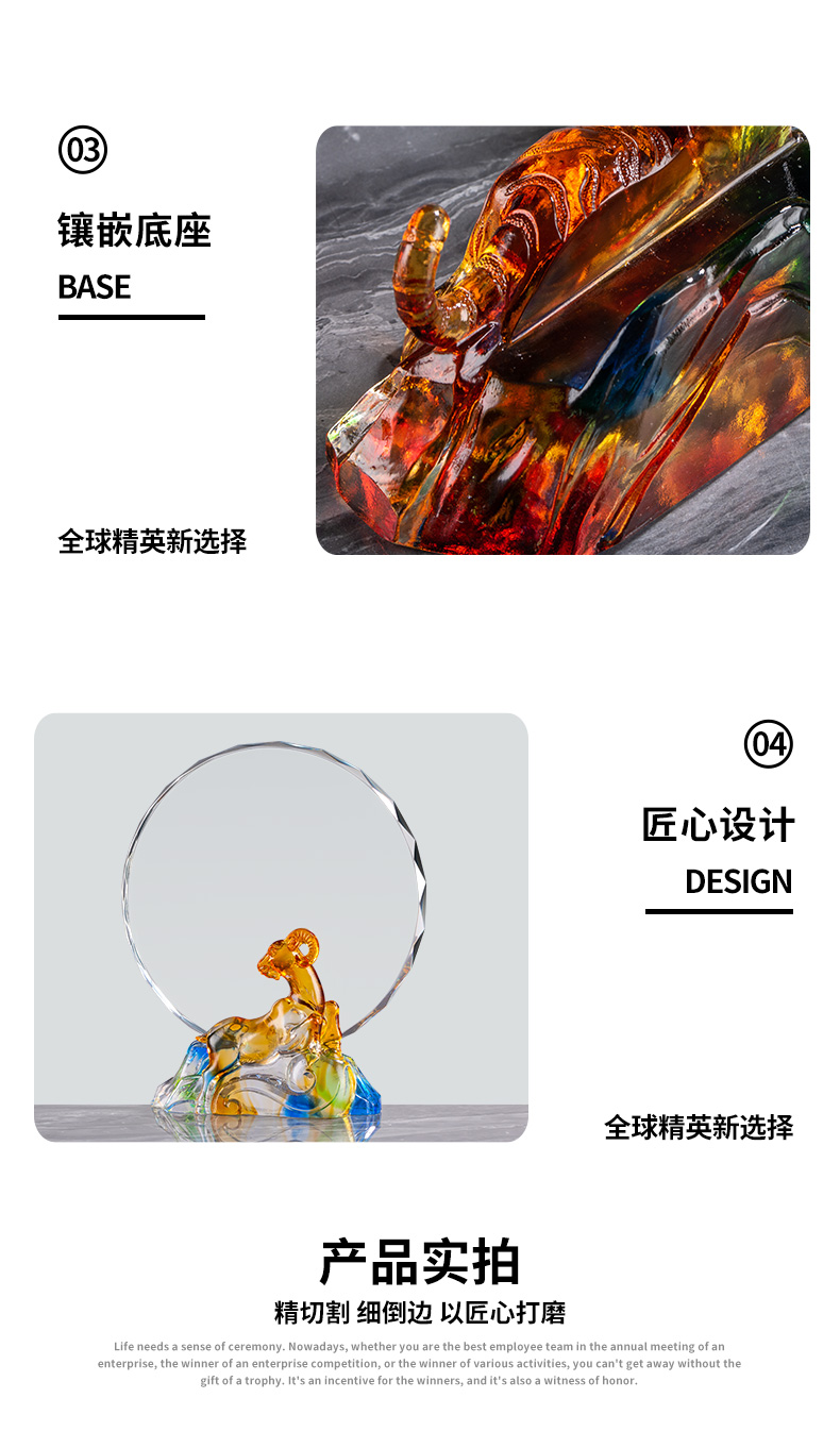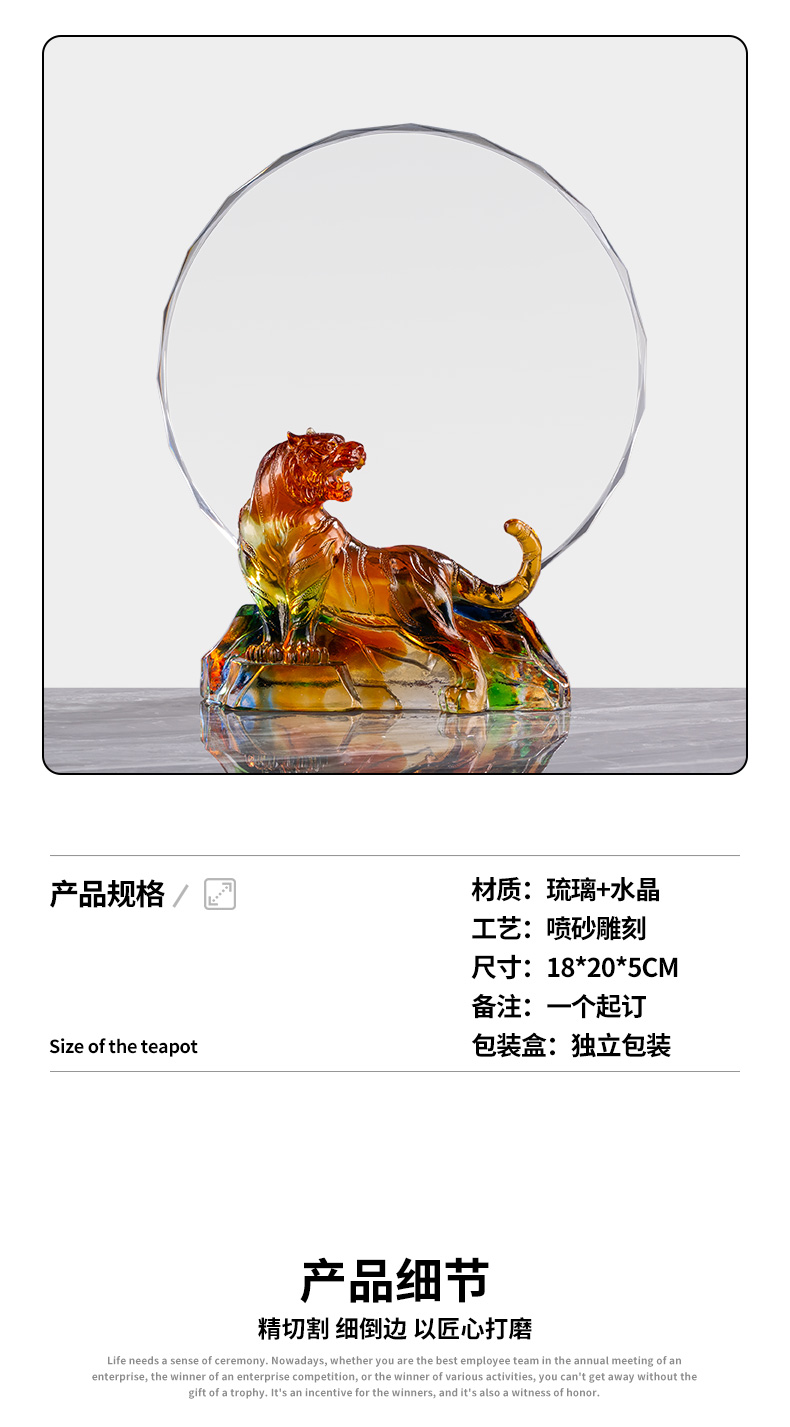 1047 / 新款虎年琉璃奖杯定制创意十二生肖水晶奖牌年会员工奖杯定做
