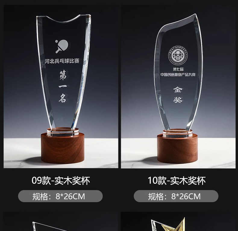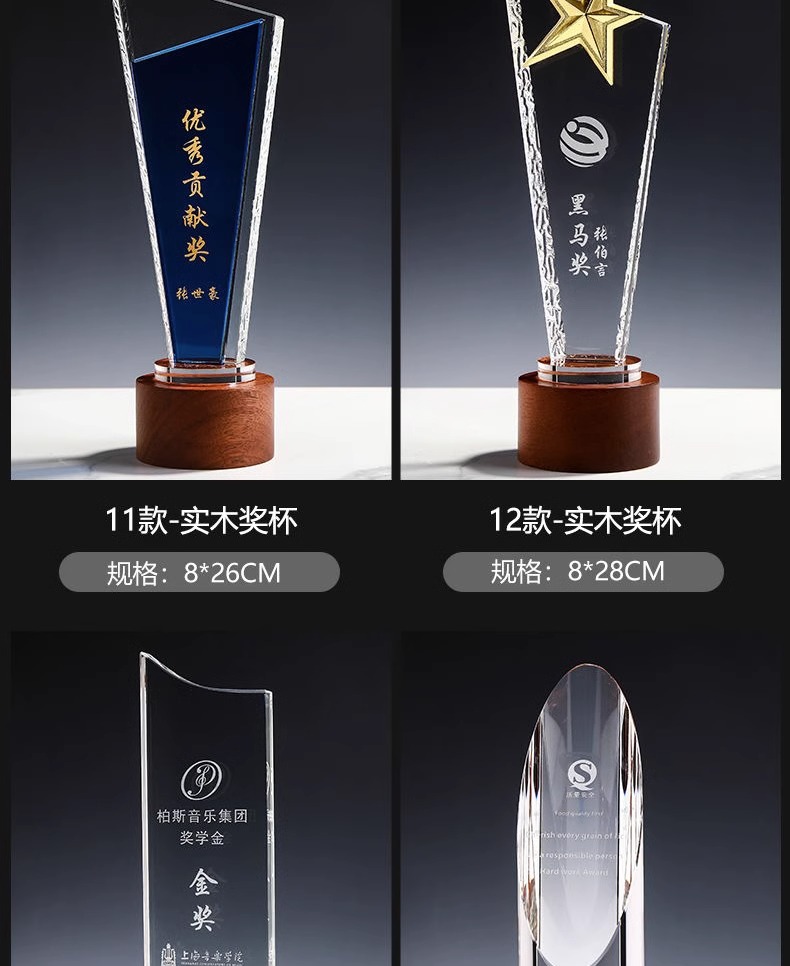 134 / 创意水晶奖杯定制定做实木奖牌优秀员工公司年会荣誉颁奖比赛冠军