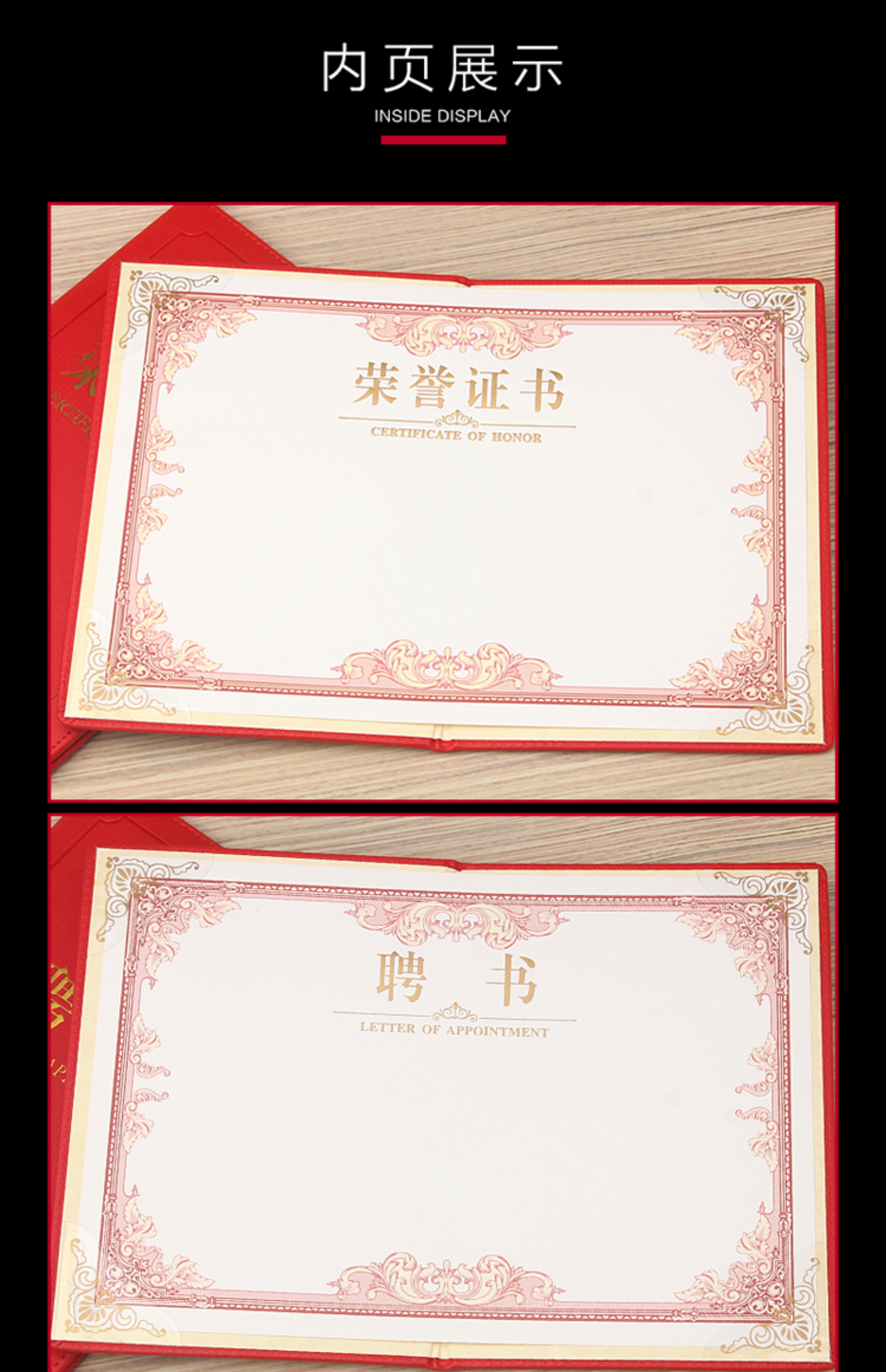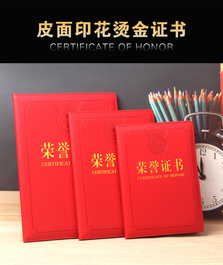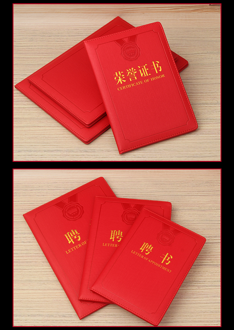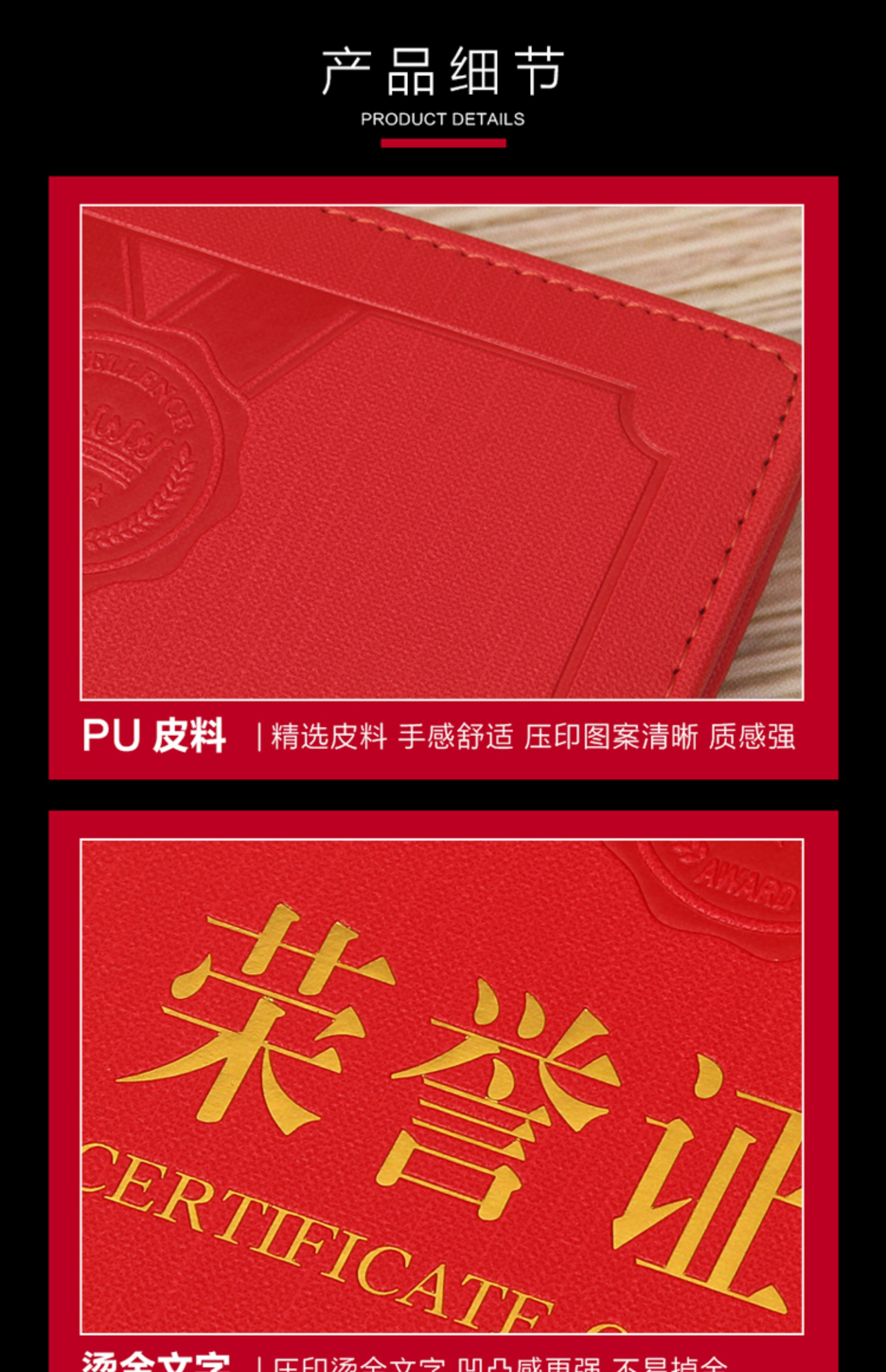 1050 / 皮革面红蓝色A4荣誉证书定制员工颁奖证书得奖获奖状聘书外壳定做