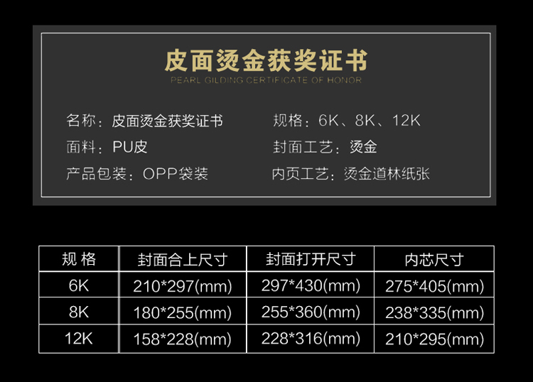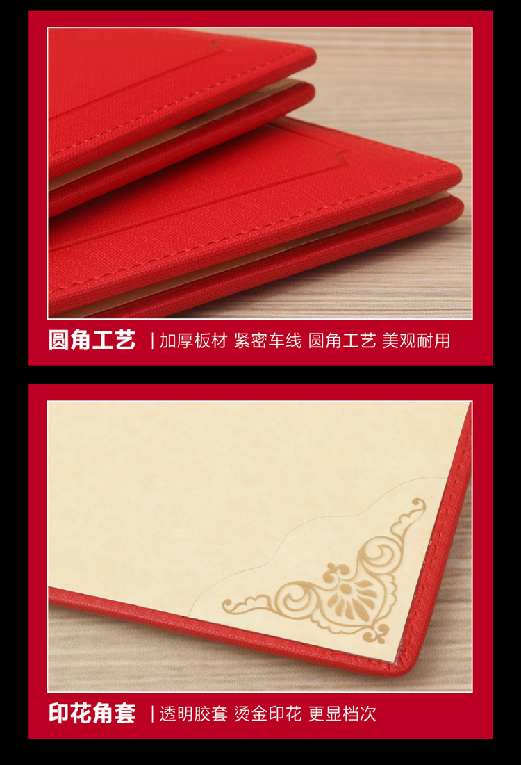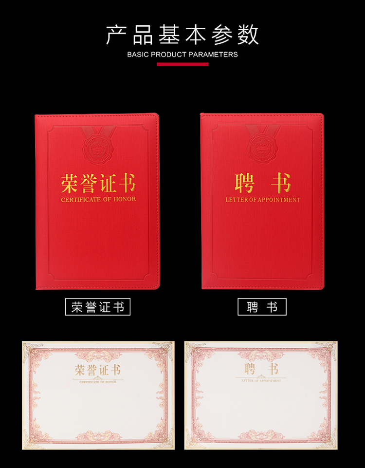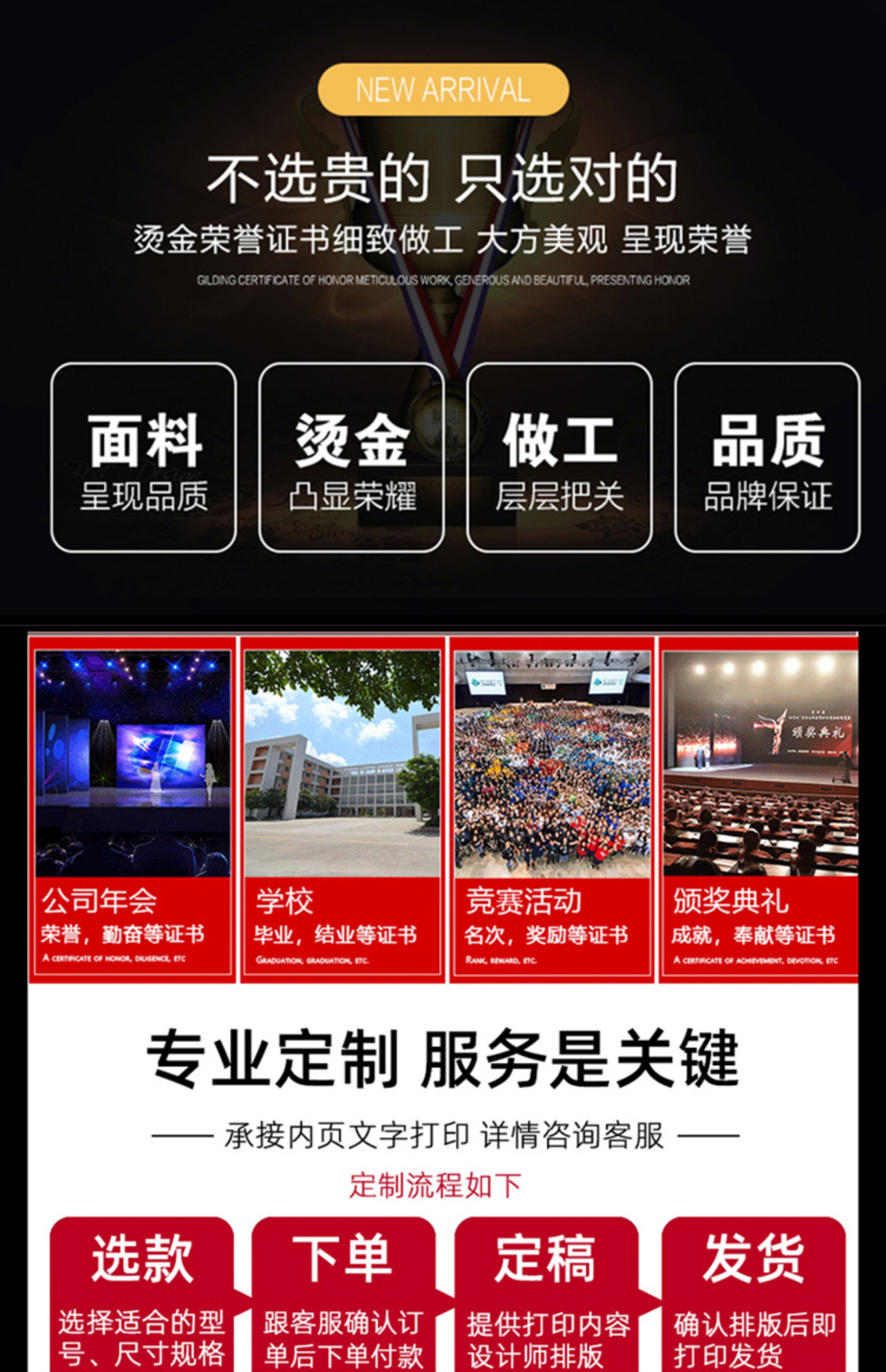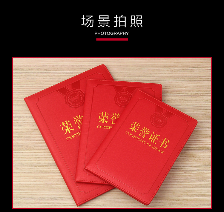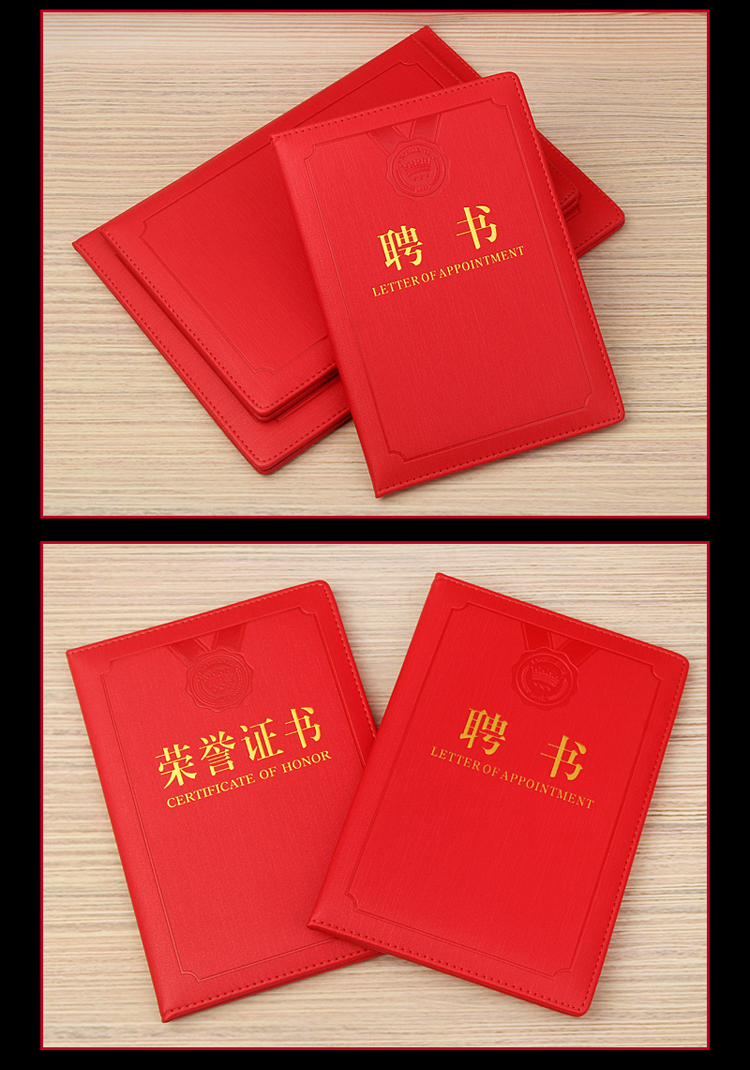 1050 / 皮革面红蓝色A4荣誉证书定制员工颁奖证书得奖获奖状聘书外壳定做