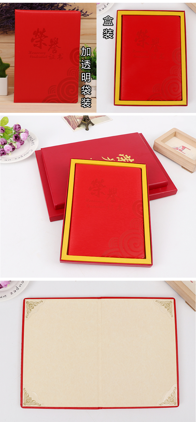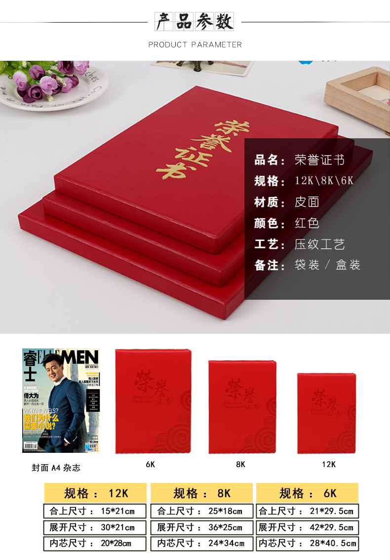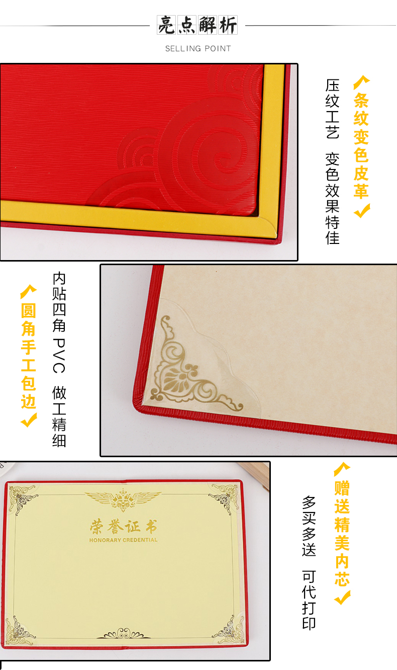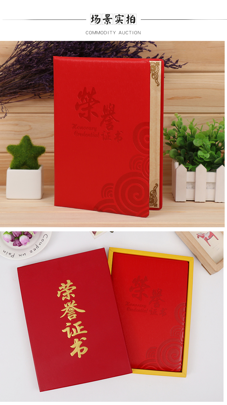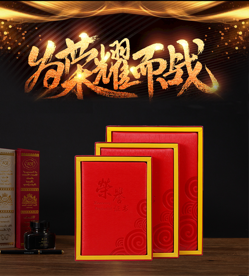 1052 / 皮革荣誉证书送内芯纸表彰优秀主管部门获奖先进员工个人单位定制