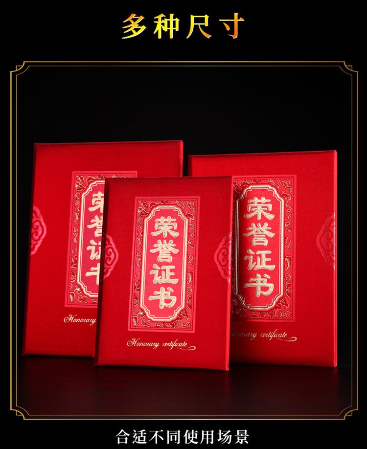 1061 / 荣誉证书金葱磨砂硬本烫金红色面12K/8K/6K皮革获奖颁奖证书竖字
