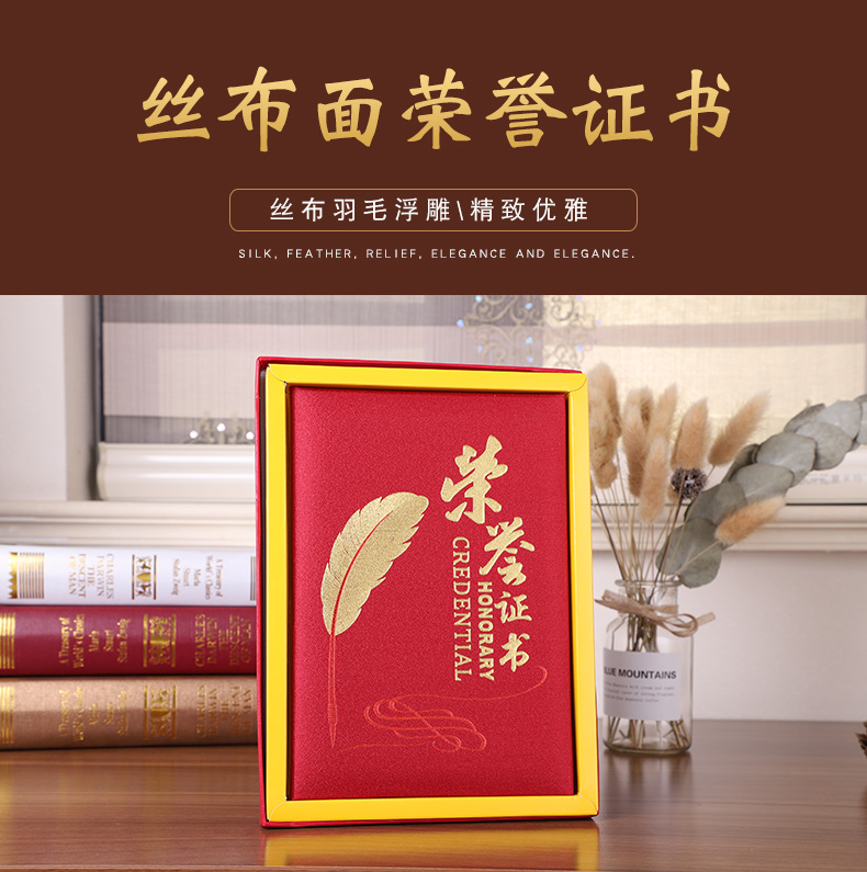 1067 / 丝布面荣誉证书外壳内页定做证书封皮烫金定制证书书皮奖状纸荣誉打印制作颁奖证书优秀员工得奖获奖证书包邮