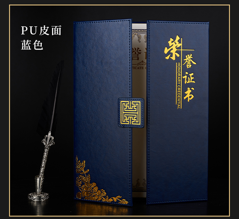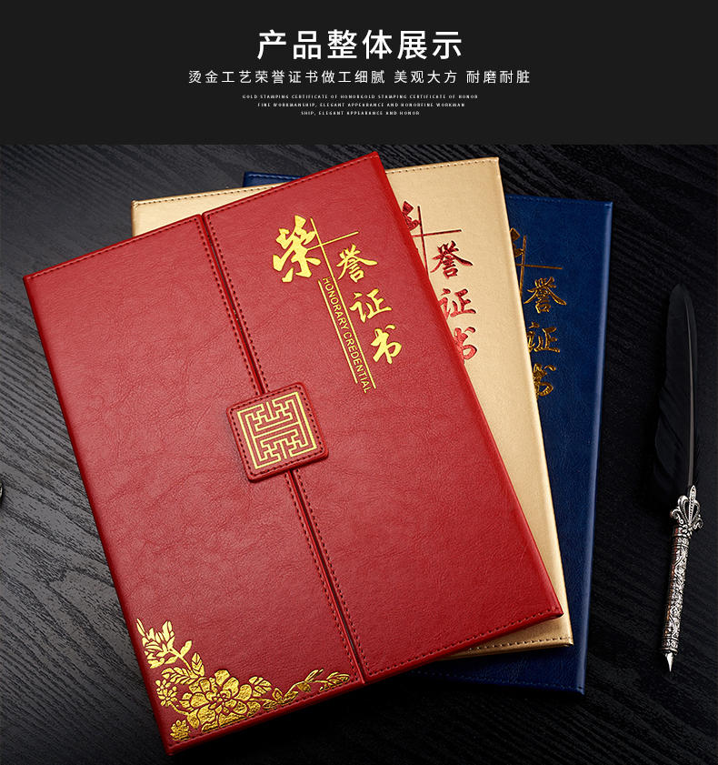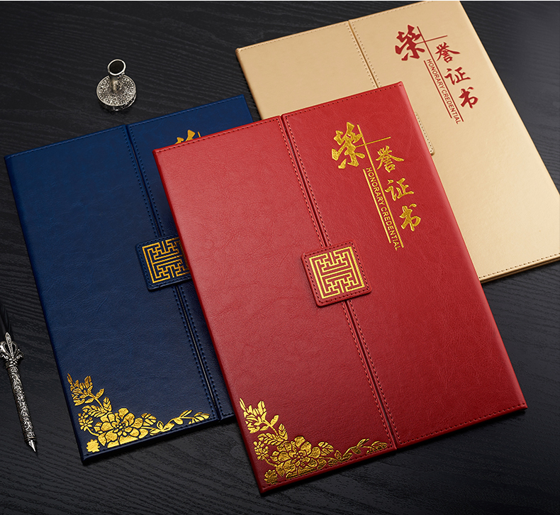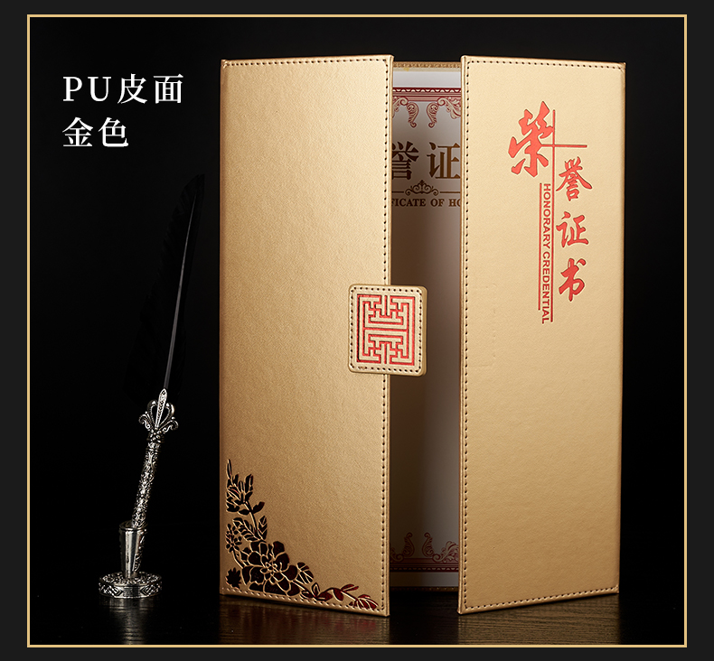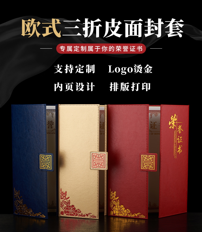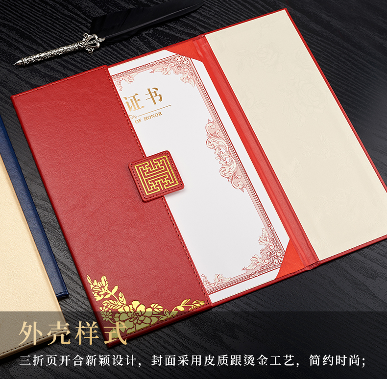 1071 / 折叠式皮面荣誉证书a4三折证书皮革证书优秀员工外壳奖状仿皮内页