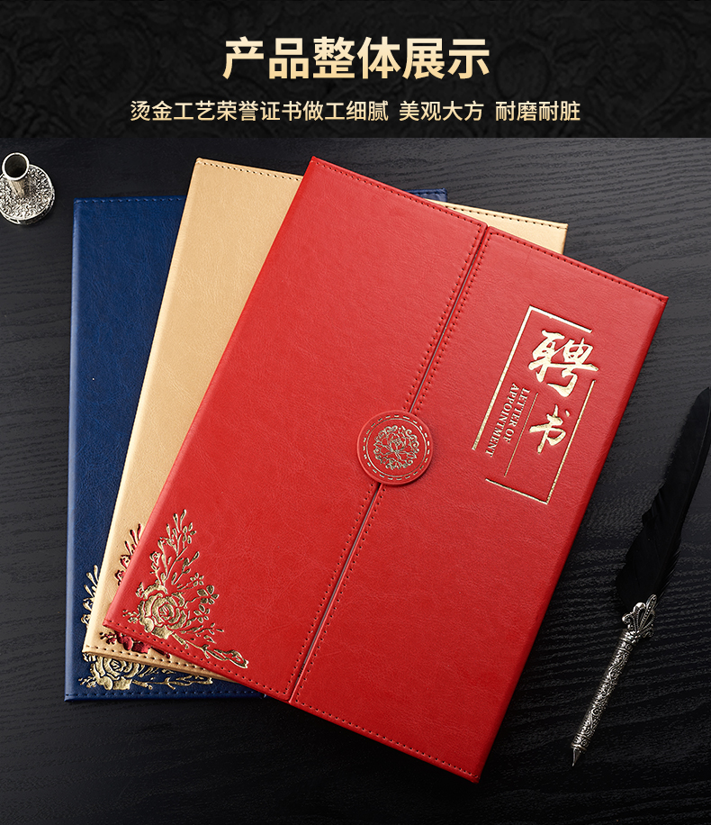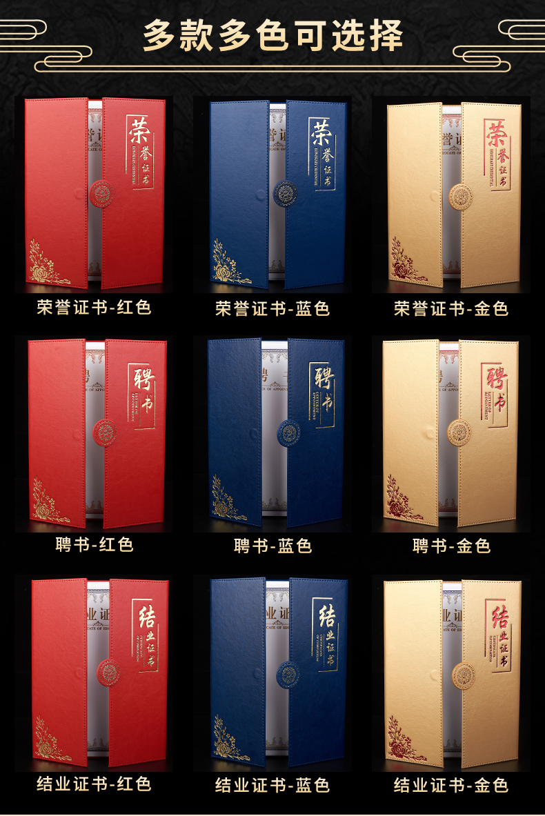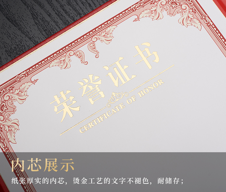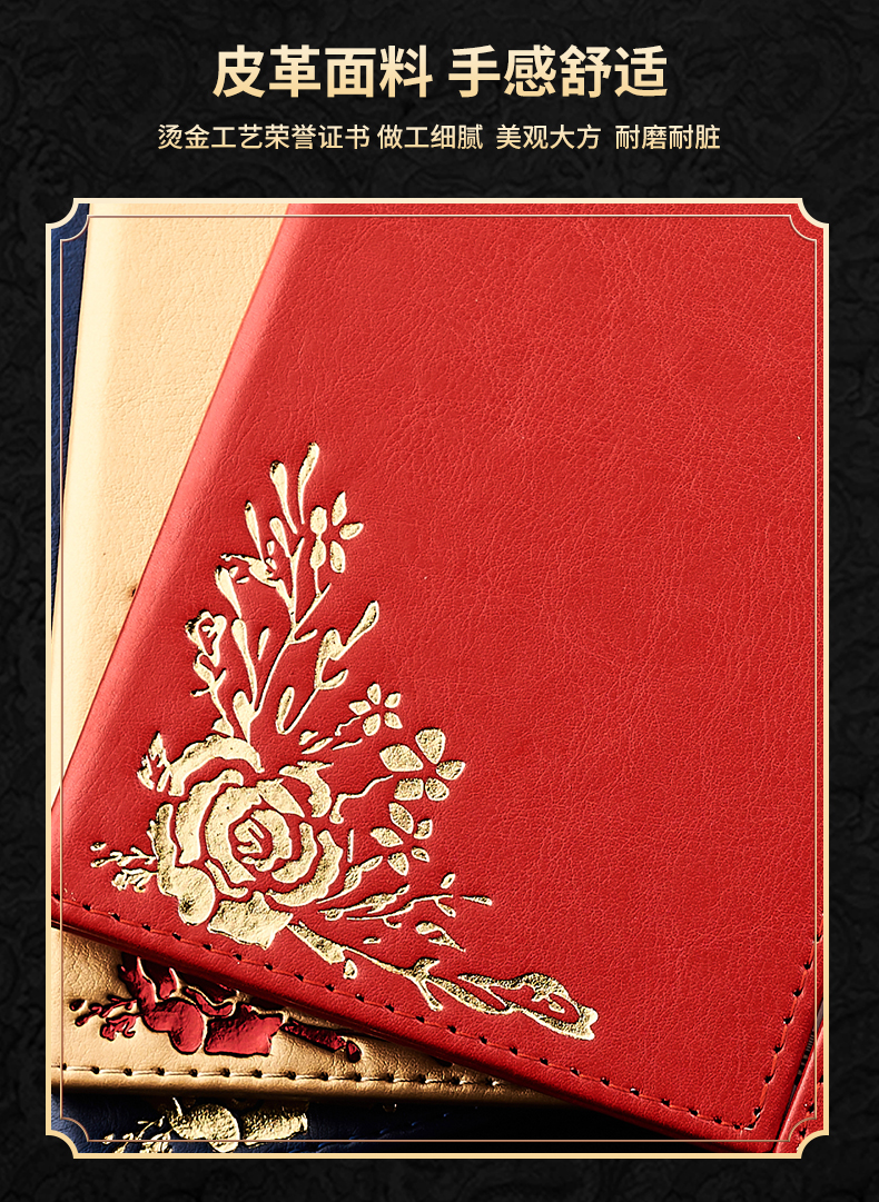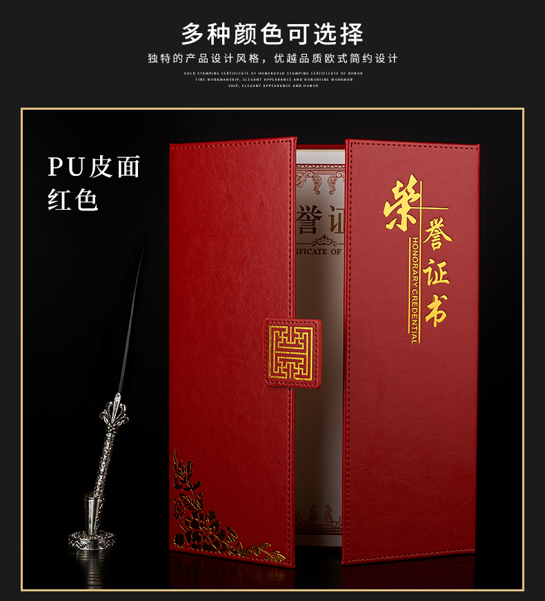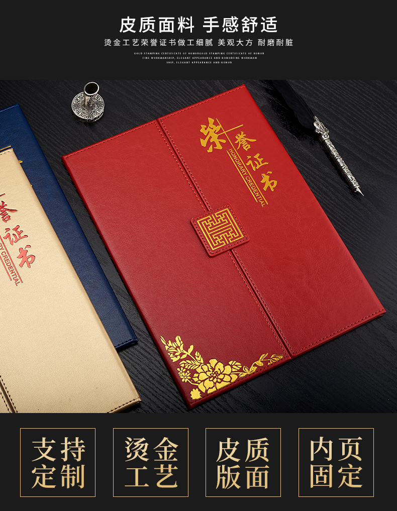 1071 / 折叠式皮面荣誉证书a4三折证书皮革证书优秀员工外壳奖状仿皮内页