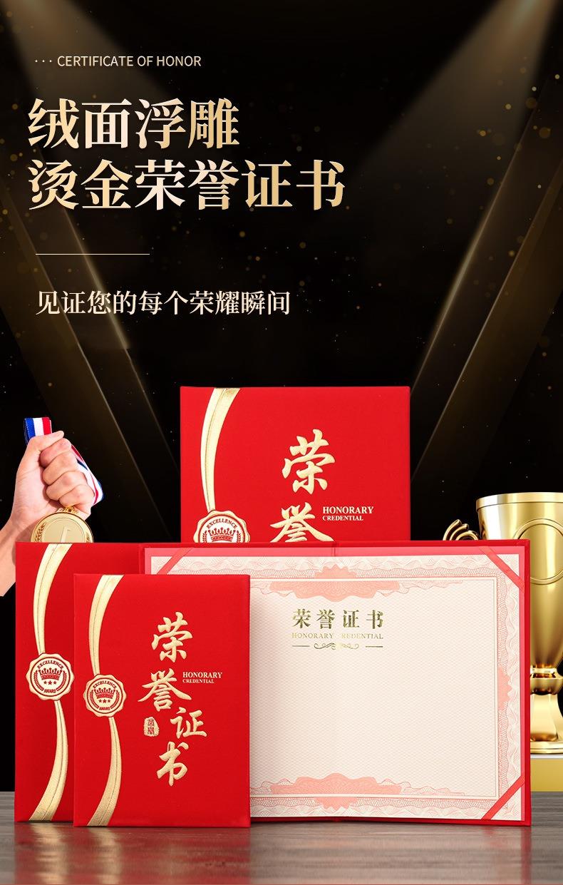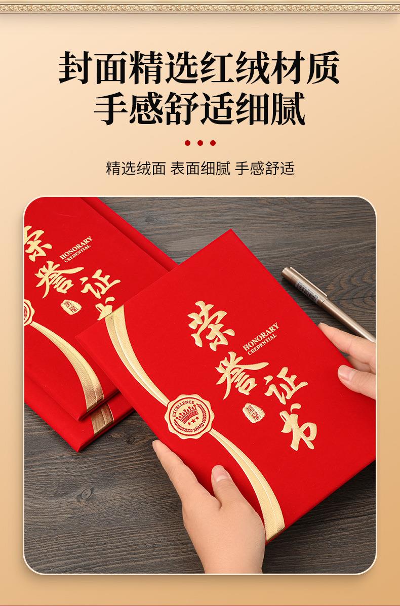 1072 / 高档荣誉证书志愿者荣誉证书证件书封面外壳封皮内芯打印企业优秀员工表扬信绒面录取通知聘书获奖荣誉证书