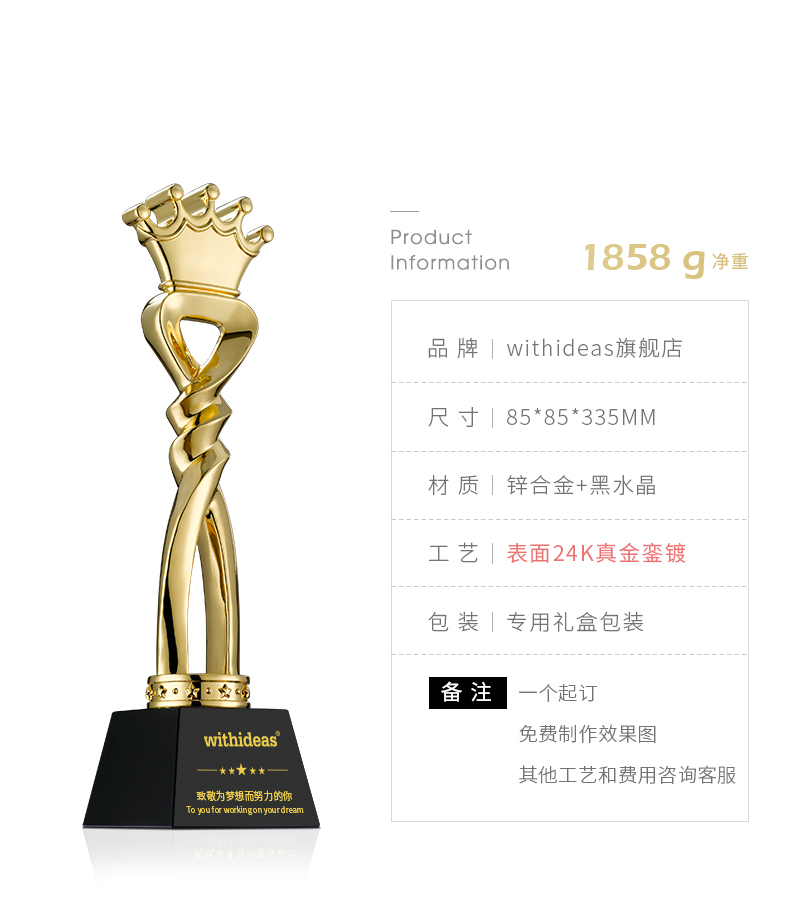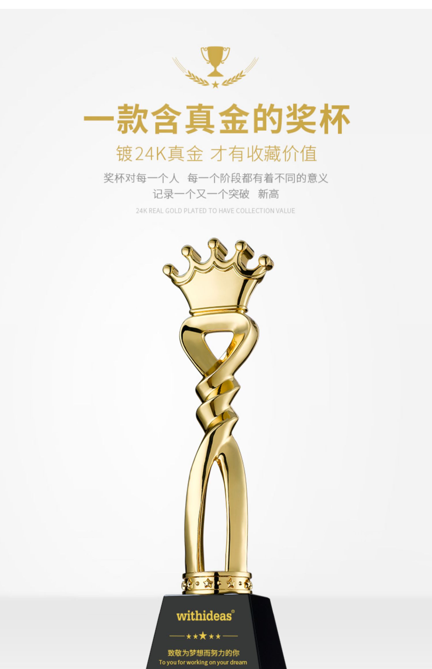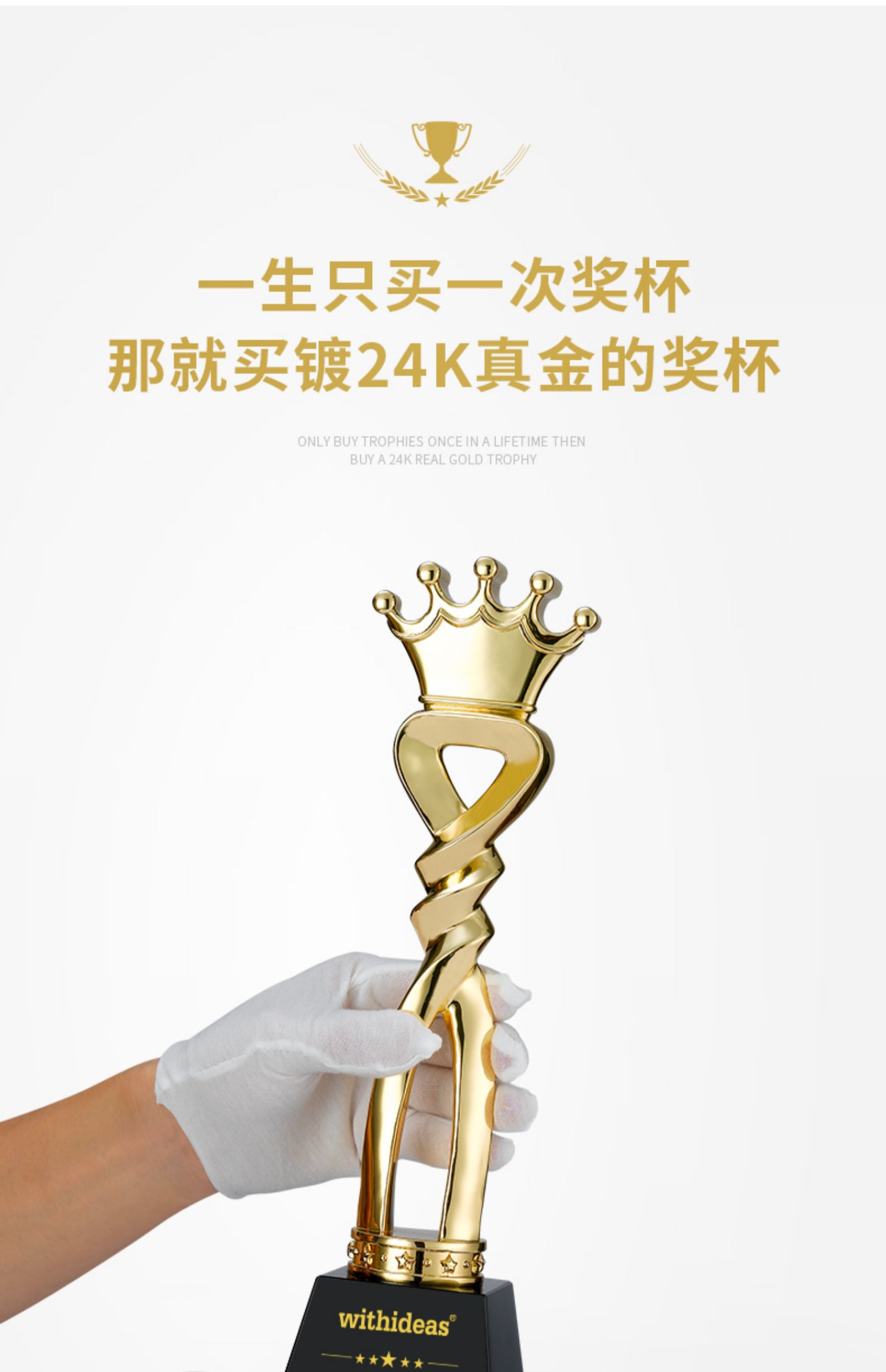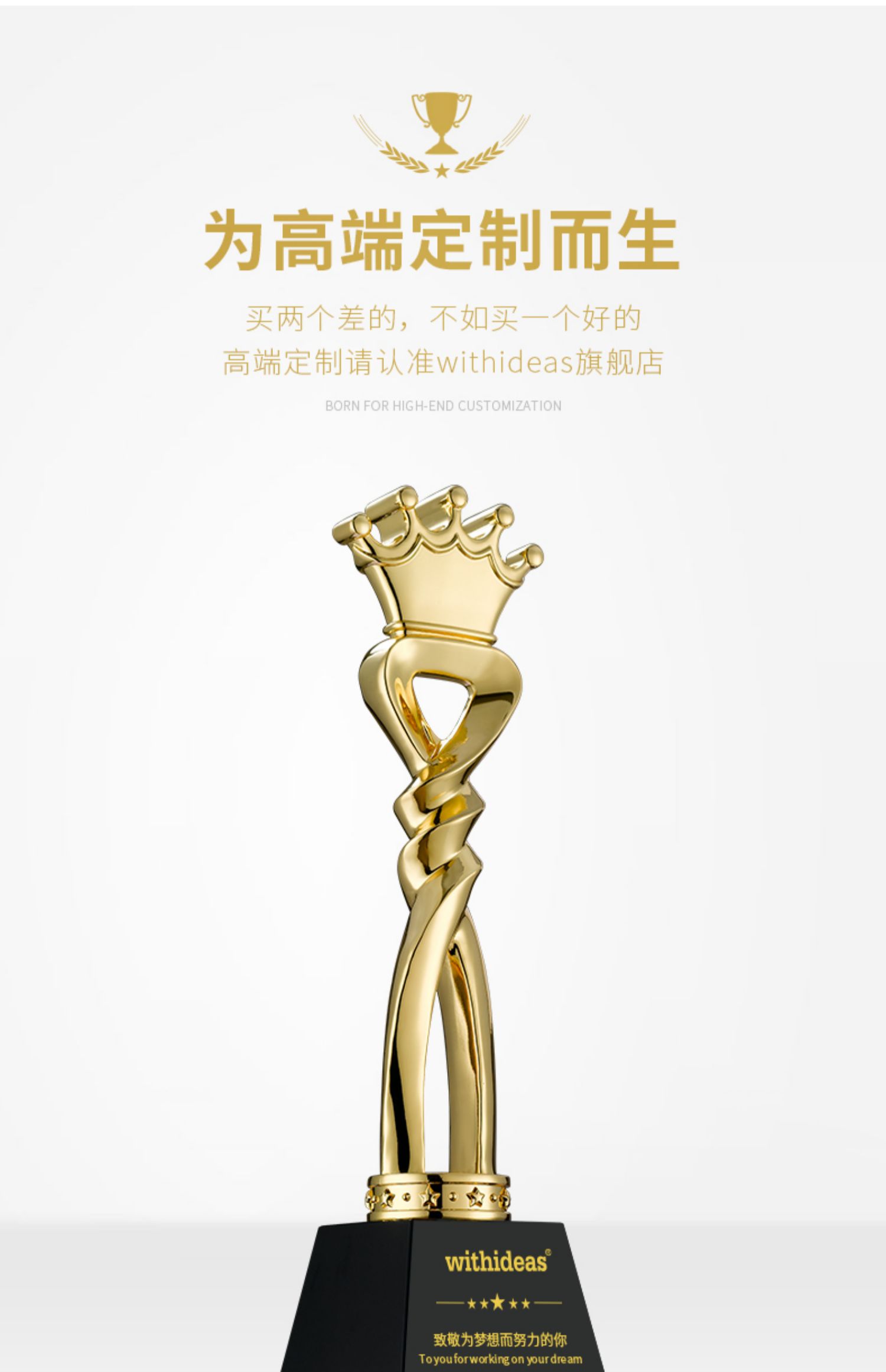 1078 / 高级高档高端大气金属奖杯皇冠创意团队年会定制镀金奖牌定做刻字