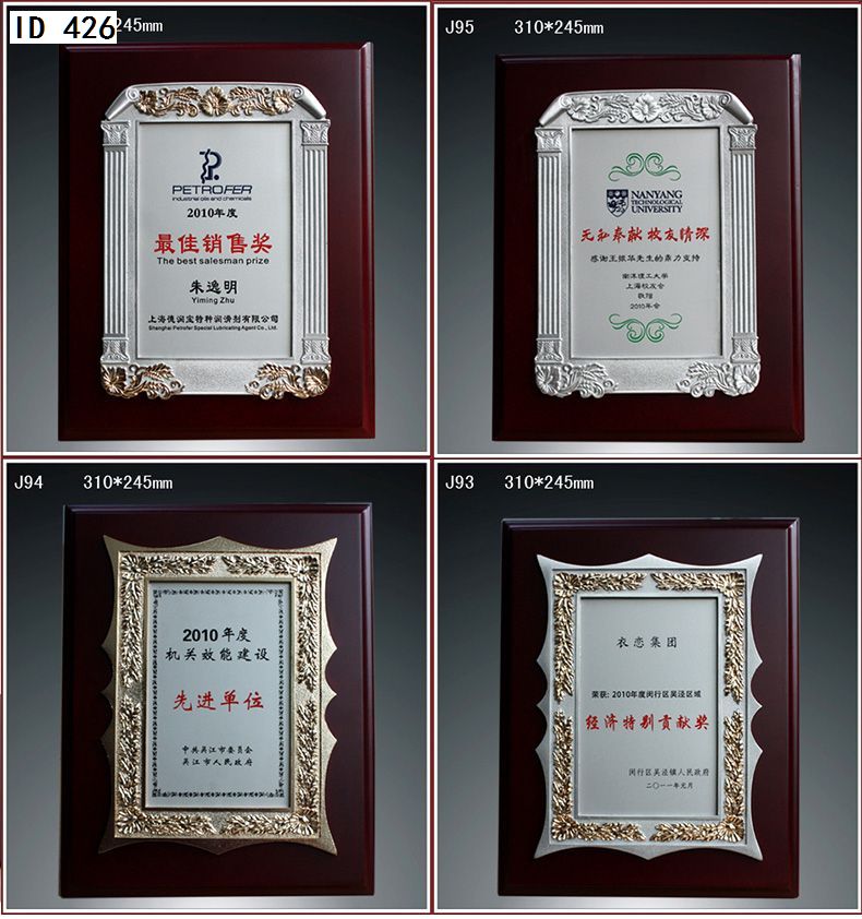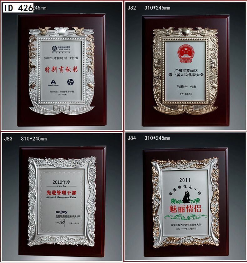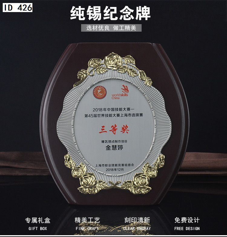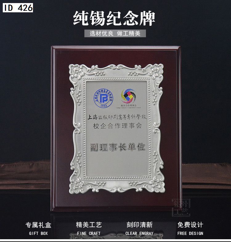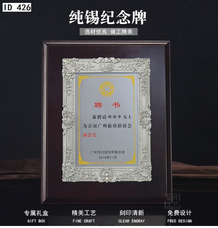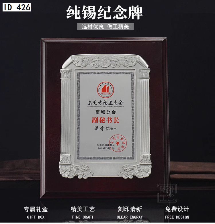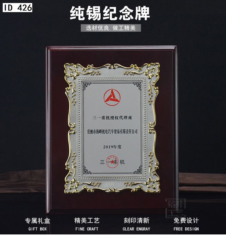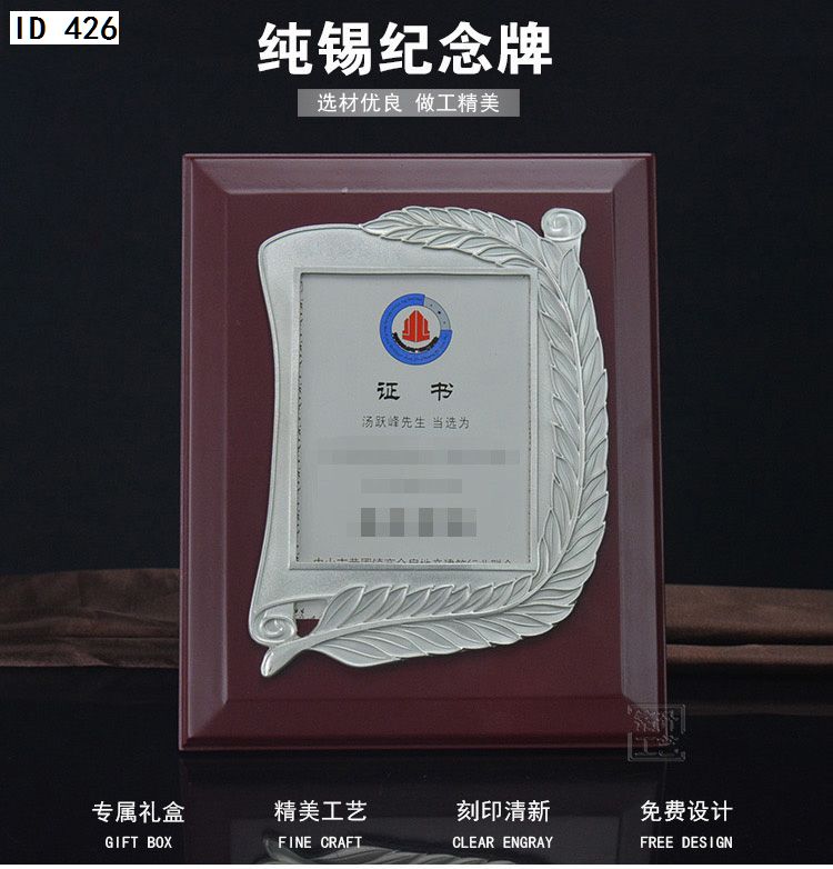 506 / 金属纯锡奖牌锡牌定制定做感谢牌授权牌证书木托聘书奖状