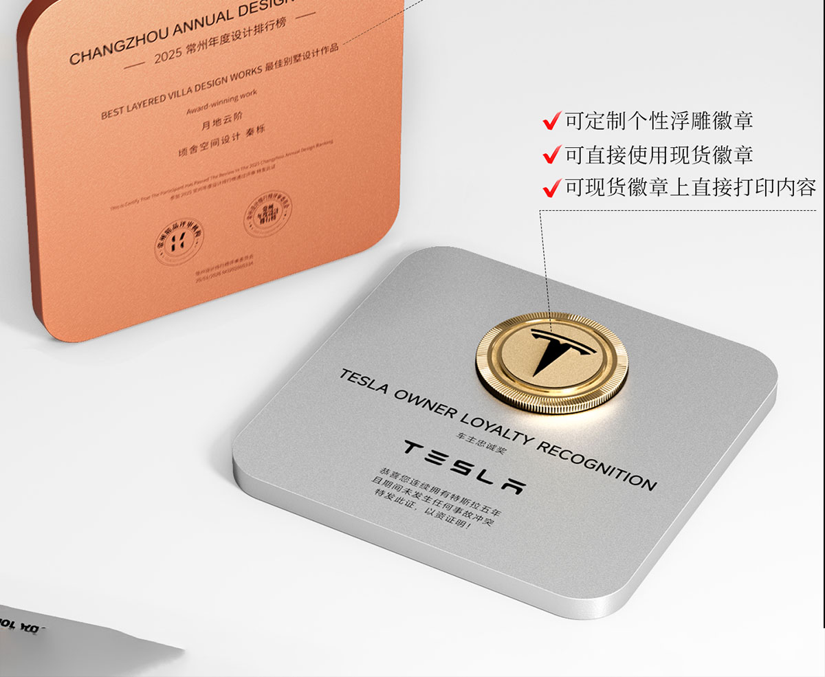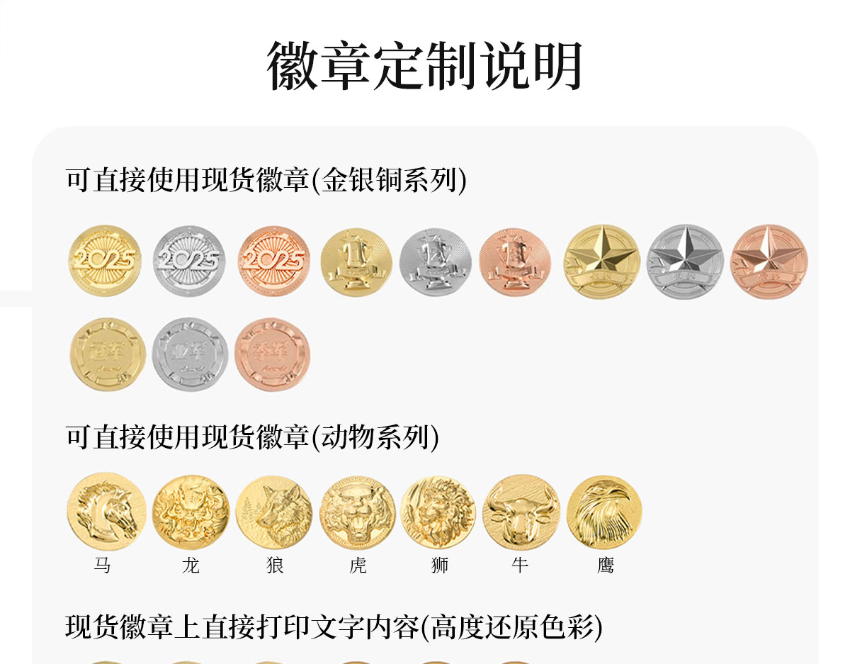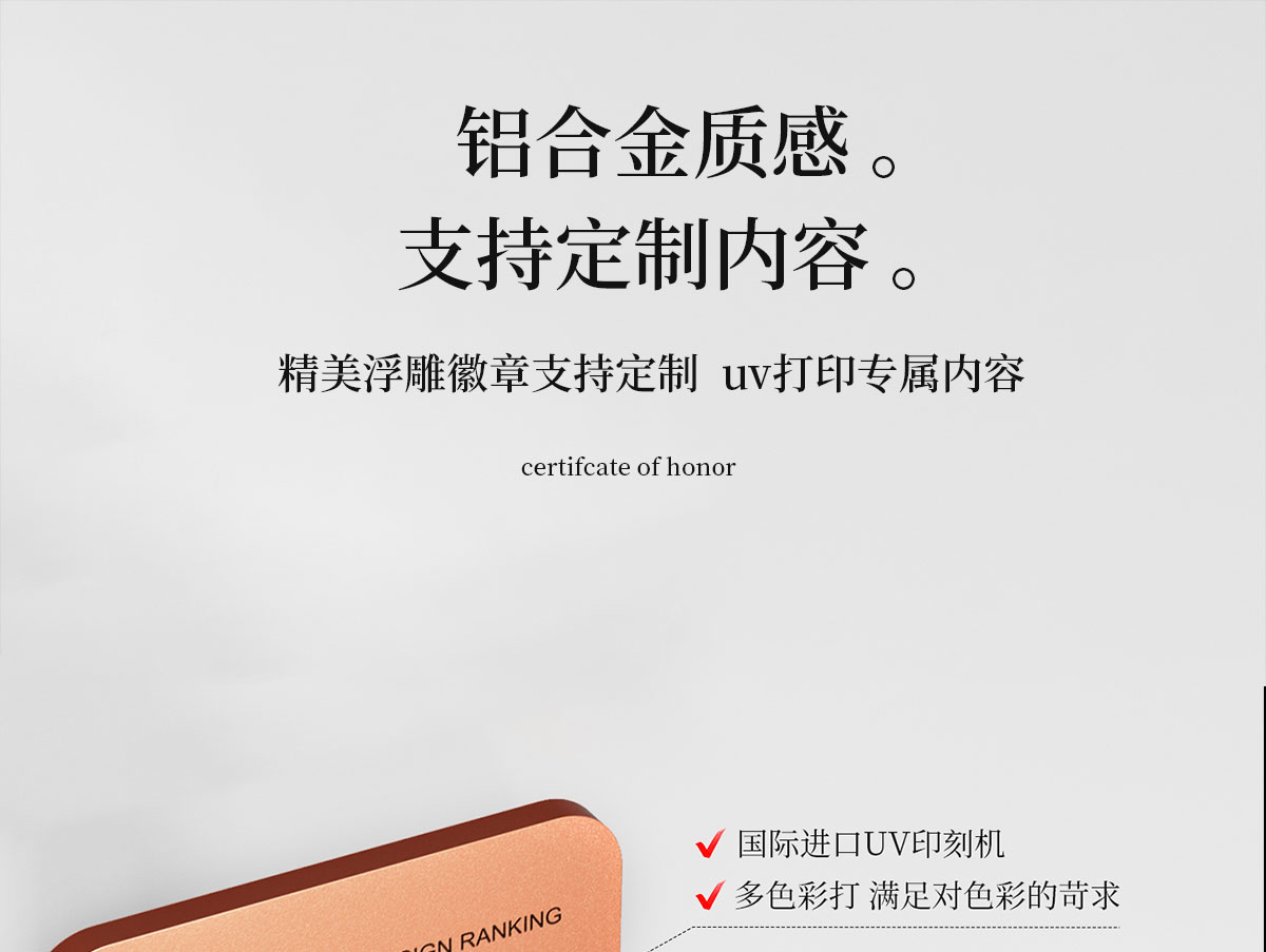 1109 / 可嵌入式徽章金属奖牌定制铝合金金银铜荣誉证书定做摆件桌摆纪念