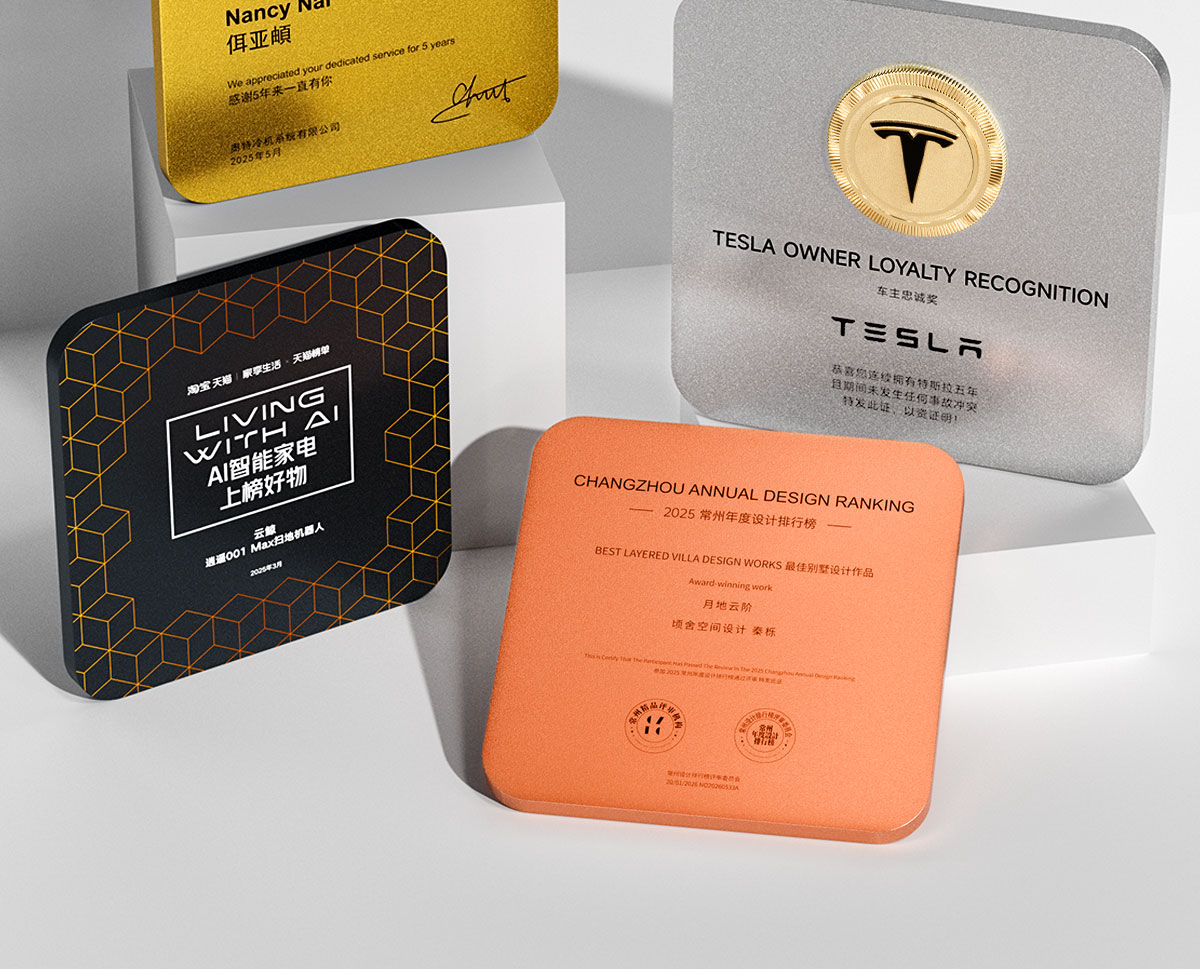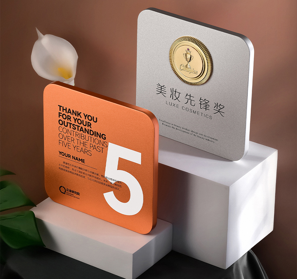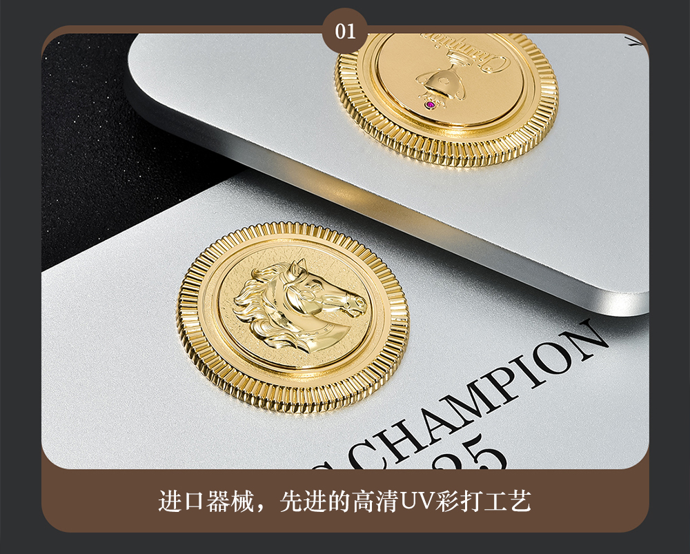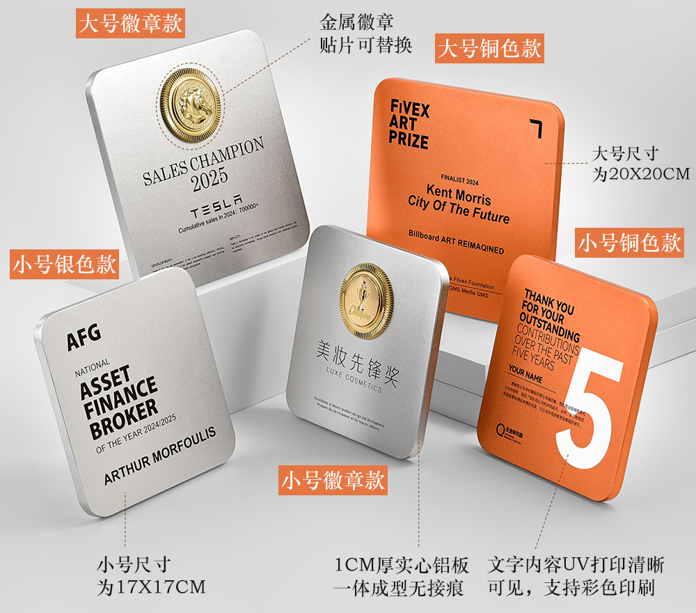 1109 / 可嵌入式徽章金属奖牌定制铝合金金银铜荣誉证书定做摆件桌摆纪念