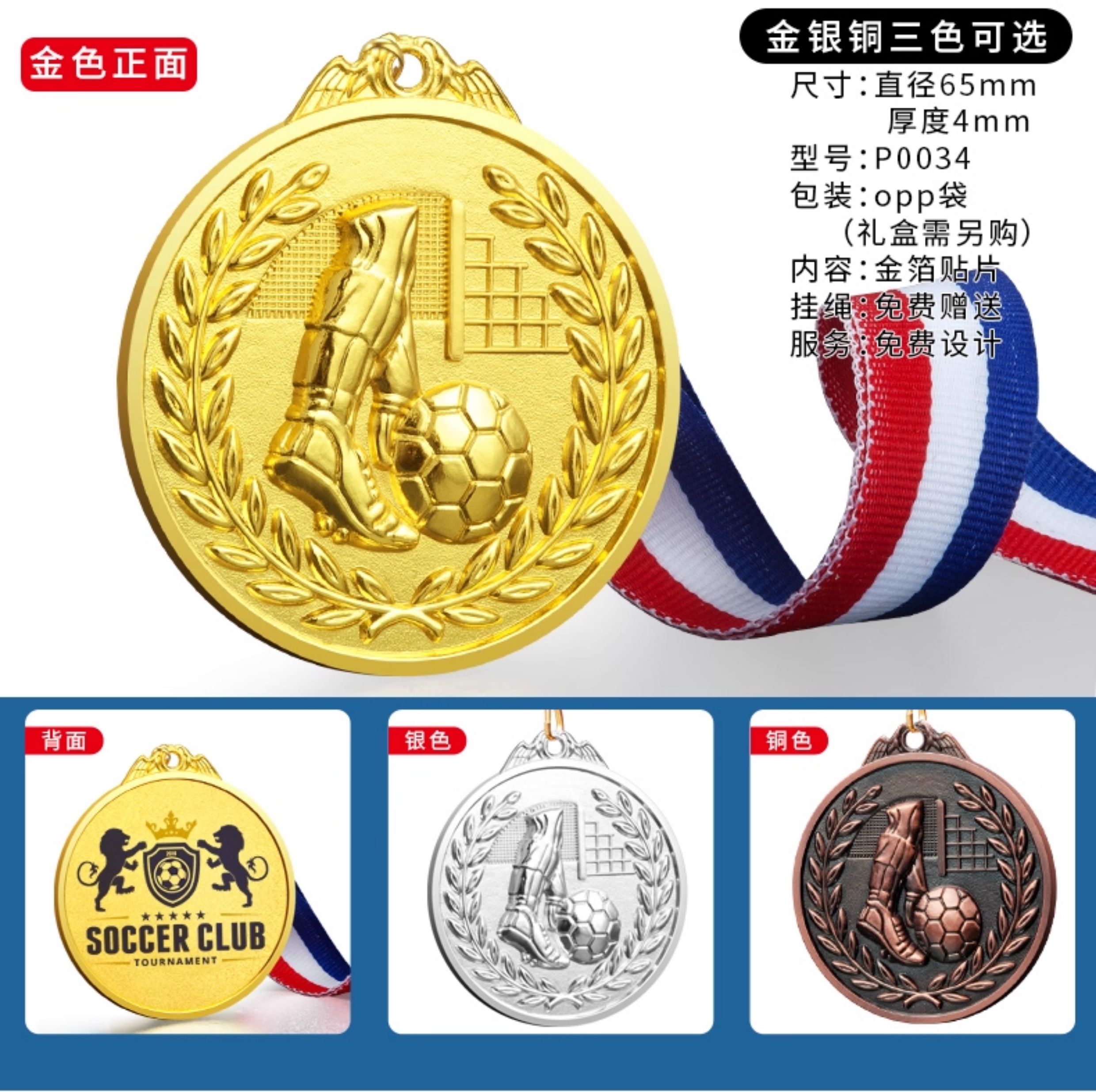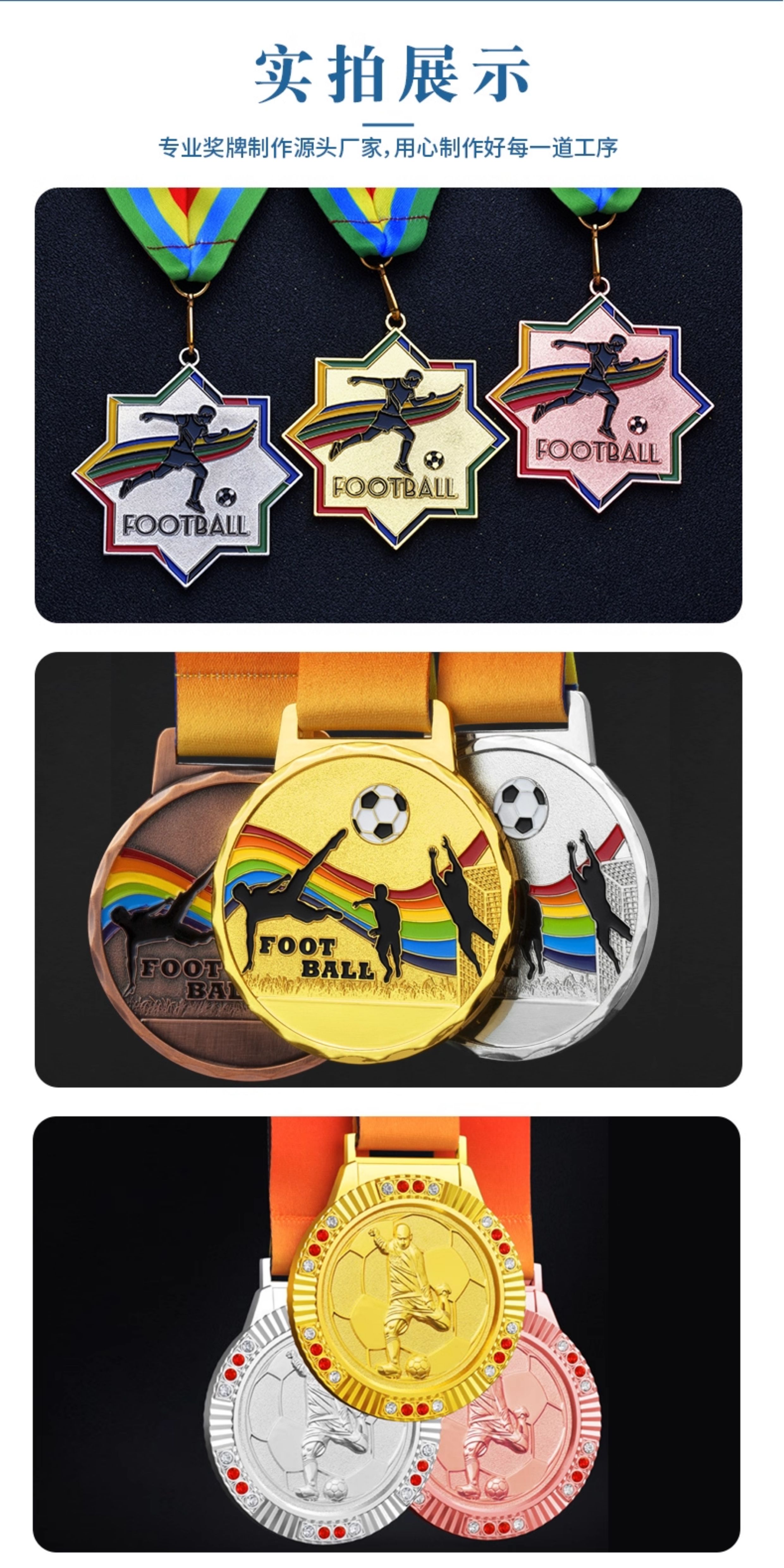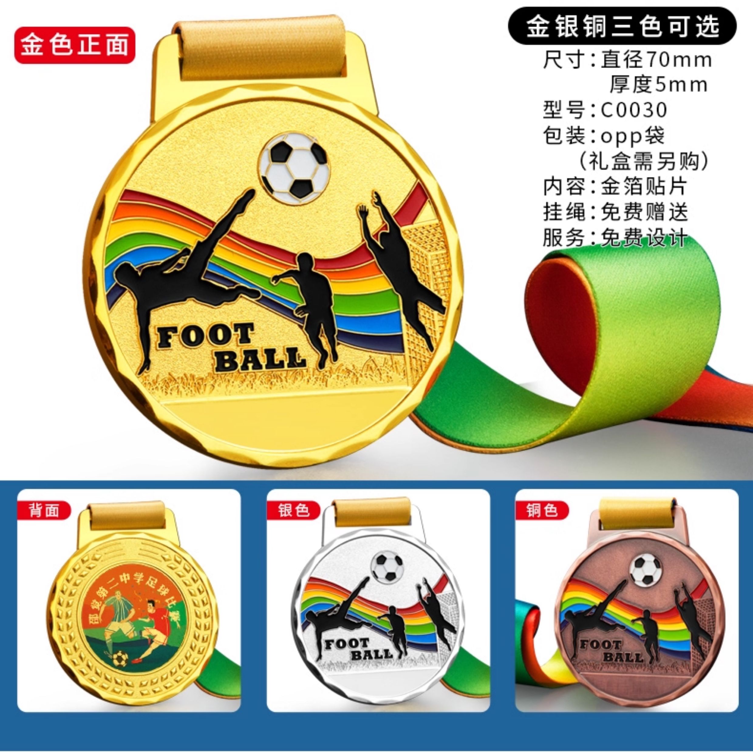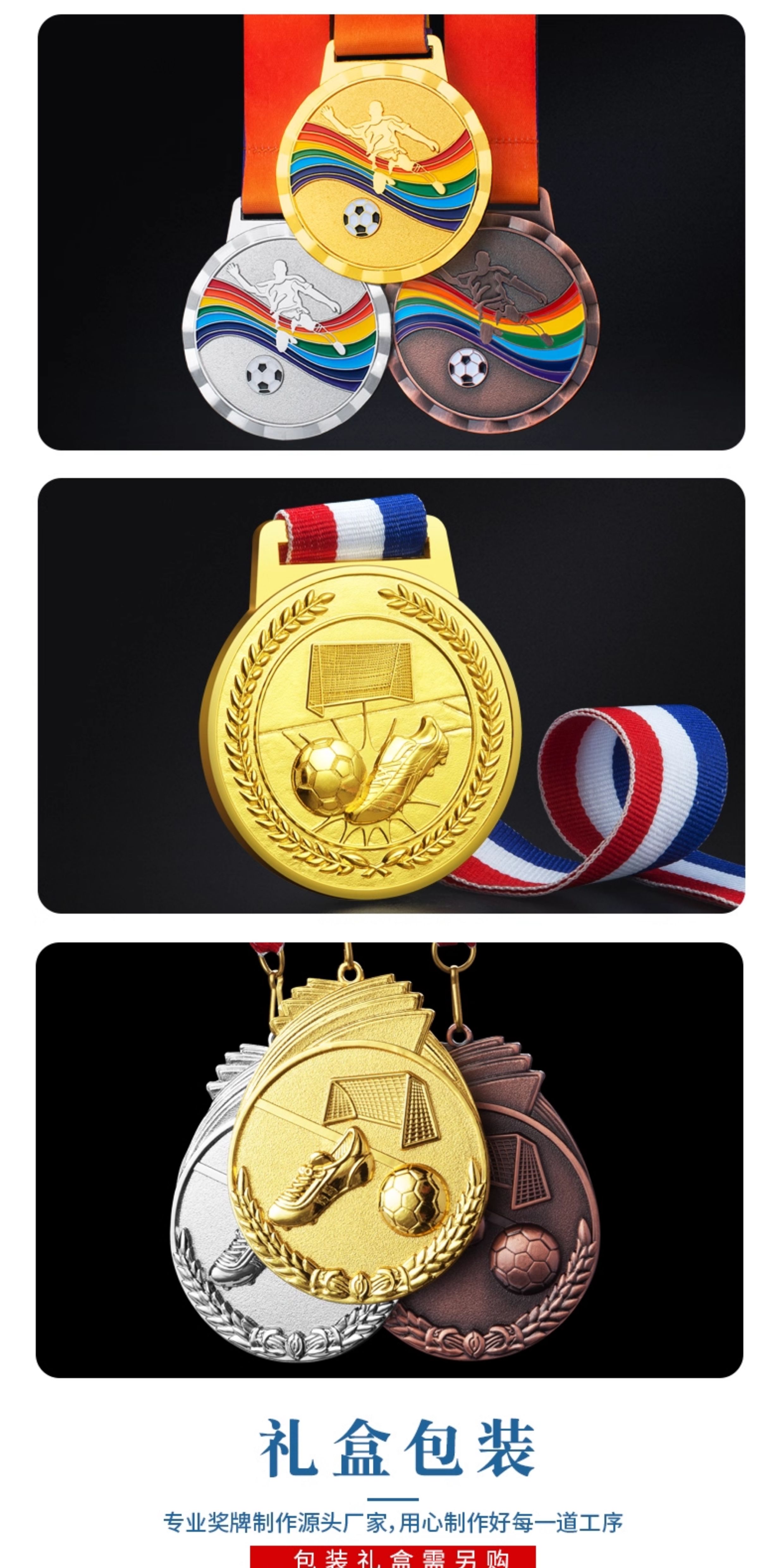 875 / 足球奖杯奖牌定制金属运动比赛挂牌定做创意儿童奖章金银铜纪念牌