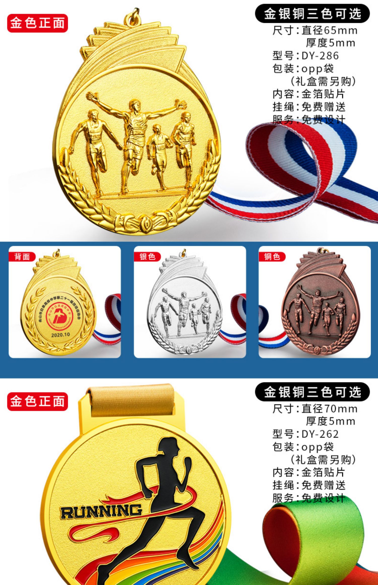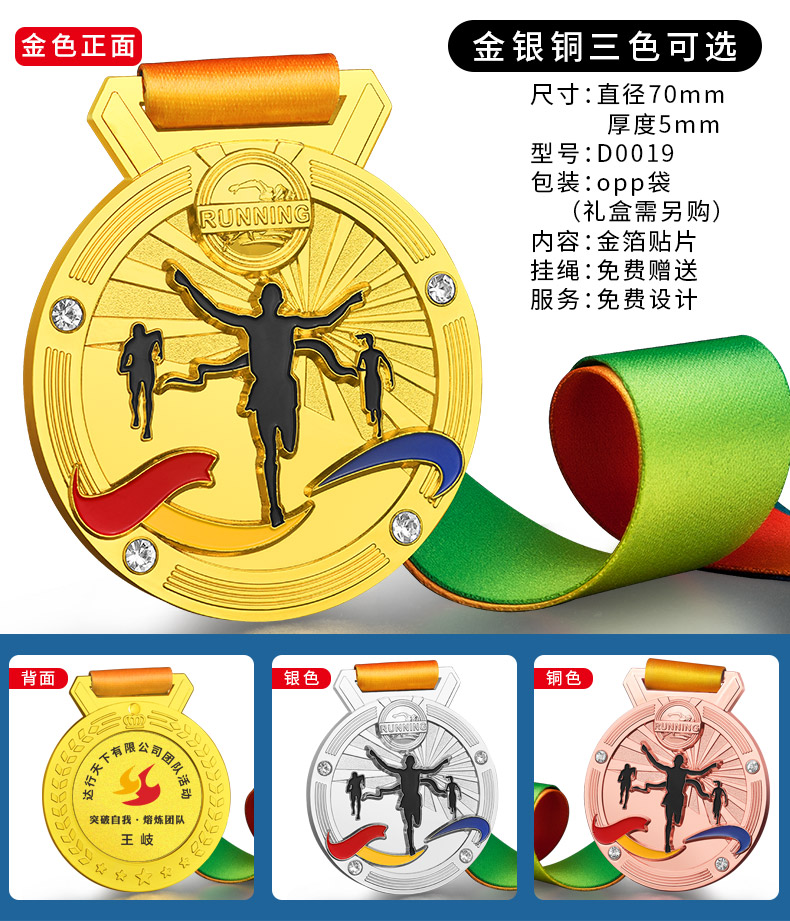 875 / 奖牌定制订定做学校运动会纪念品马拉松比赛金属挂牌荣誉徒步奖章