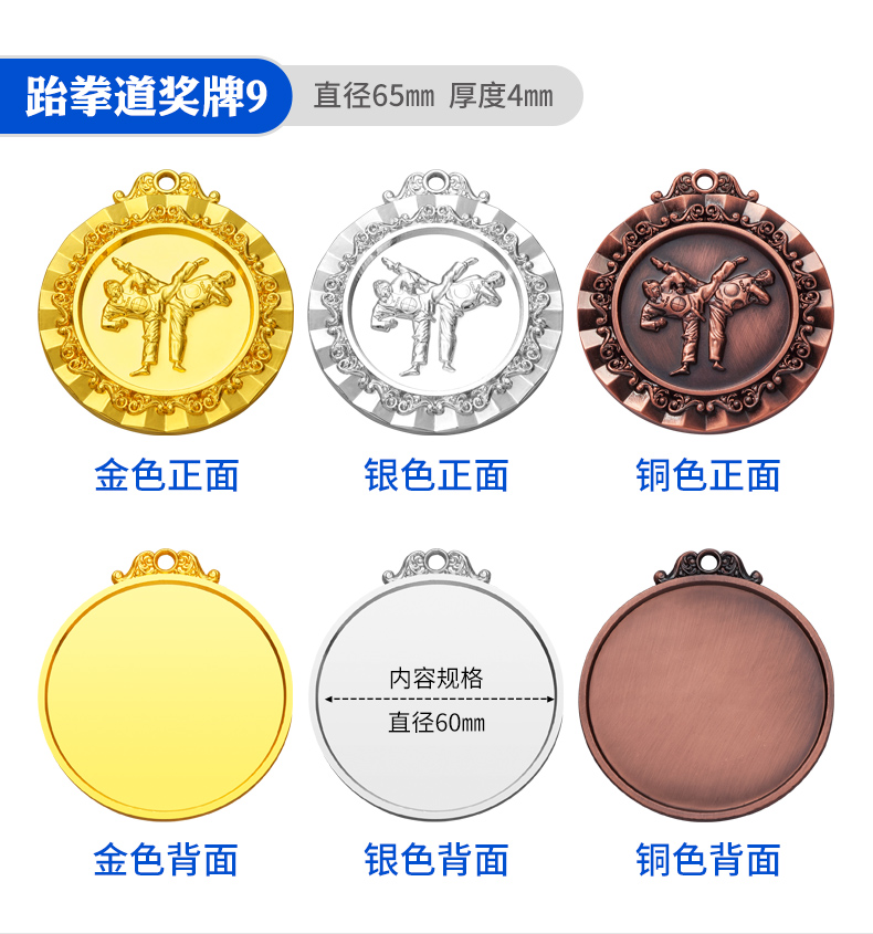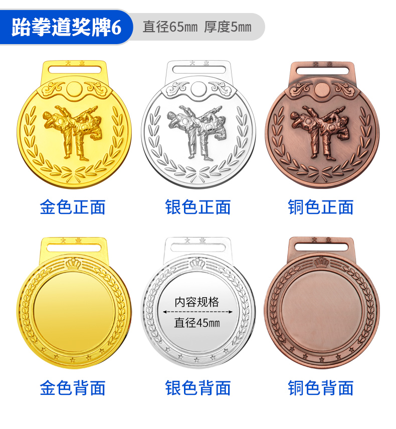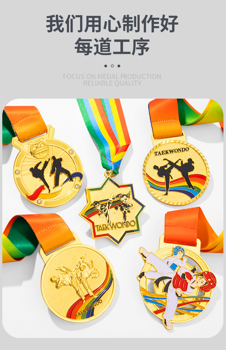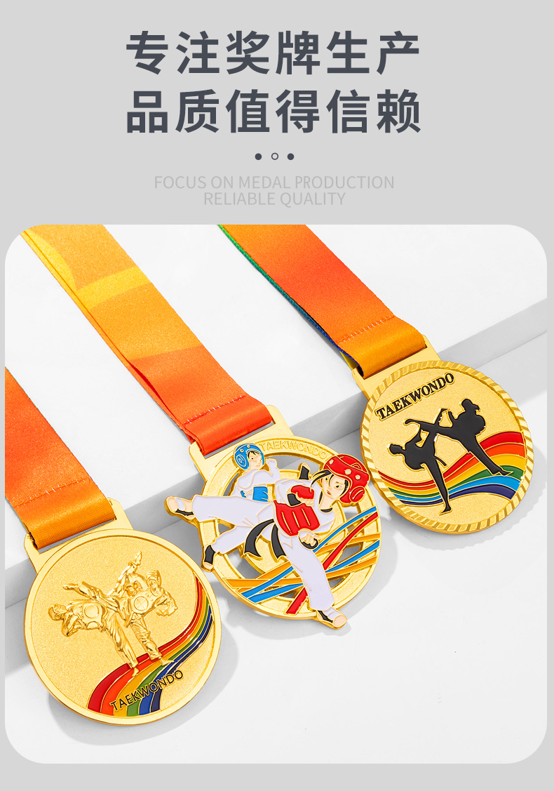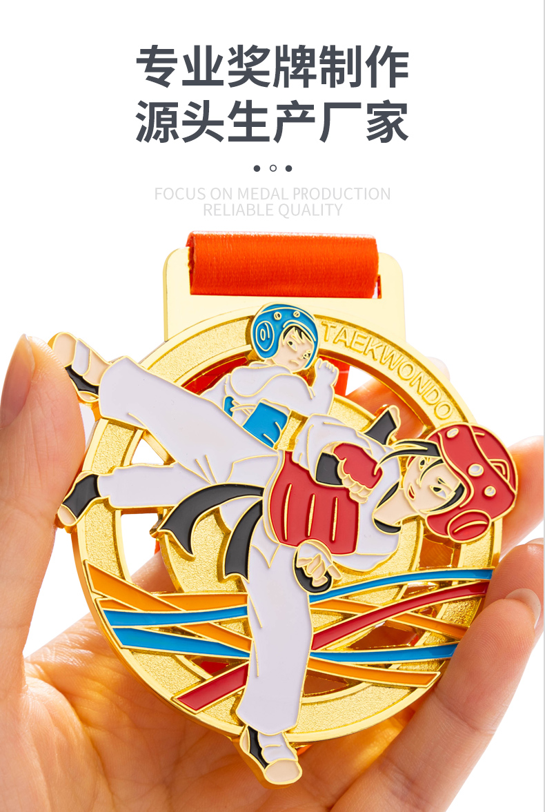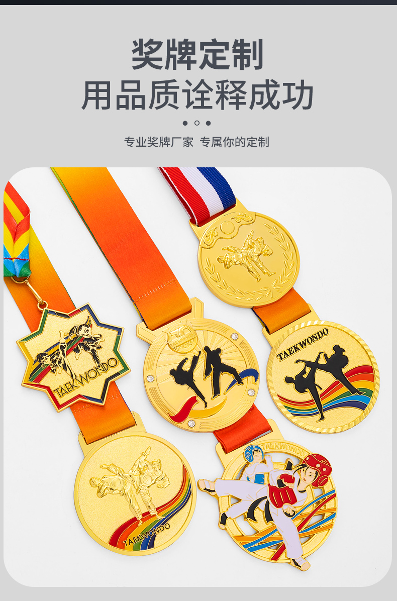 877 / 跆拳道奖牌青少年擂台赛冠军金牌定制暑期培训颁奖奖牌定做荣誉牌