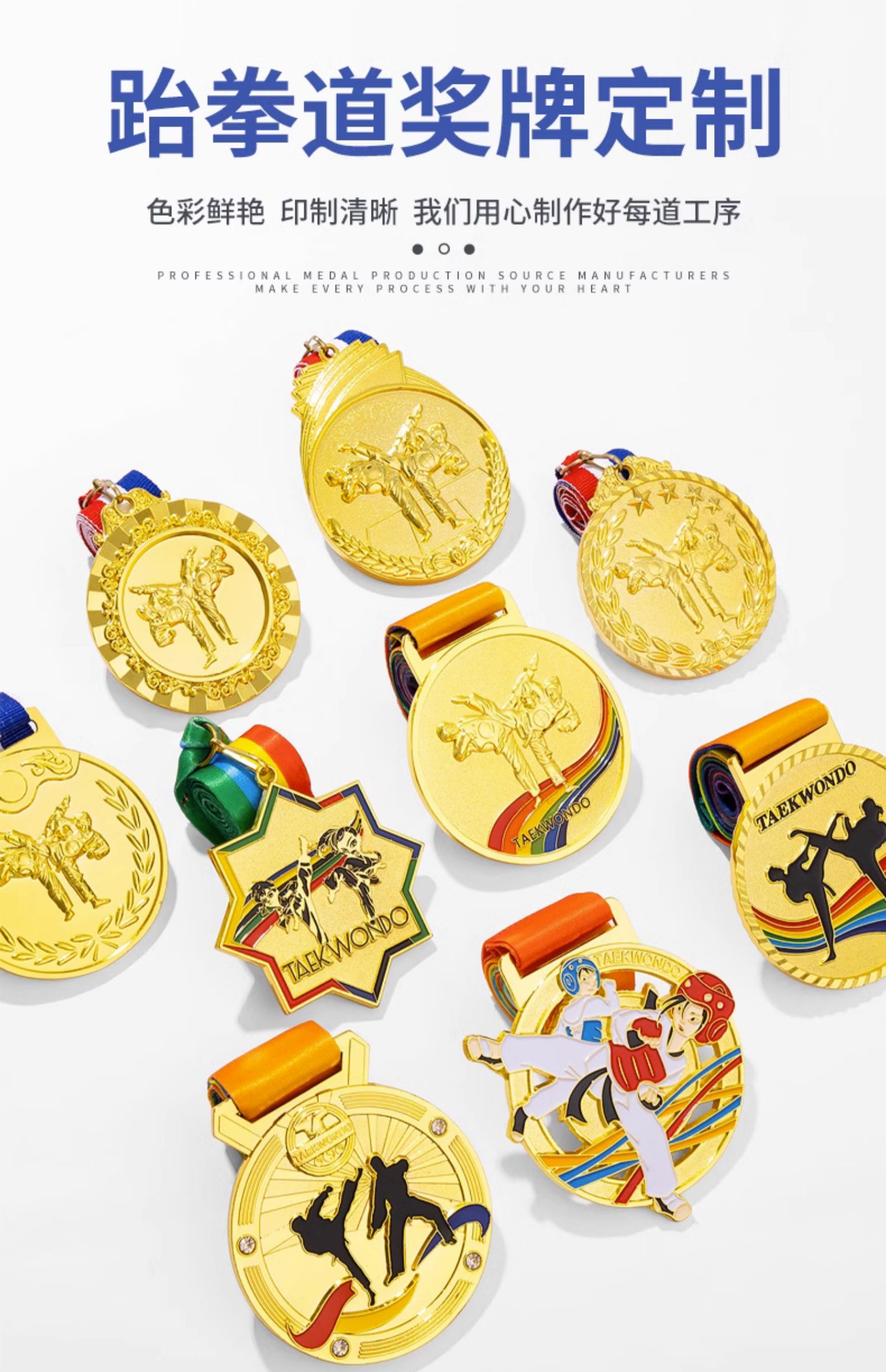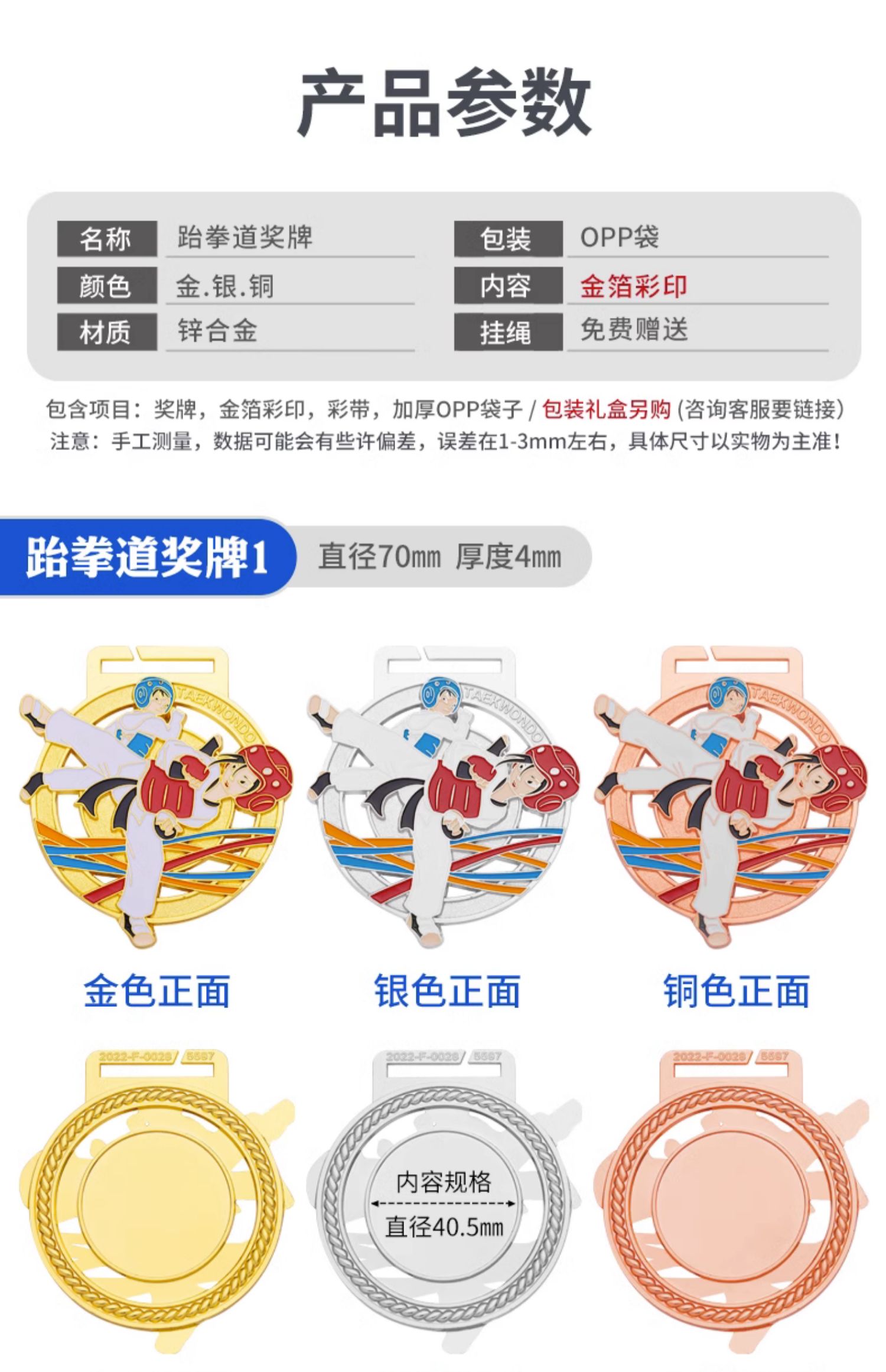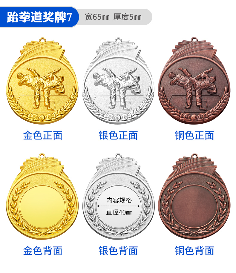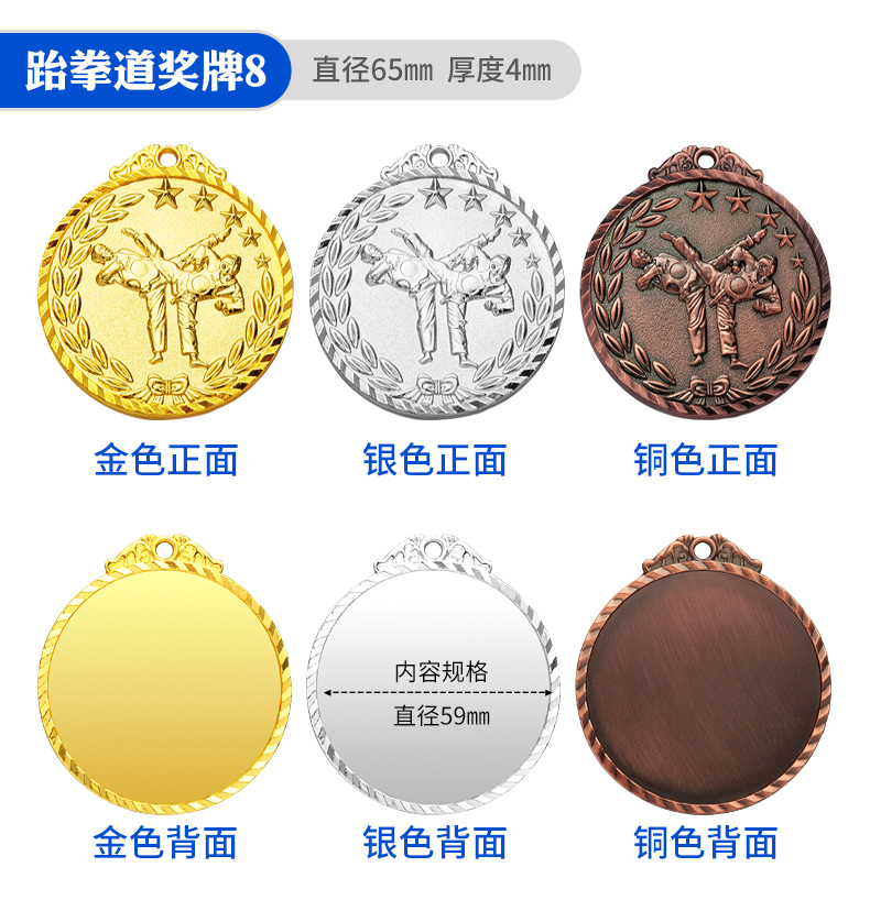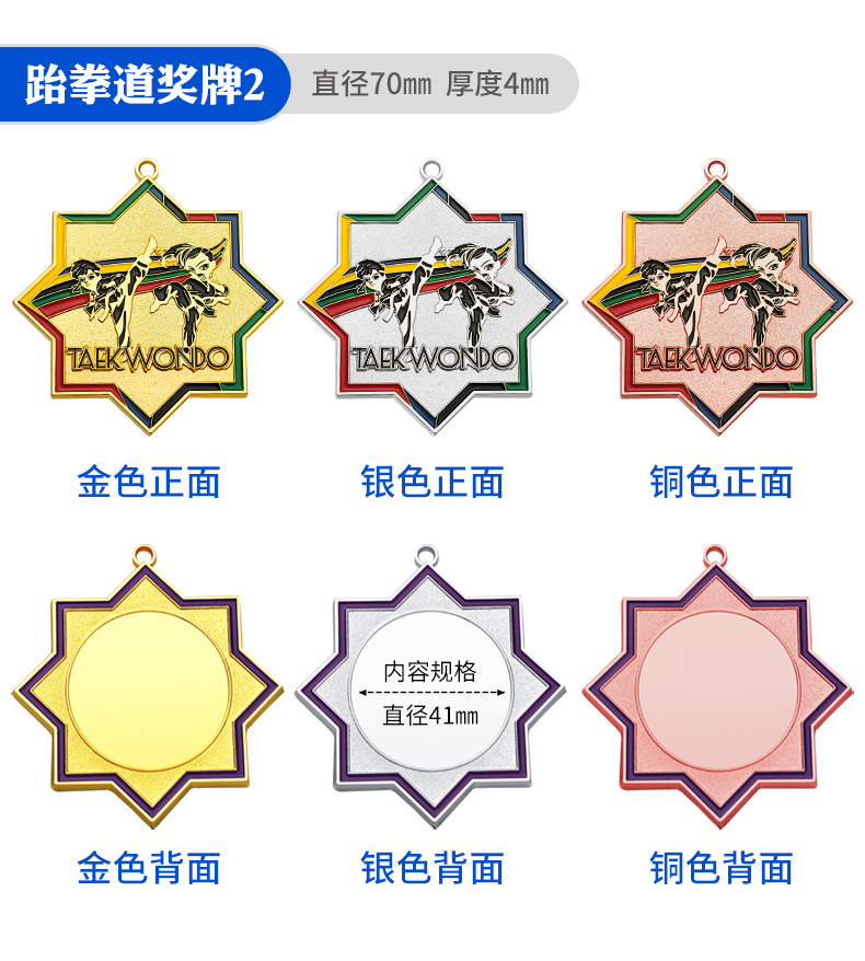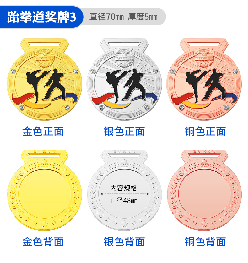 877 / 跆拳道奖牌青少年擂台赛冠军金牌定制暑期培训颁奖奖牌定做荣誉牌