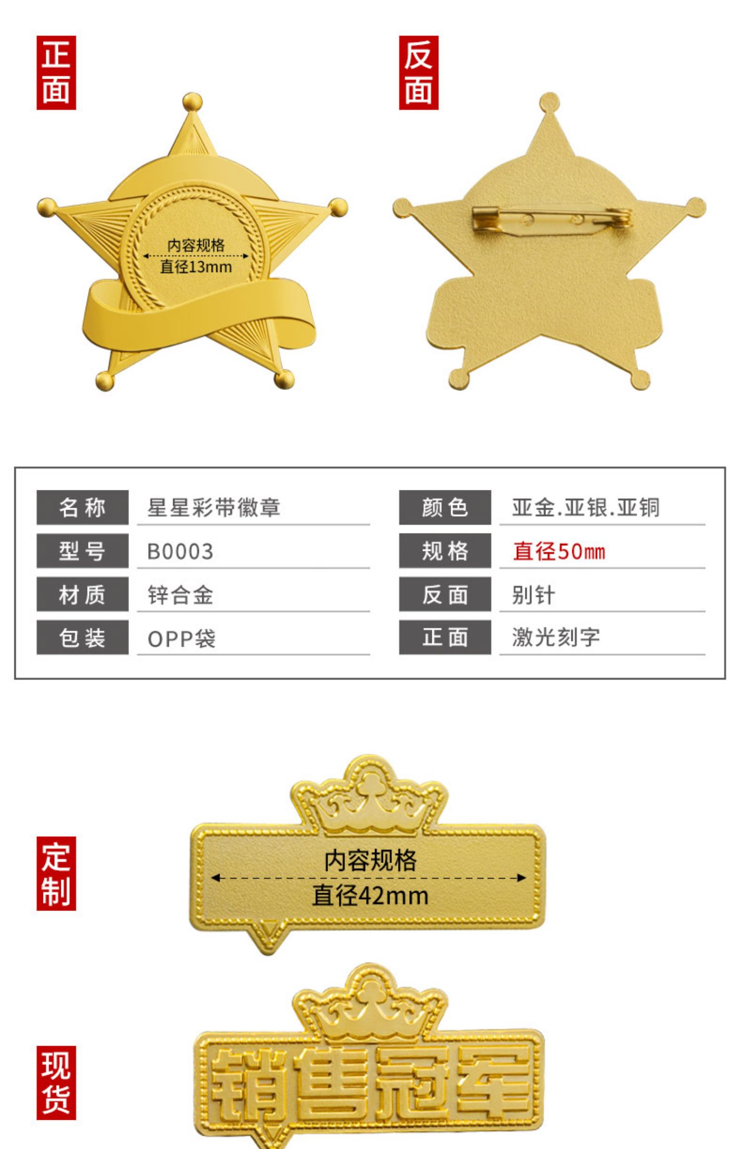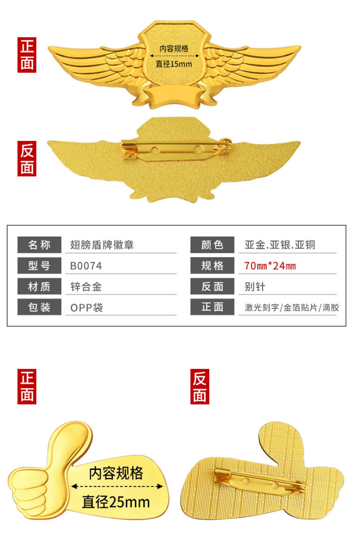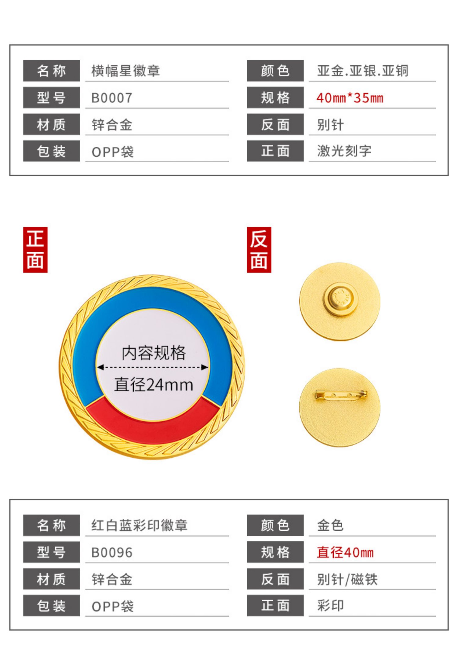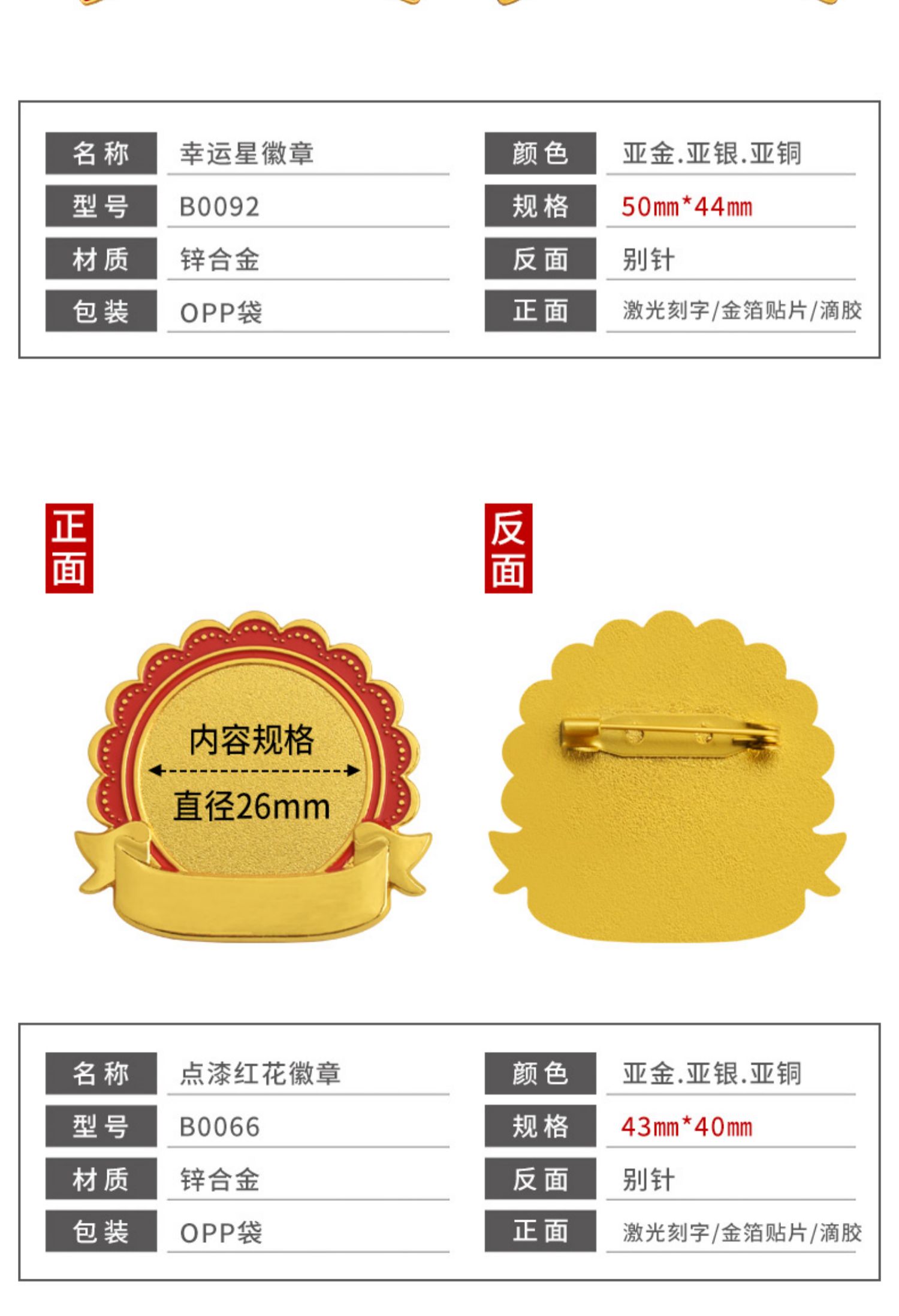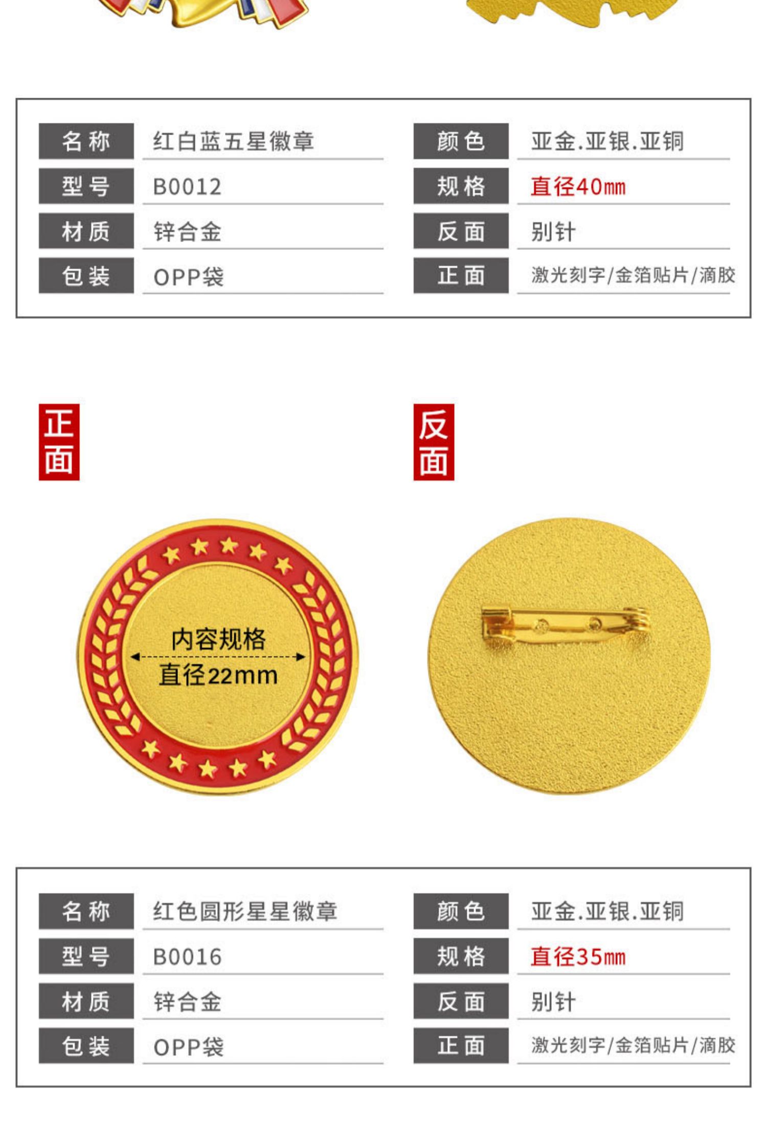 701 / 徽章定做定制荣誉勋章胸章班校徽订制logo纪念章金属儿童奖章奖牌