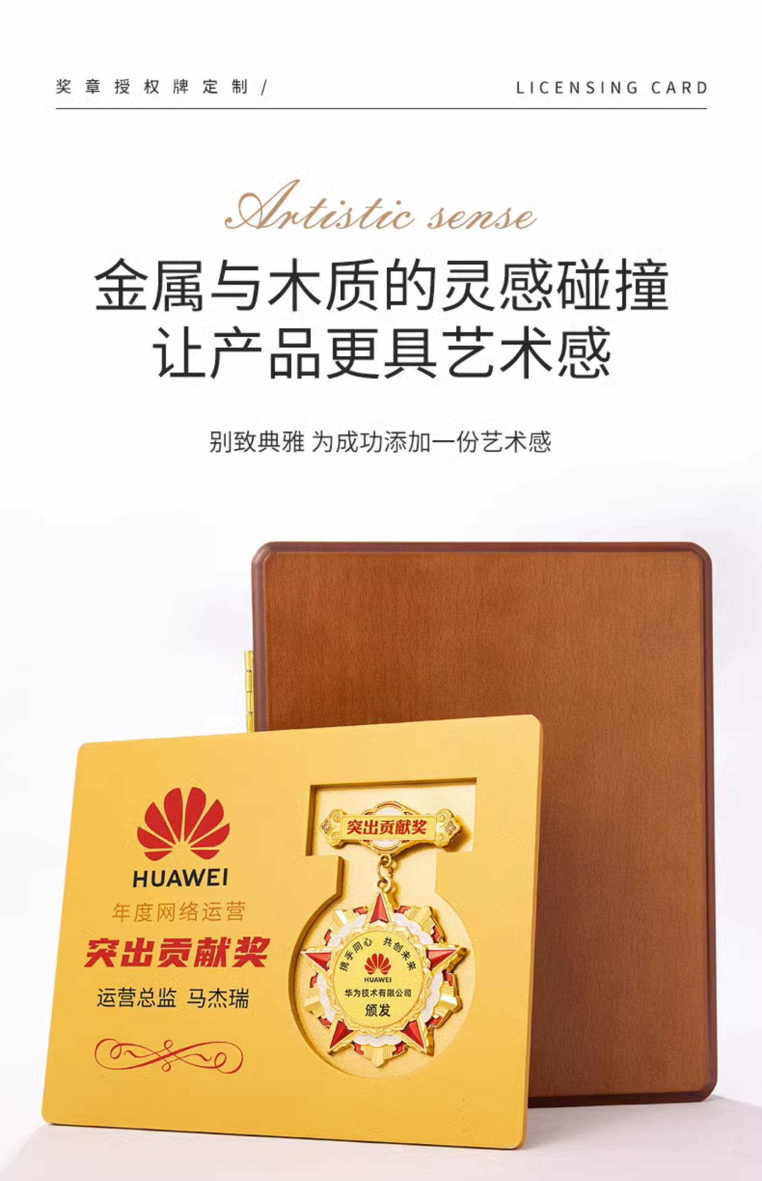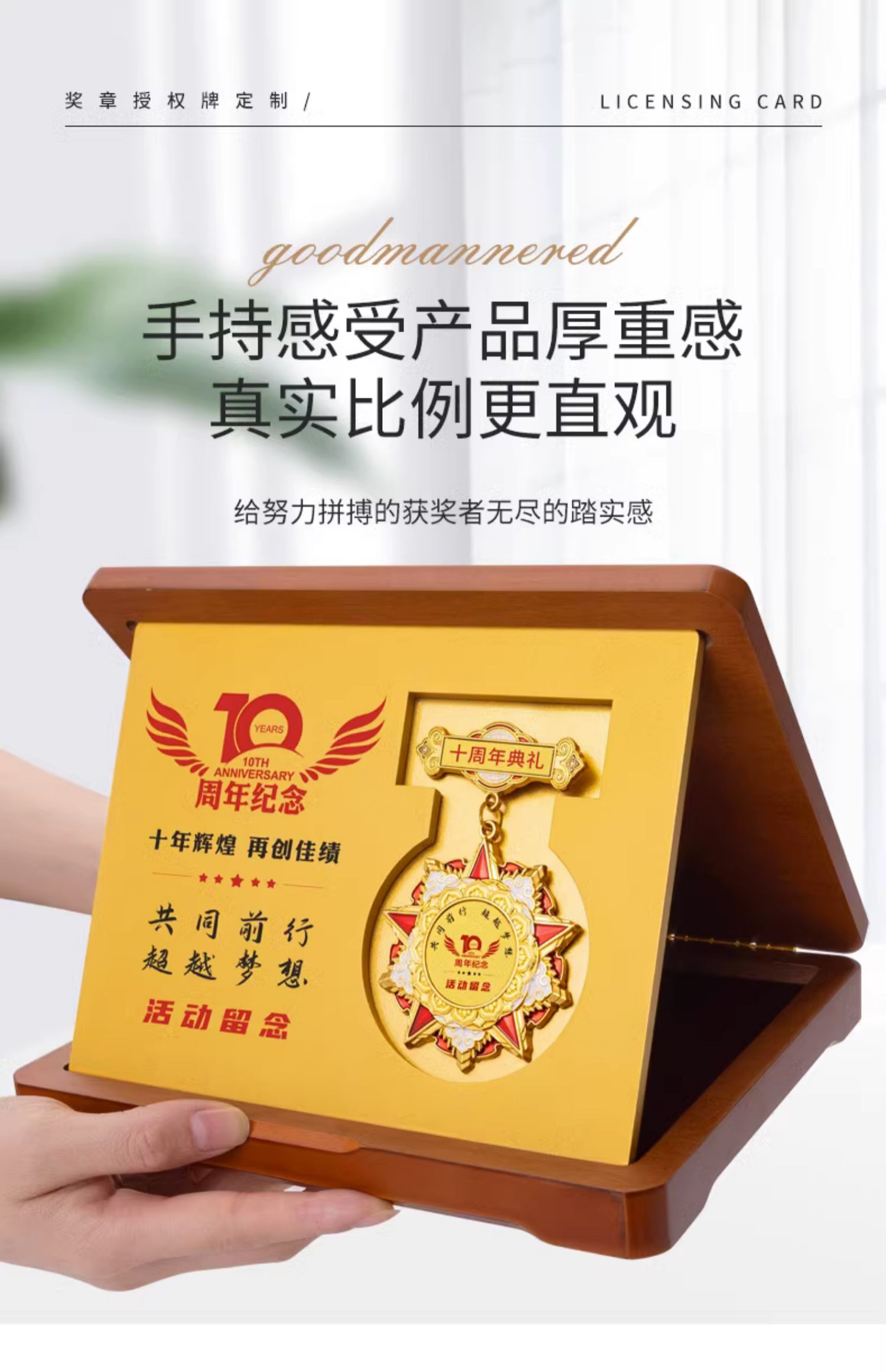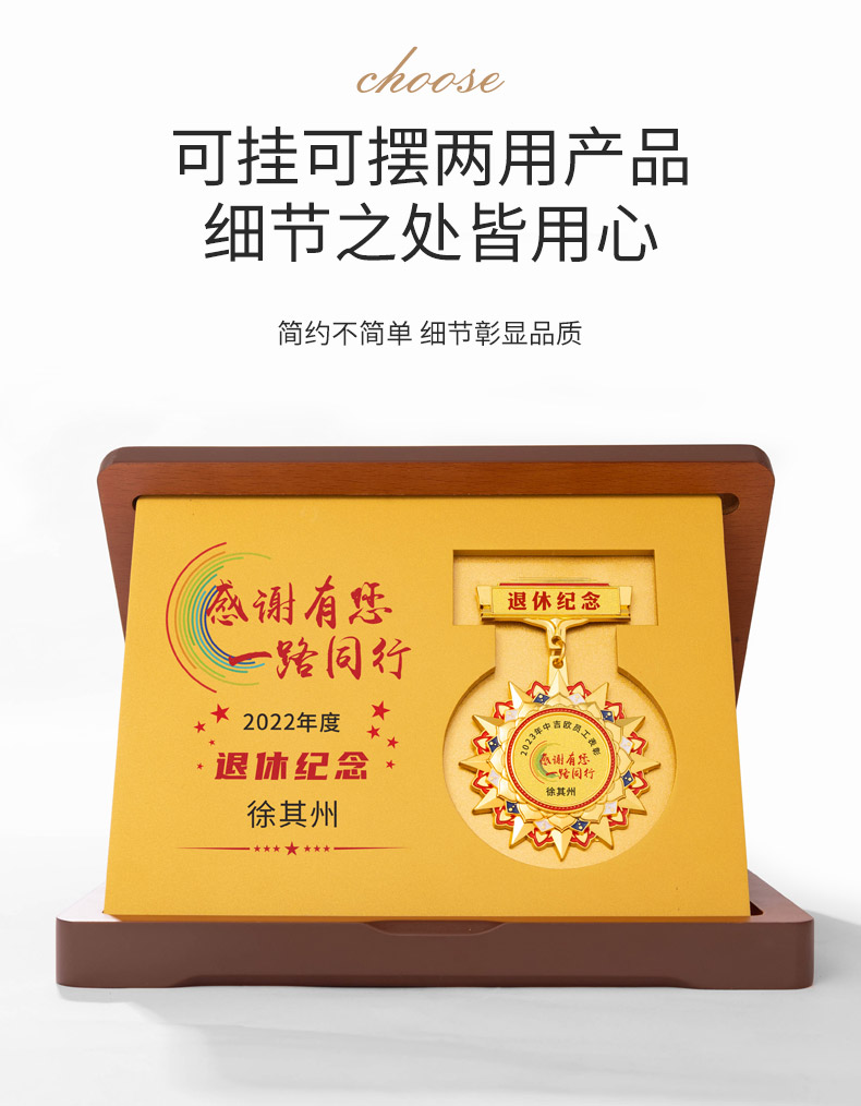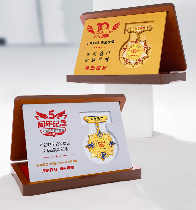 725 / 勋章定做折叠木板奖章退休十周年胸徽章年会优秀员工表彰颁奖奖牌