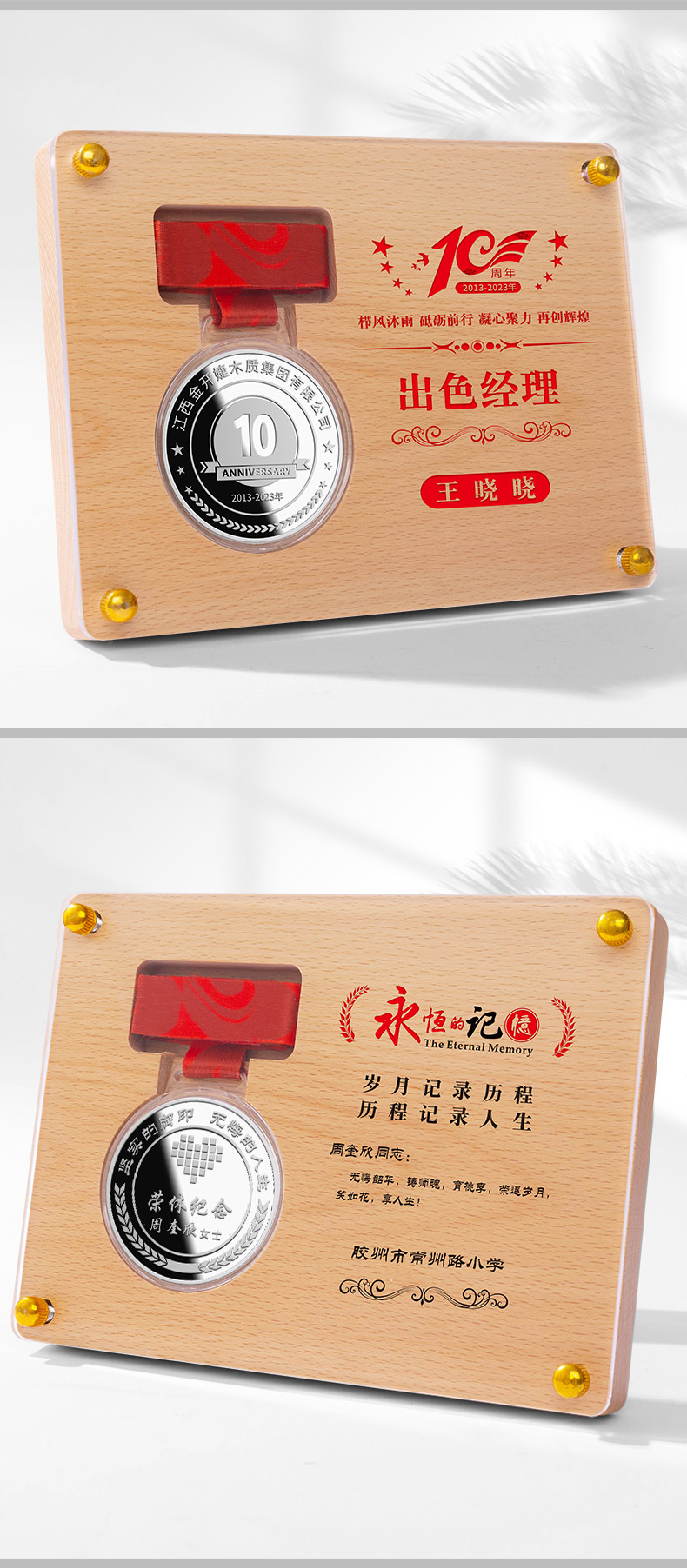 672 / 毕业纪念品退休师生百日礼物送同学会毕业纪念章水晶纯银银币定制