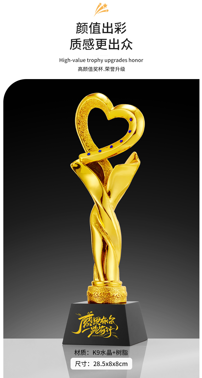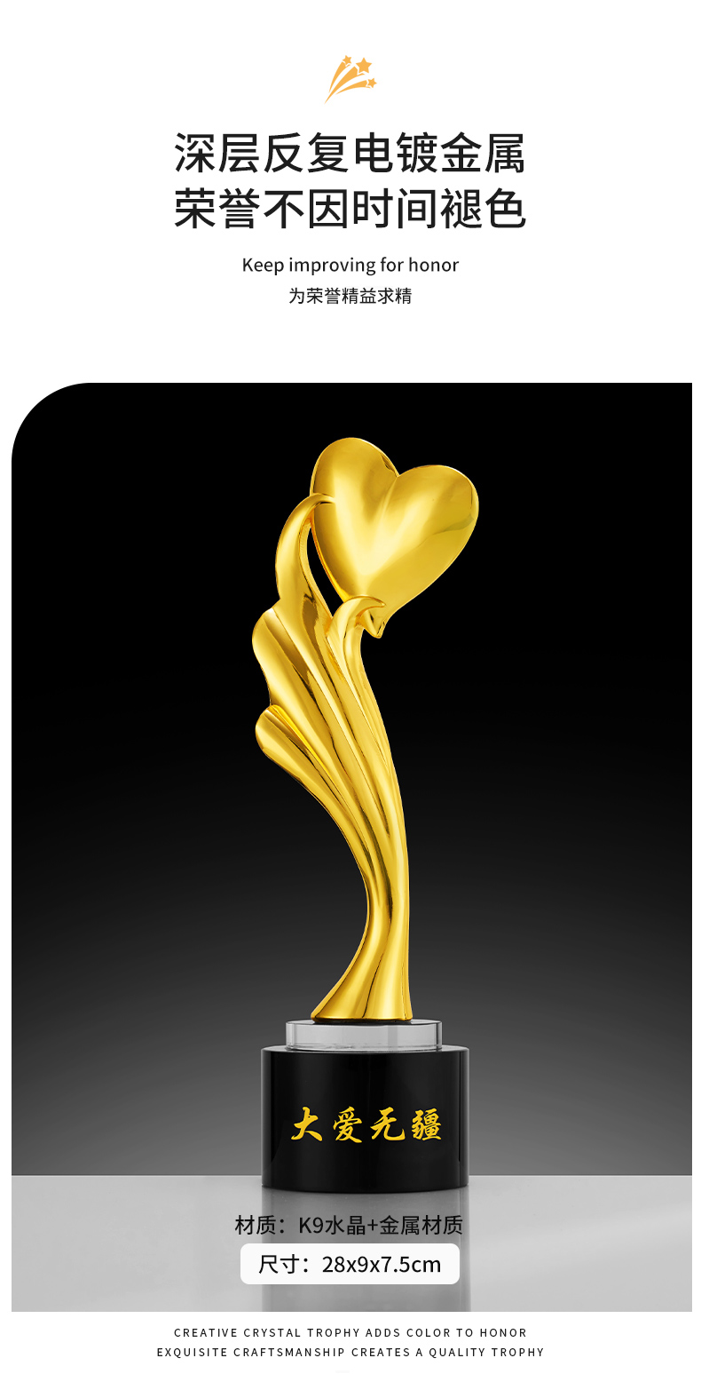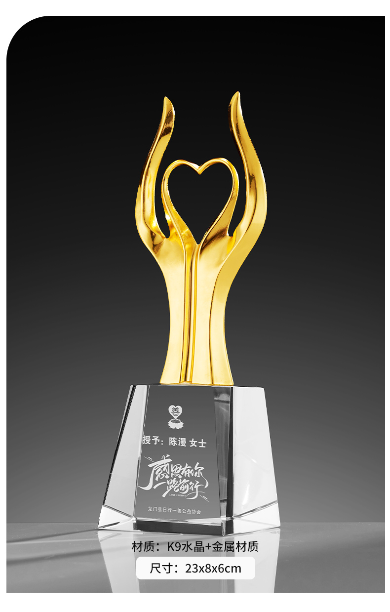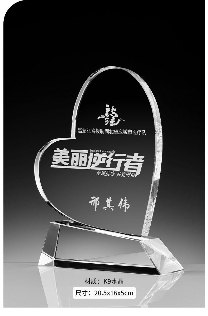 433 / 【爱心主题】公益慈善爱心水晶奖杯定制好老公好老婆奖心形妈妈生日礼物