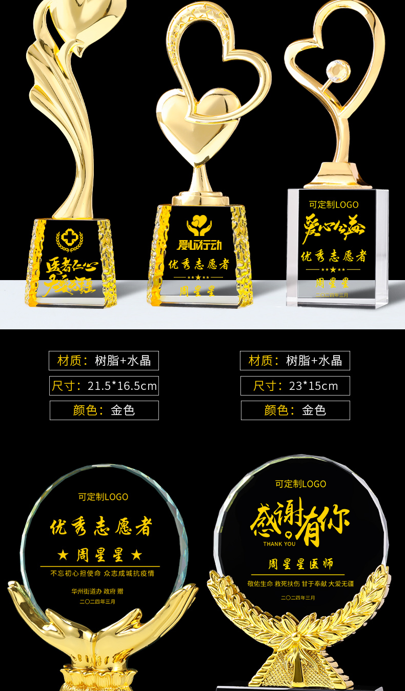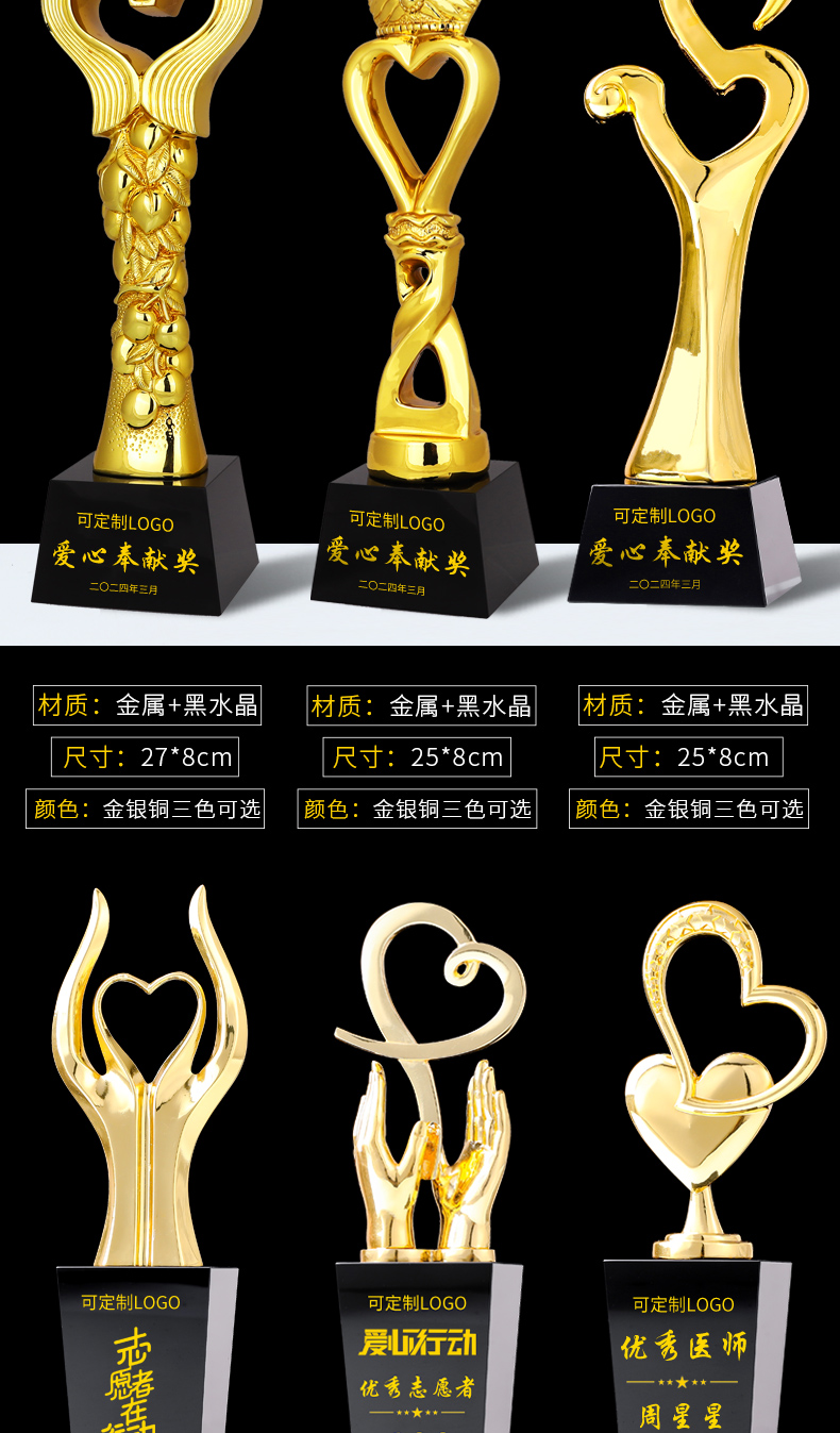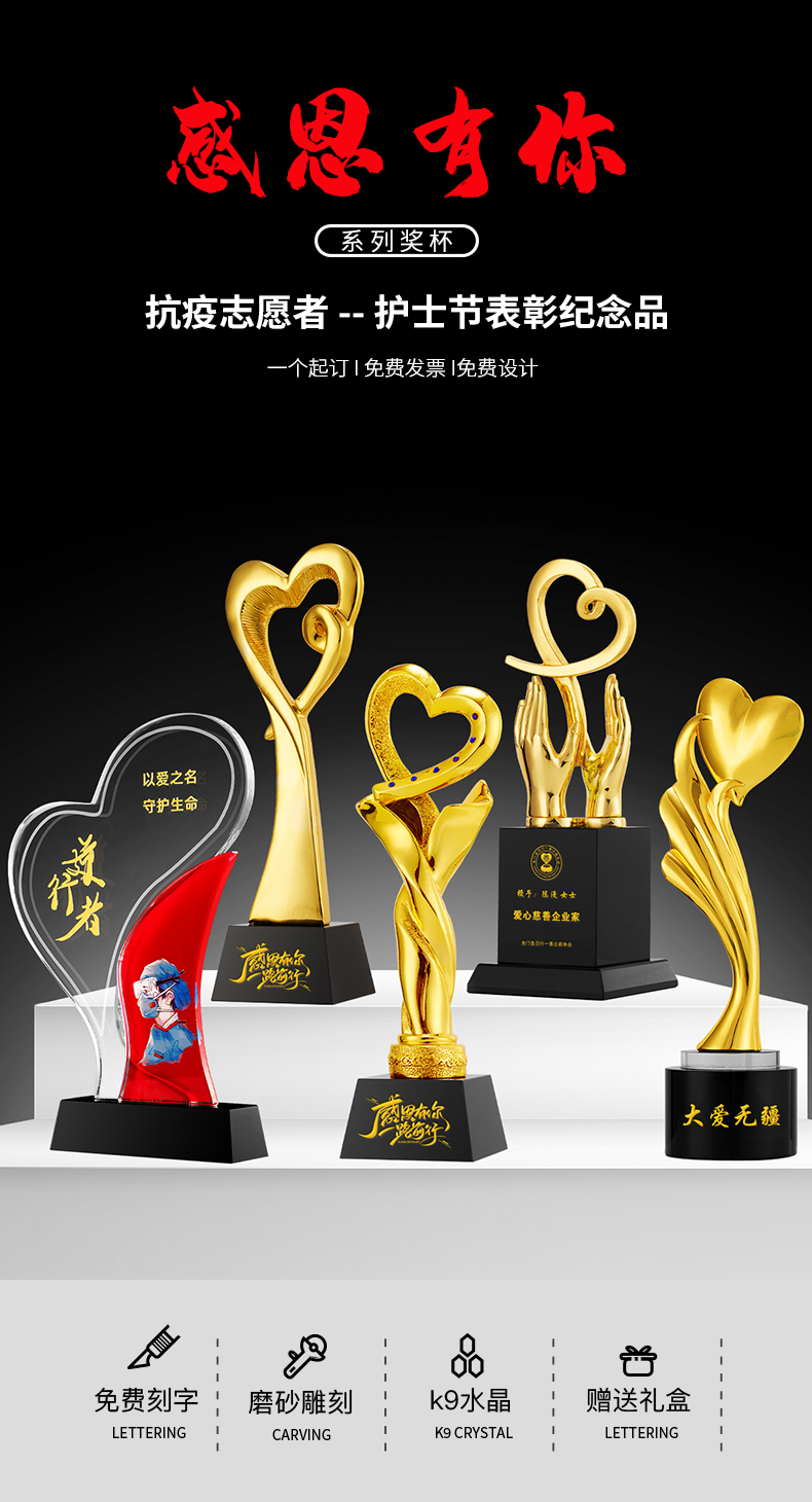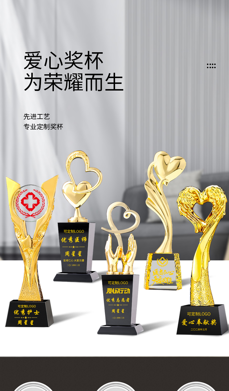433 / 【爱心主题】公益慈善爱心水晶奖杯定制好老公好老婆奖心形妈妈生日礼物