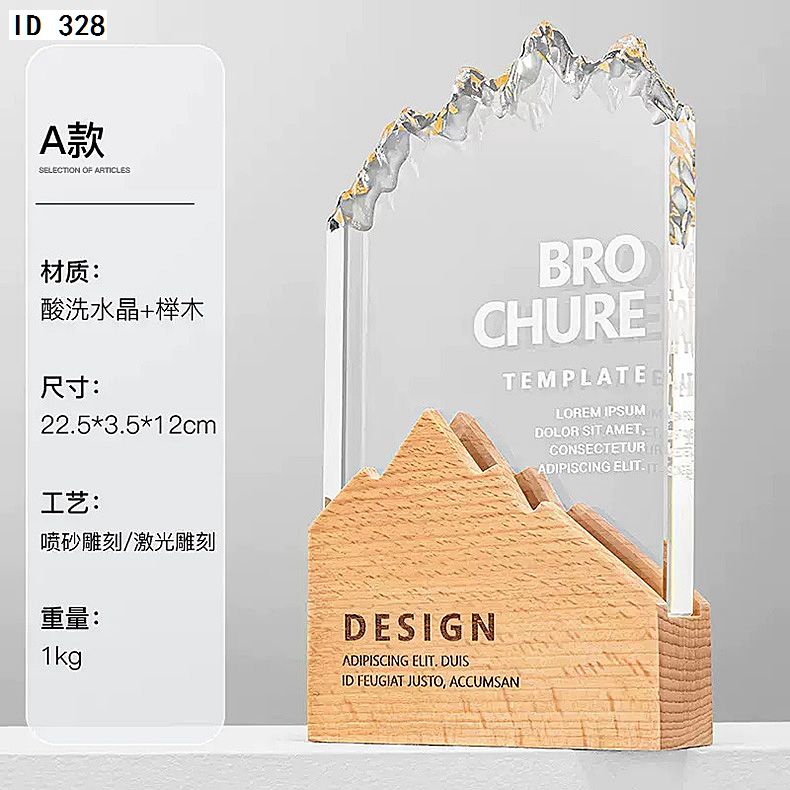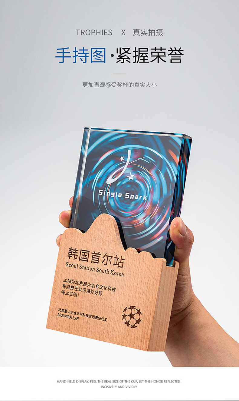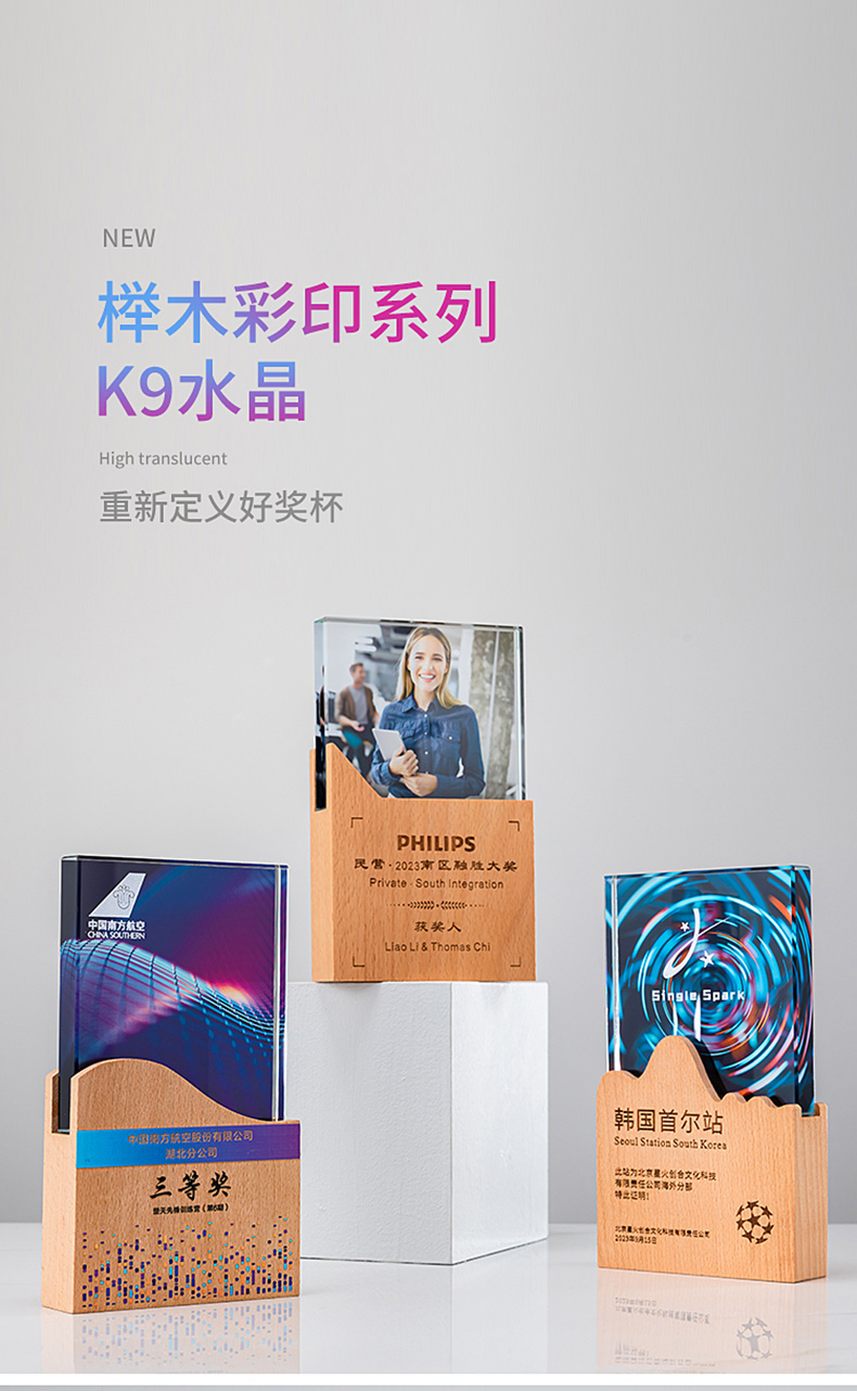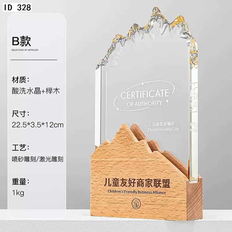 182 / 【实木水晶奖杯】定制定做创意高档新款比赛优秀员工年会颁奖奖牌订制