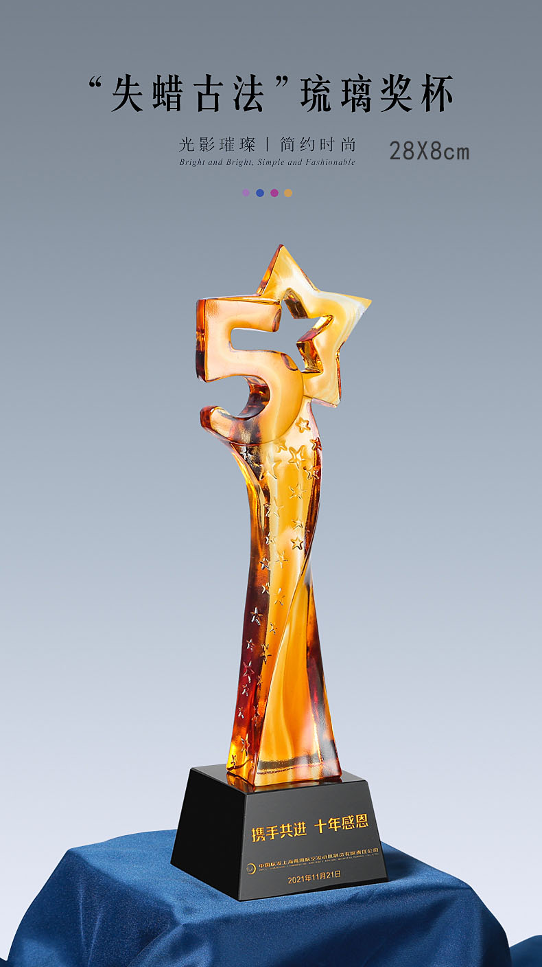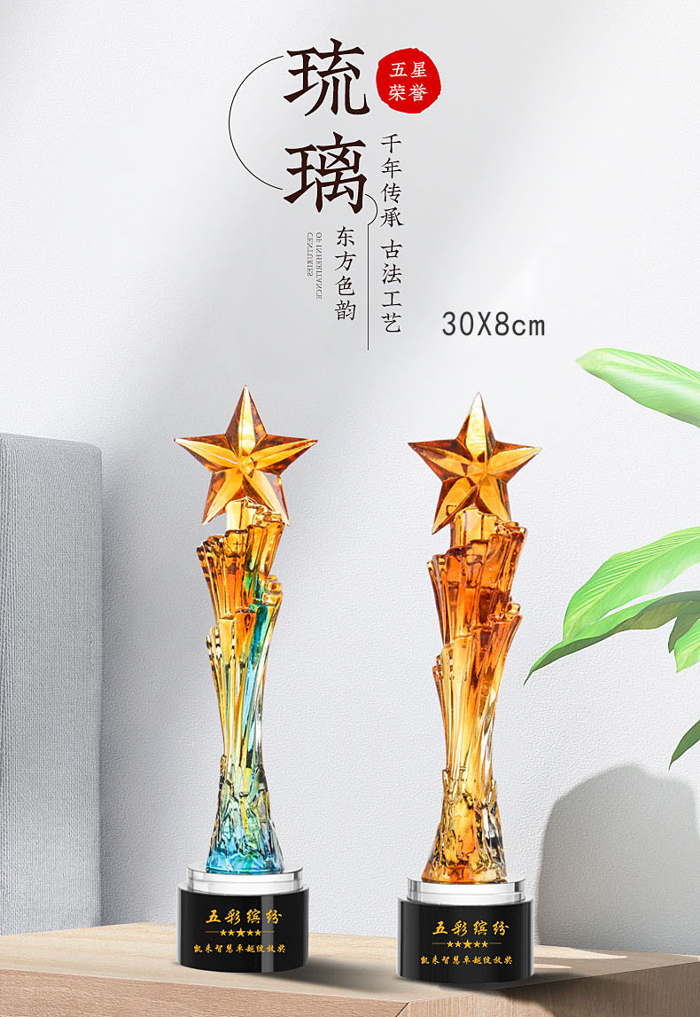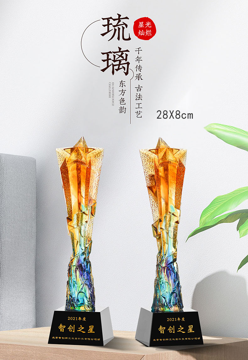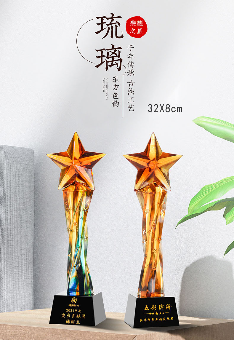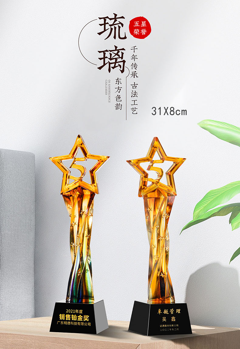 462 / 【古法琉璃奖杯】勿忘琉璃奖杯定制高档大气创意五角比赛优秀员工定做年会颁奖