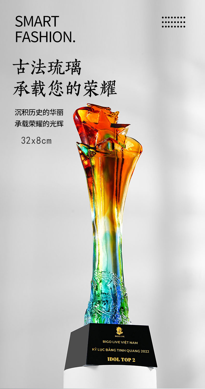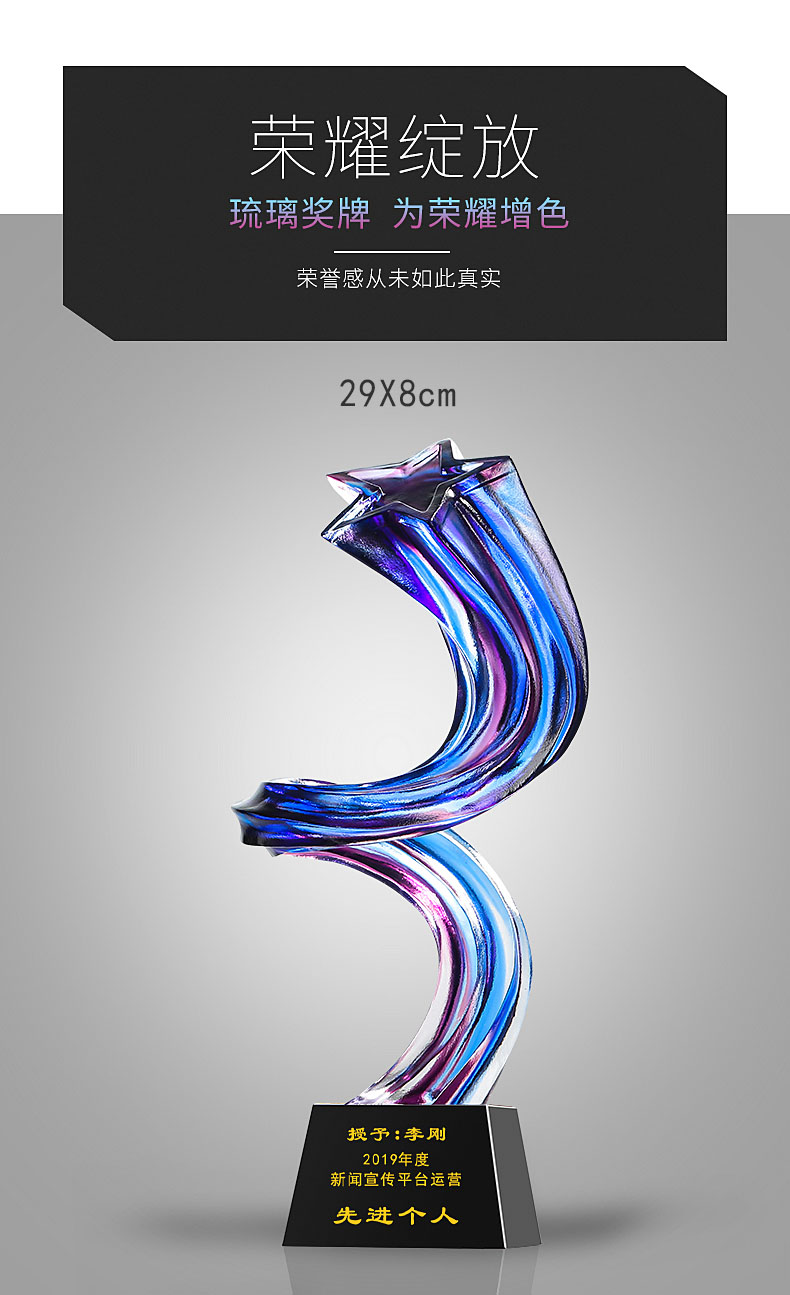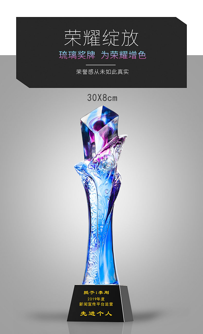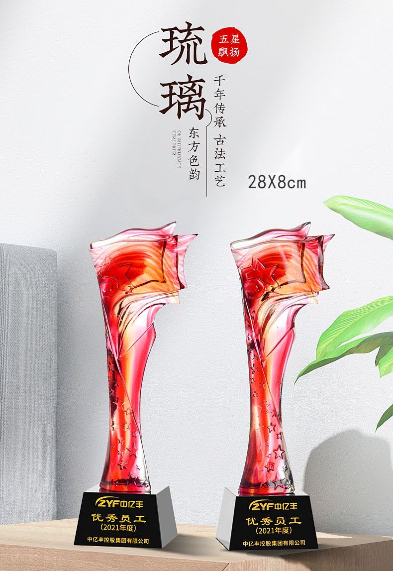 462 / 【古法琉璃奖杯】勿忘琉璃奖杯定制高档大气创意五角比赛优秀员工定做年会颁奖