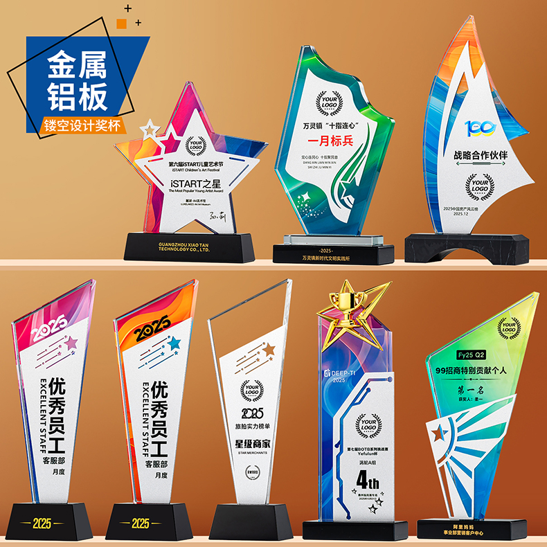 153 / 新款金属水晶奖杯定制定做年会颁奖优秀员工团队冠军比赛奖牌制作