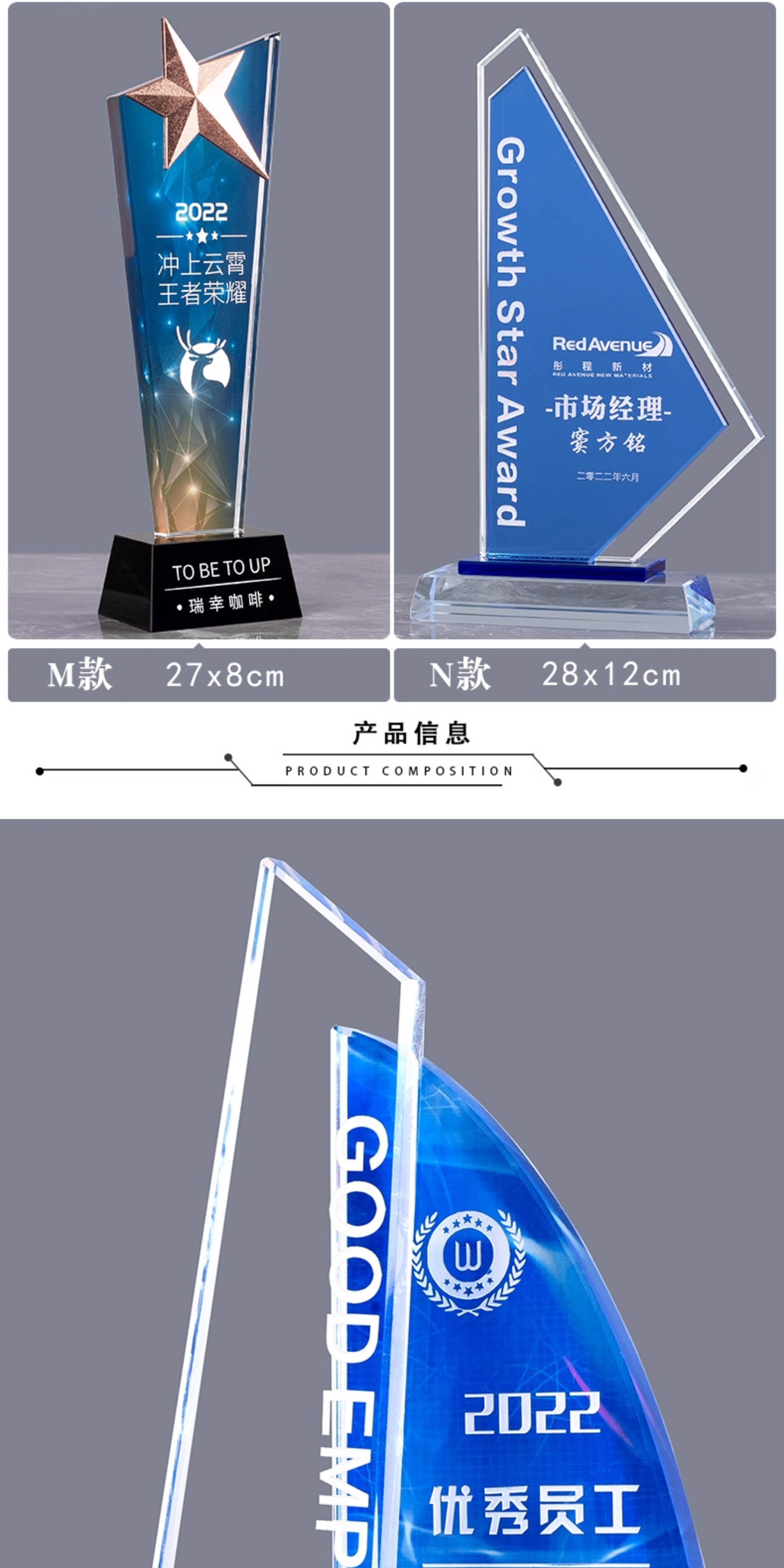 205 / 高档新款水晶奖杯定制定做年会颁奖优秀员工冠军比赛奖牌刻字纪念