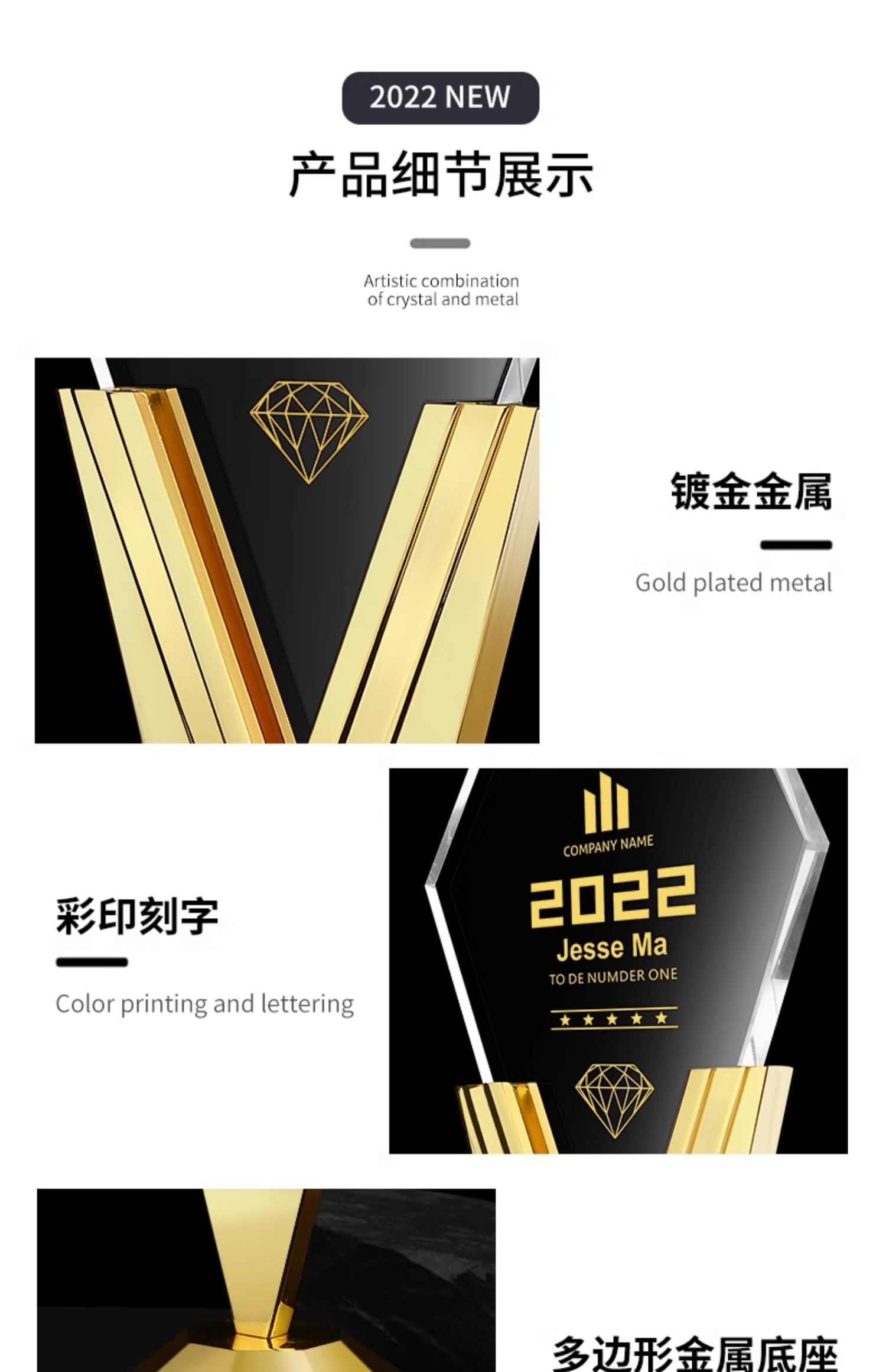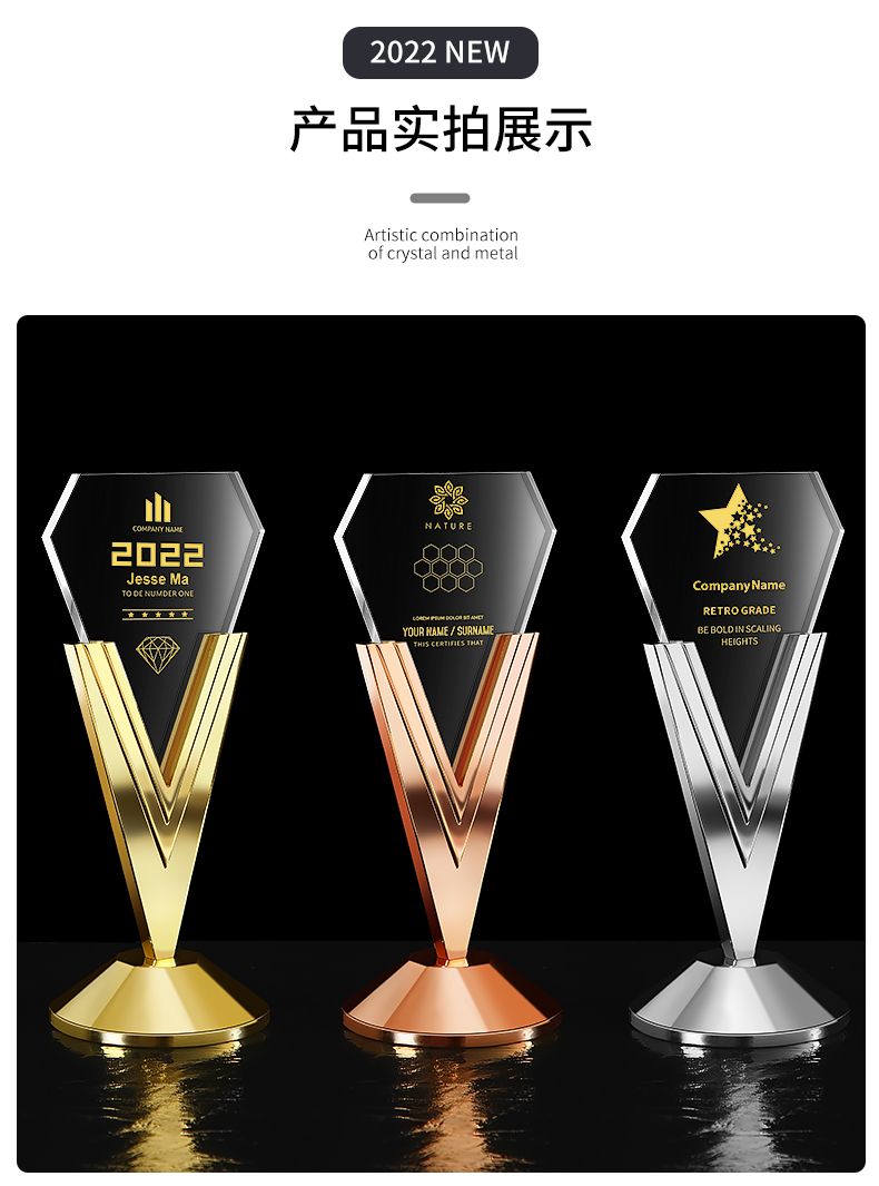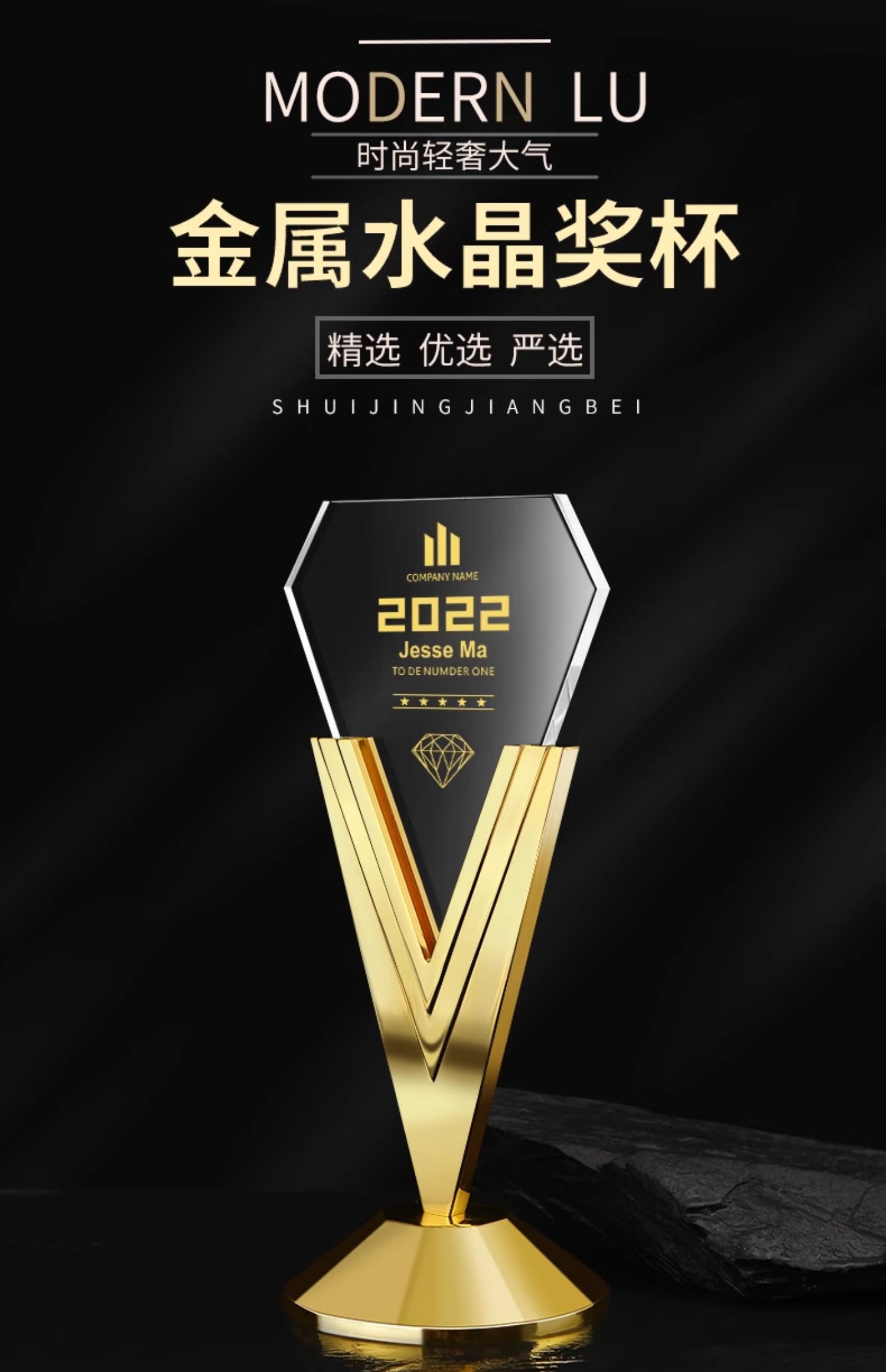 381 / 金属奖杯定制高端水晶创意比赛冠军奖牌年会年会员工团队颁奖定做
