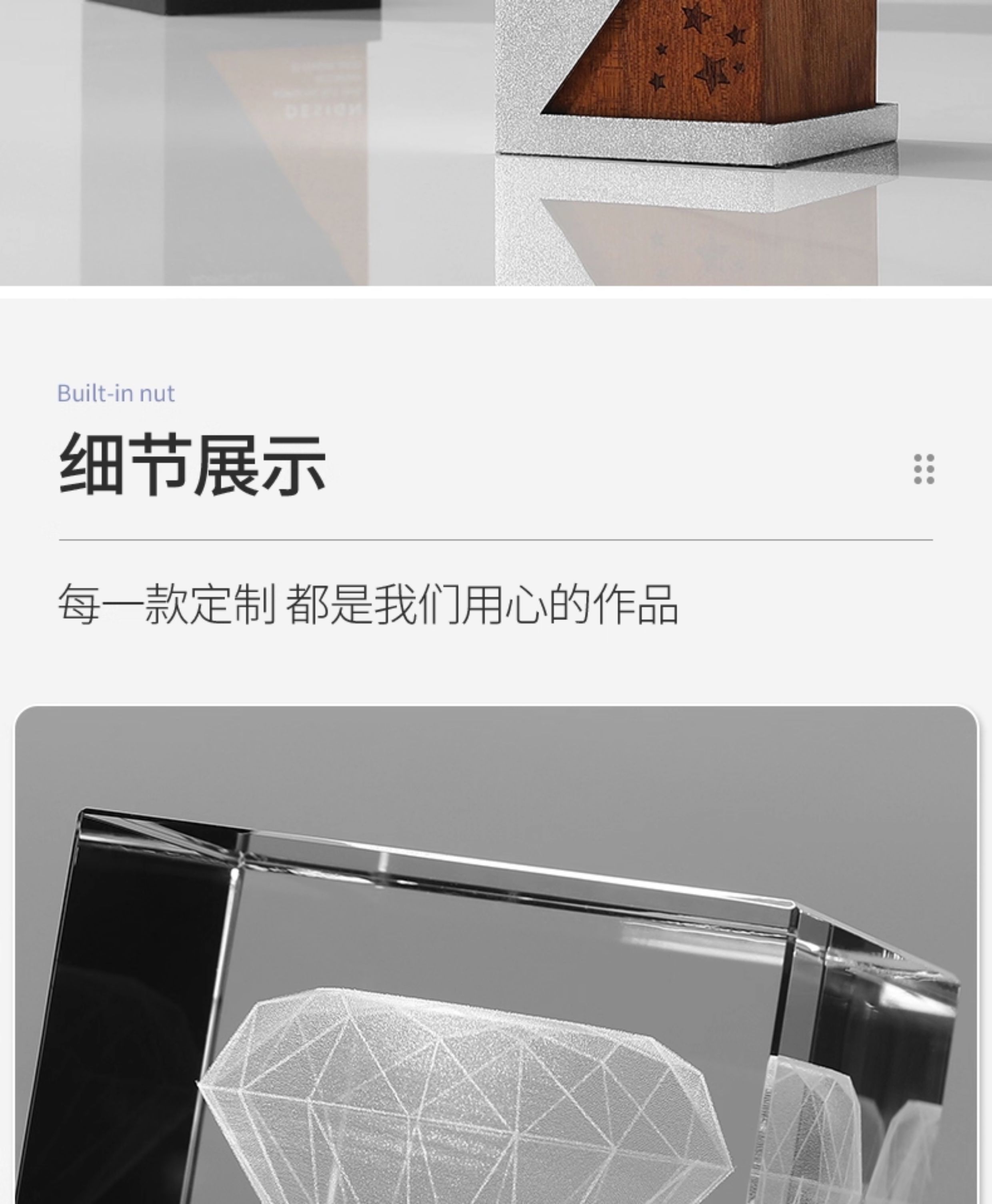 62 / 水晶奖杯定制创意高档金属3D内雕实木荣誉年会优秀员工奖杯订做