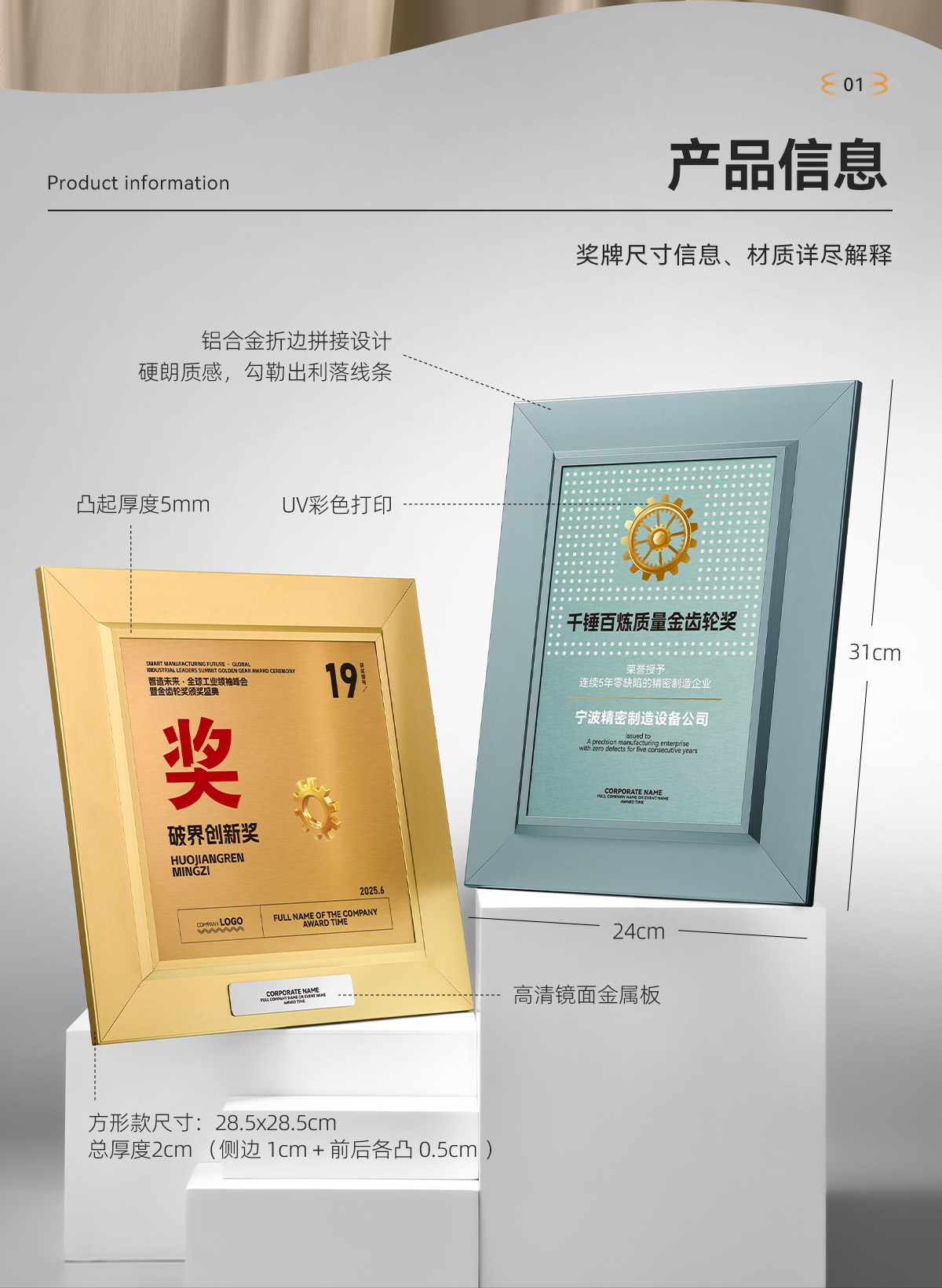529 / 创意新款金属奖牌定制授权牌纪念牌匾企业代理加盟荣誉证书颁奖牌