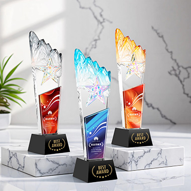 364 / 成都水晶奖杯奖牌定制斜面板五角星琉璃优秀员工年会颁…