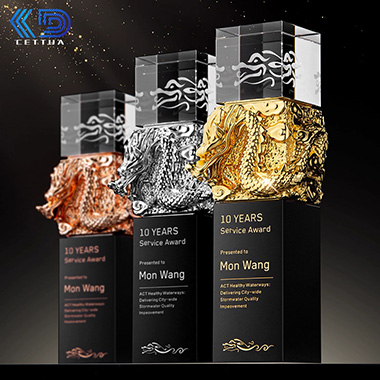 423 / 成都【生肖龙主题】龙年水晶奖杯定制金属龙型奖牌金银…