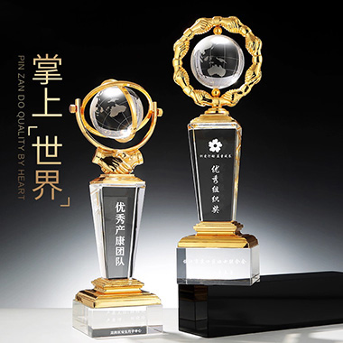 1004 / 成都【掌上世界】创意金属奖杯定制供应商水晶地球仪…