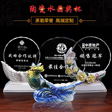 104 / 成都【琉璃奖杯】定制定做刻字创意高端高档奖牌优秀员…