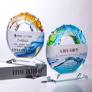 342 / 成都高档宝丽石奖杯定制刻字创意彩色树脂授权牌员工颁…