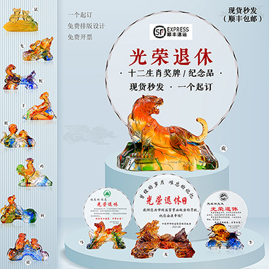 1047 / 成都新款虎年琉璃奖杯定制创意十二生肖水晶奖牌年会…